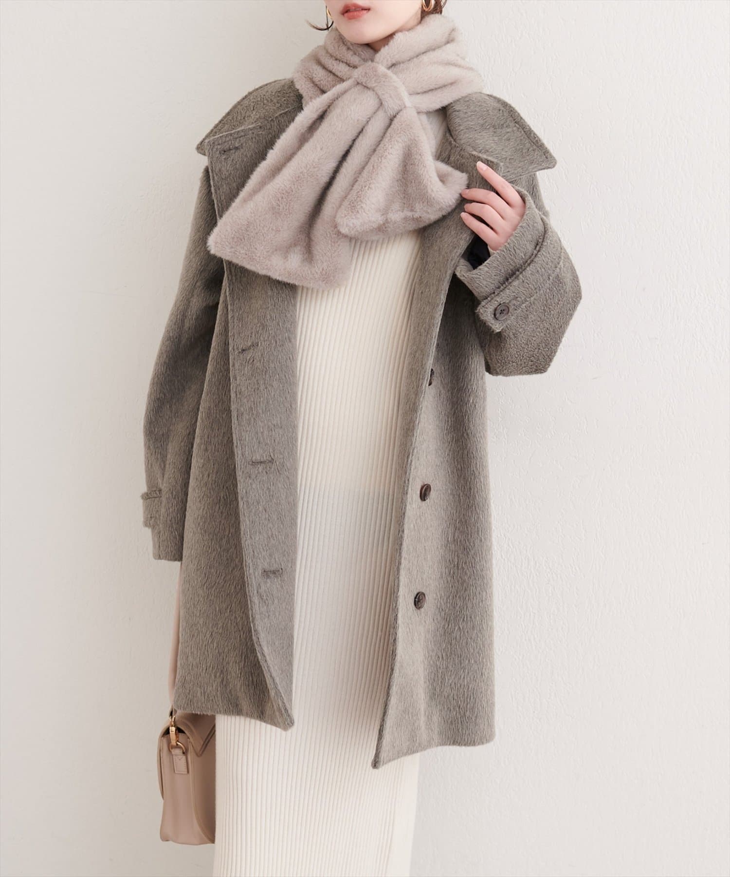 取り外し可能なティペットは首元にふんわりと巻けば、まるでカシミヤのような上品な雰囲気を演出できます。