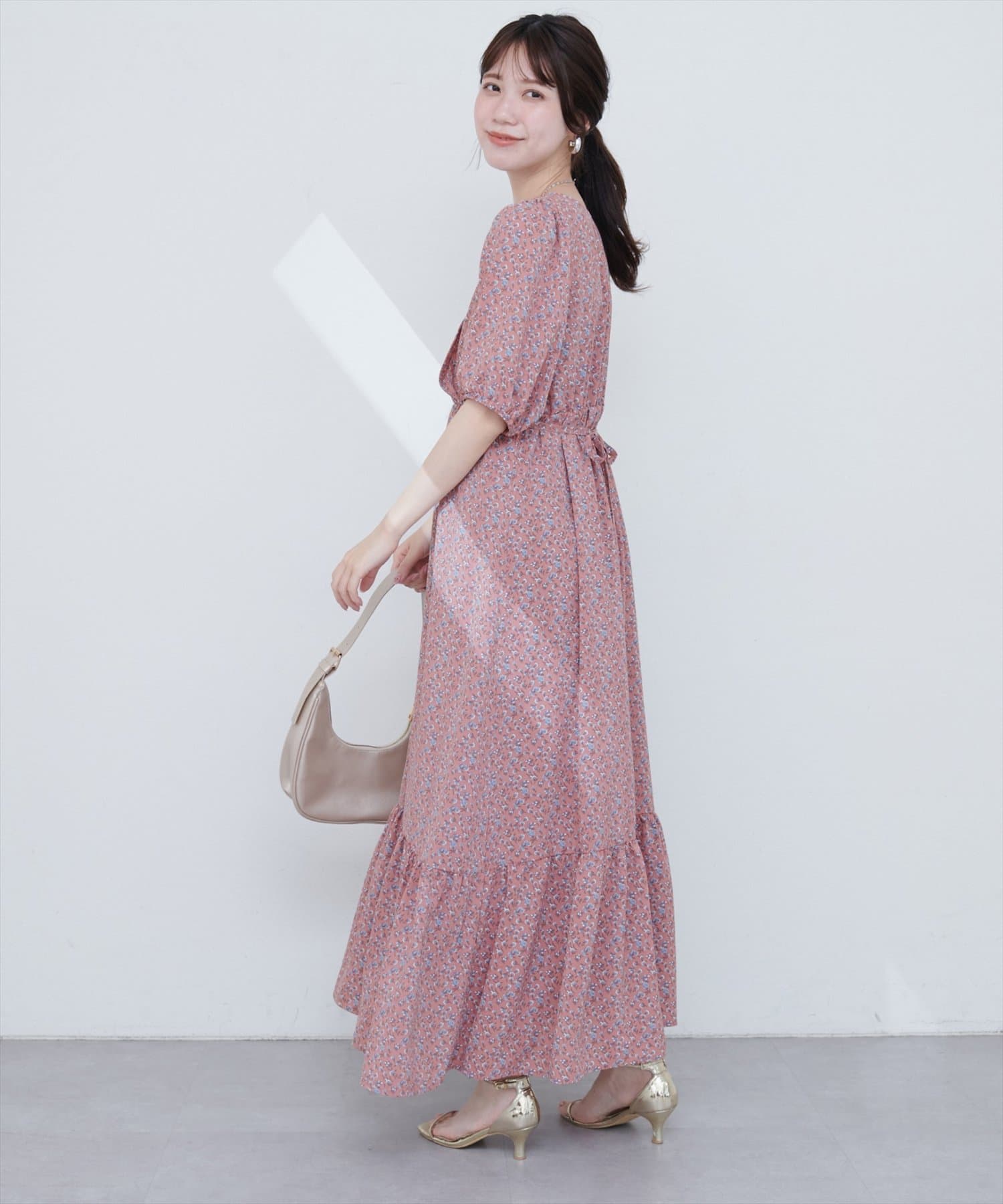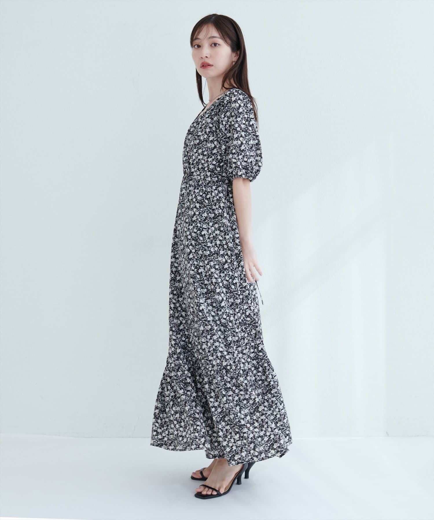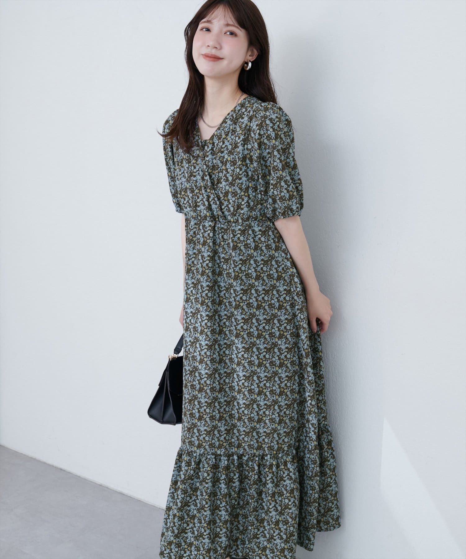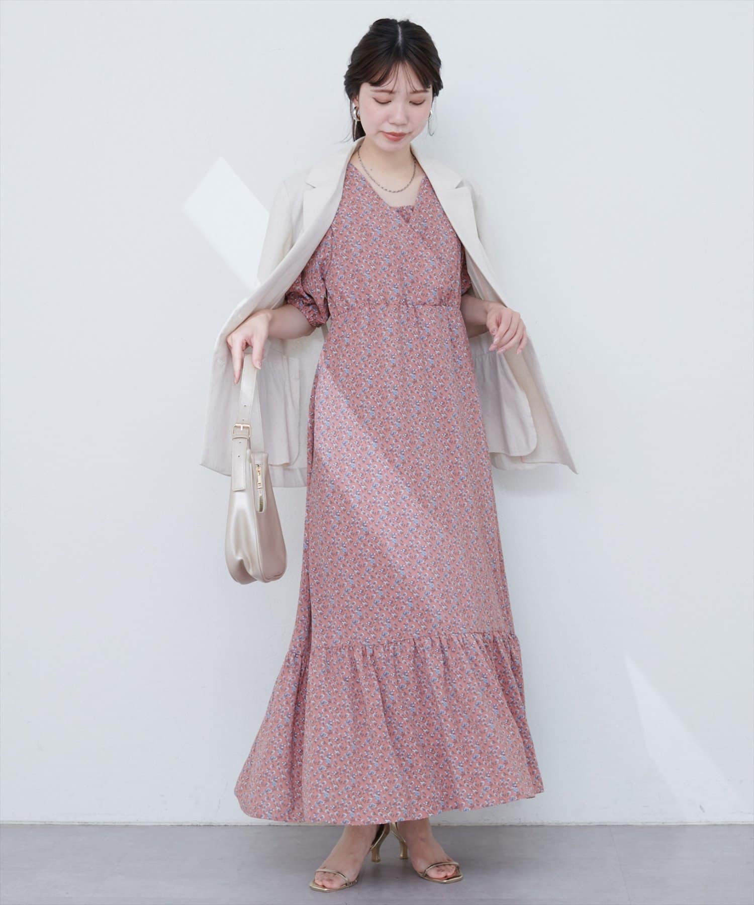 上品なフラワープリントで、大人の可愛らしさを引き出すカシュクールワンピース。