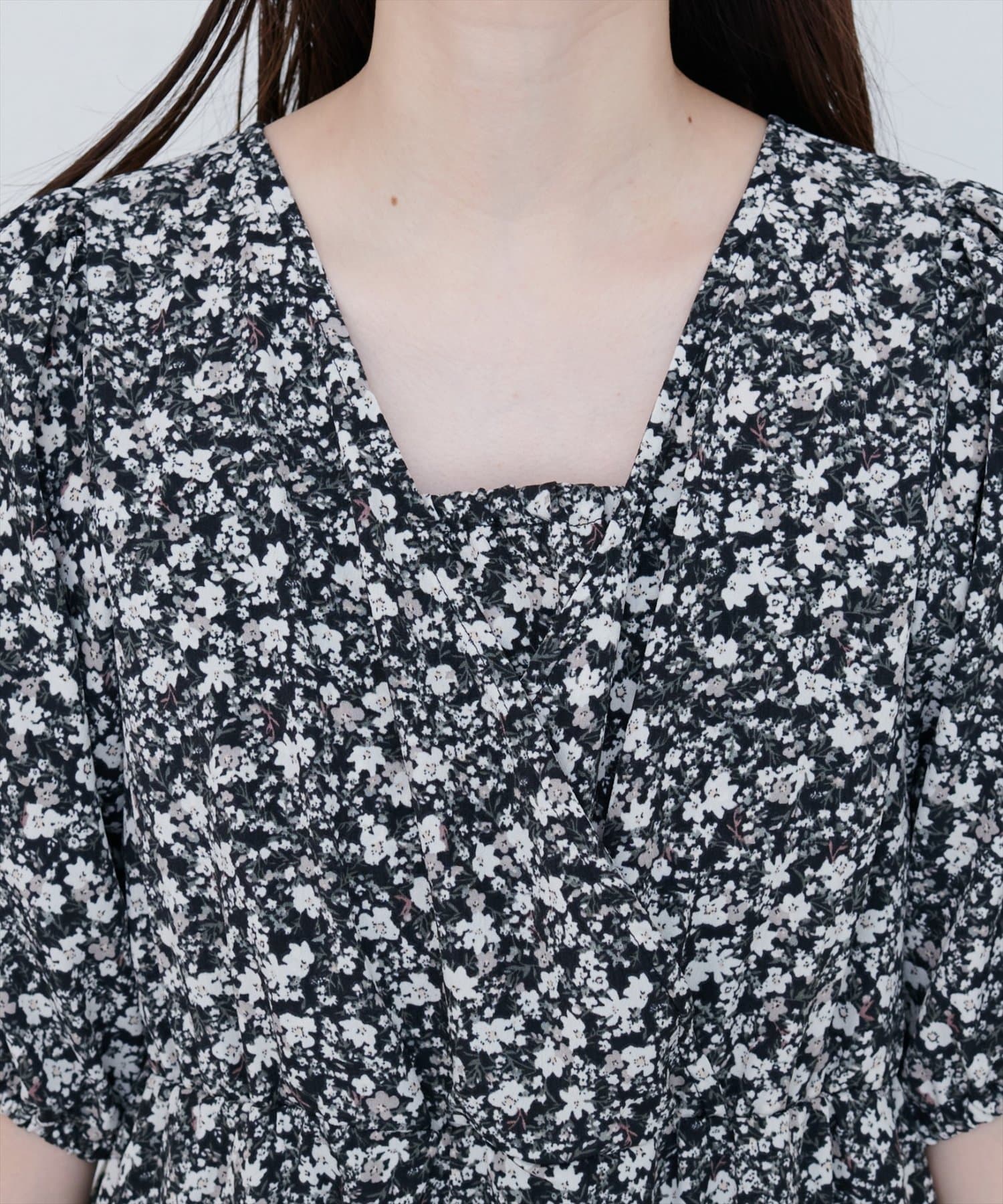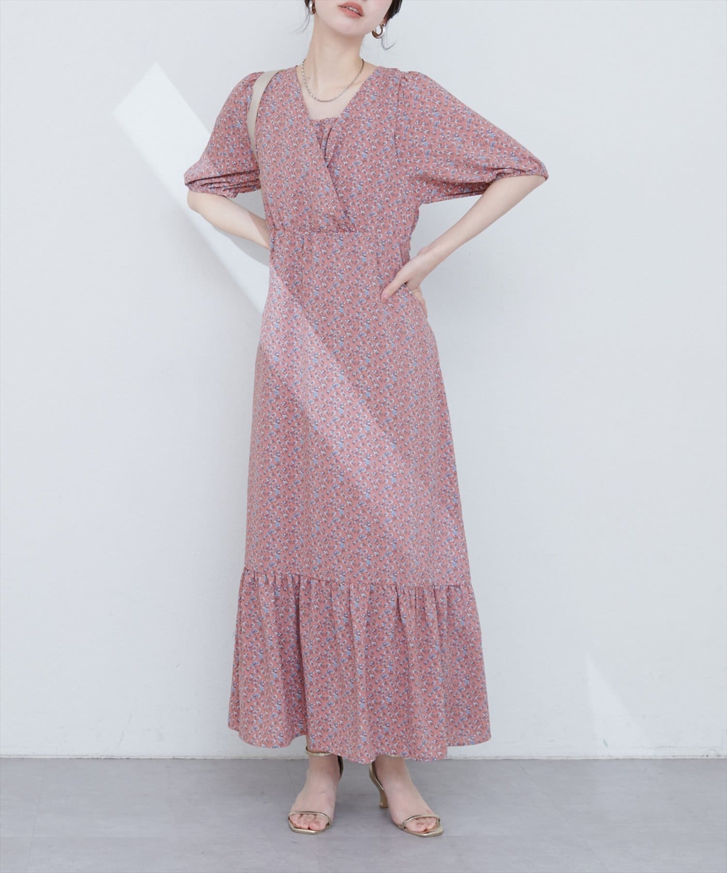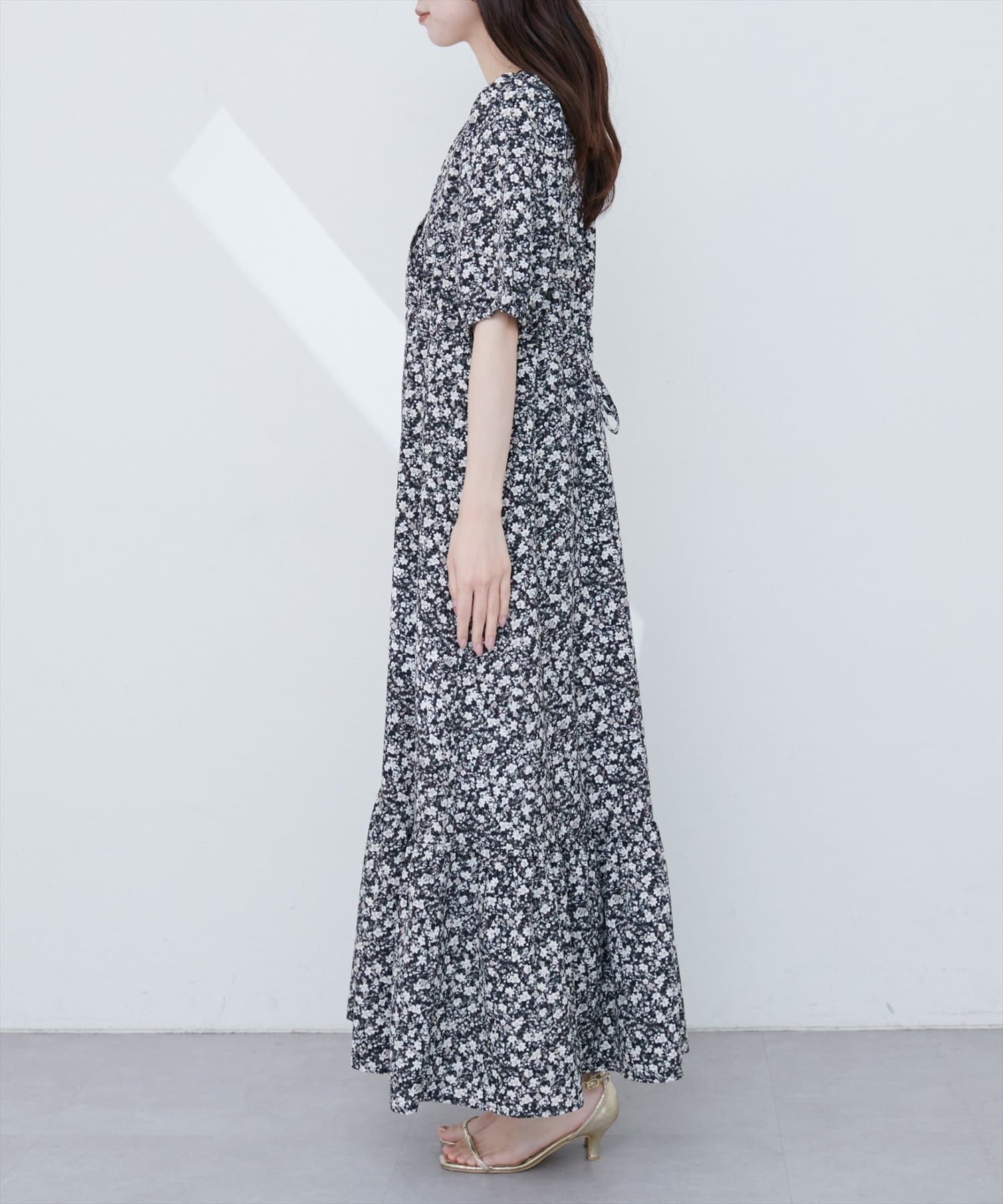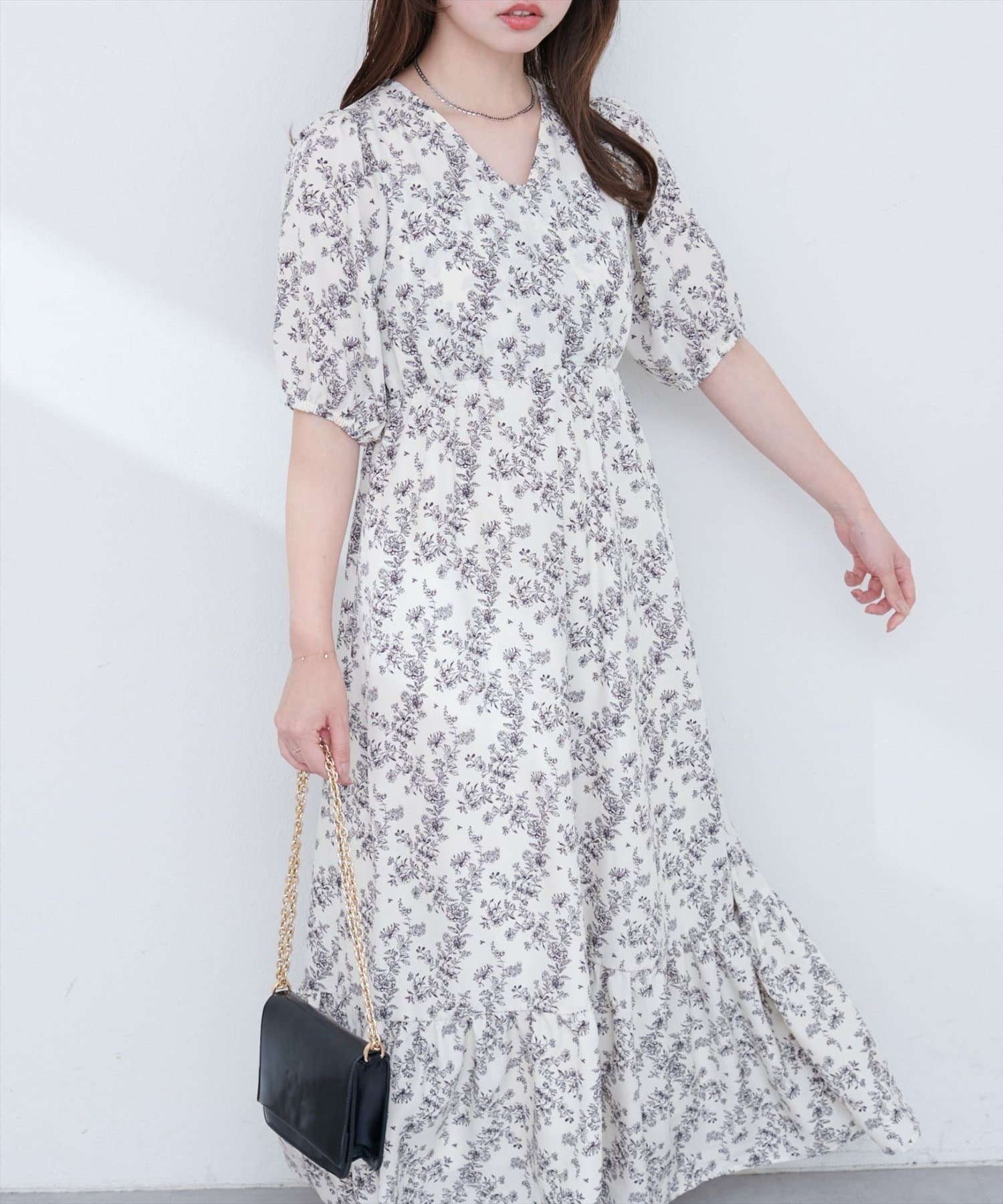 上品なフラワープリントで、大人の可愛らしさを引き出すカシュクールワンピース。