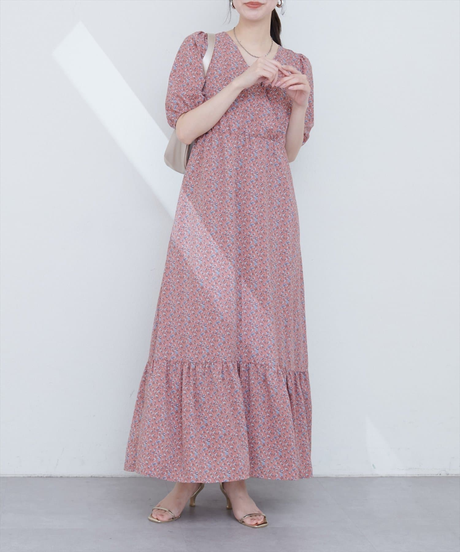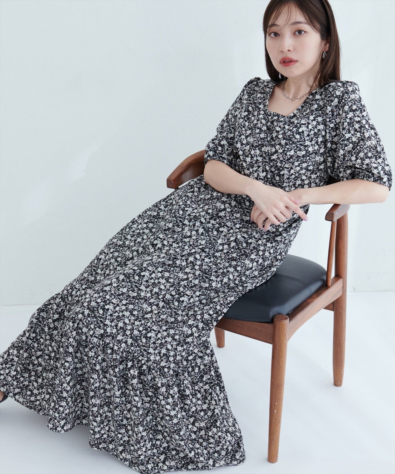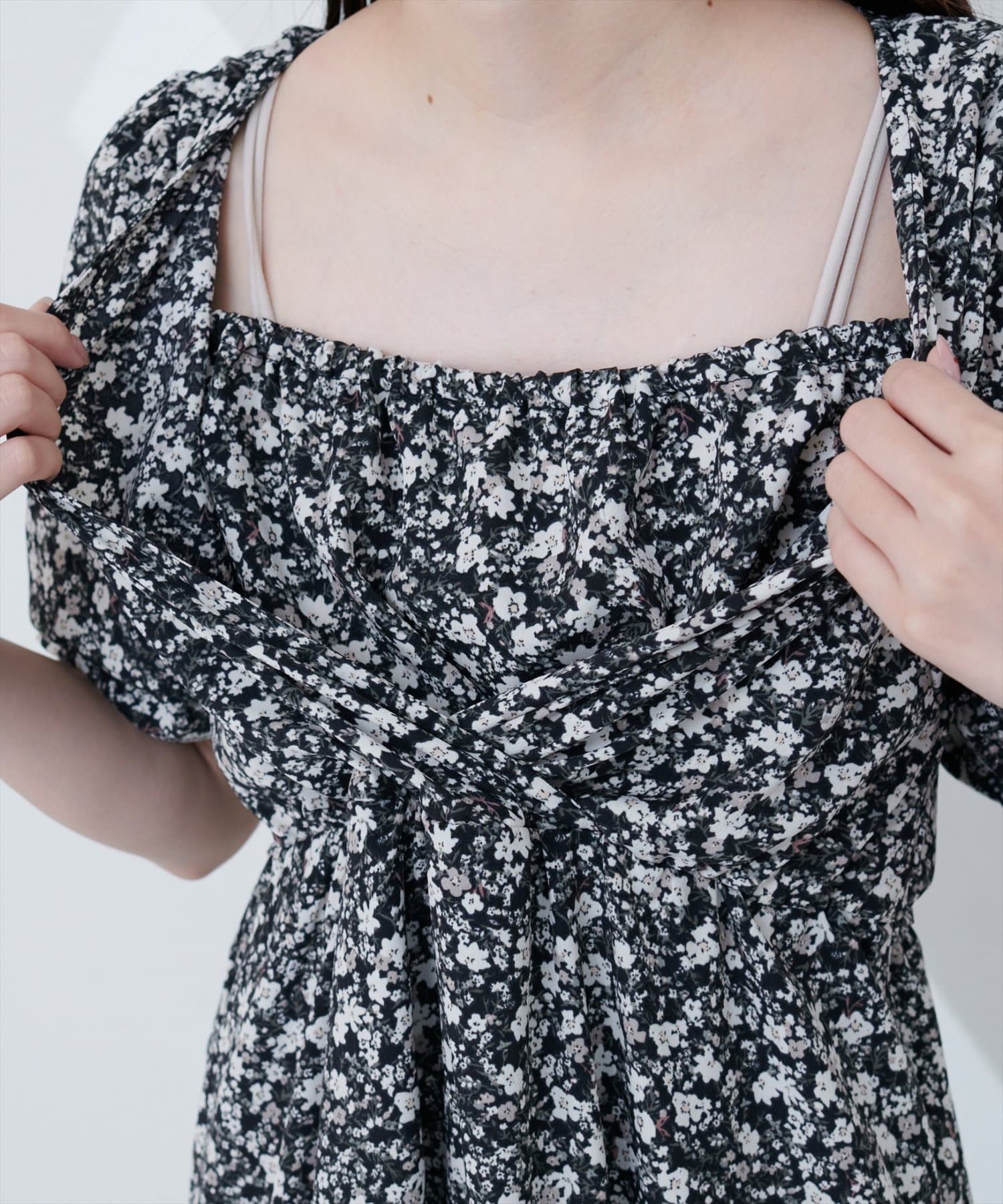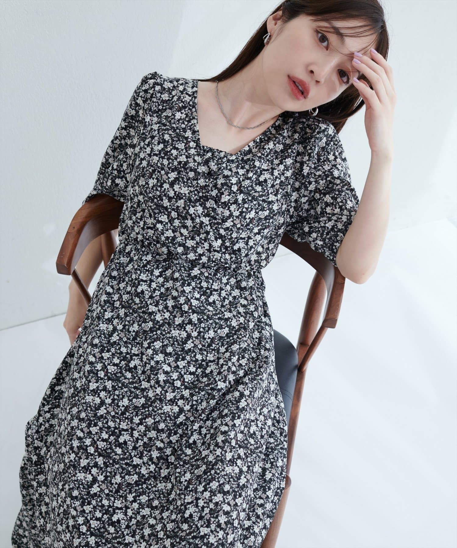 上品なフラワープリントで、大人の可愛らしさを引き出すカシュクールワンピース。