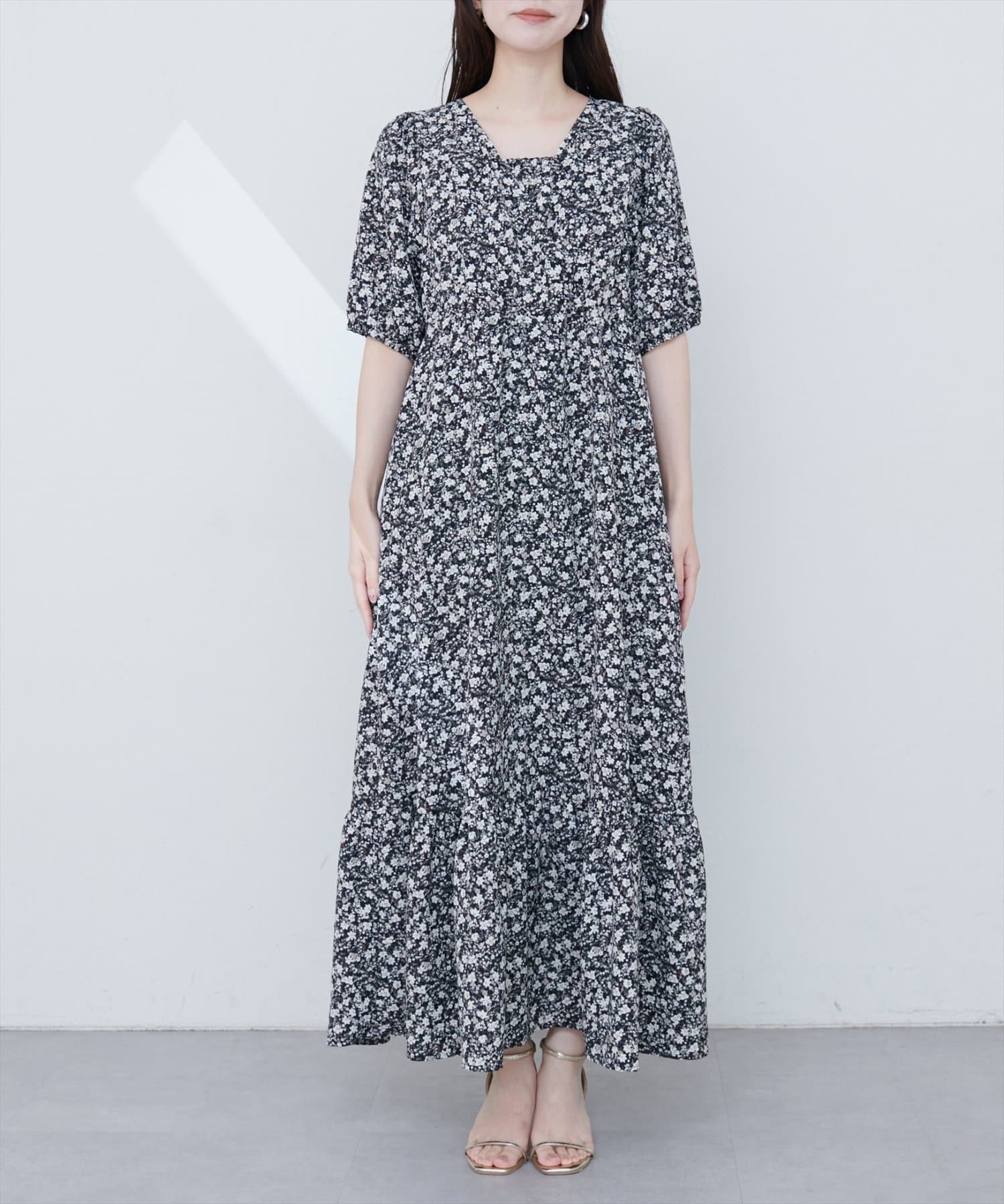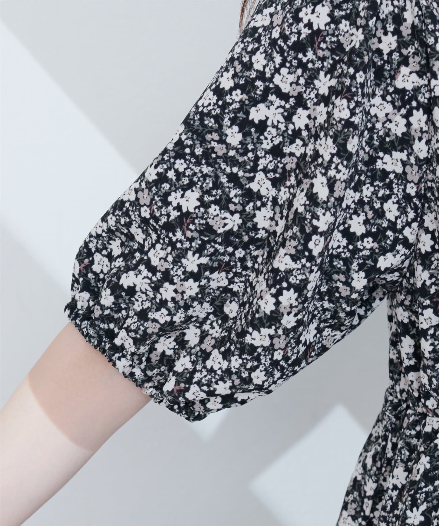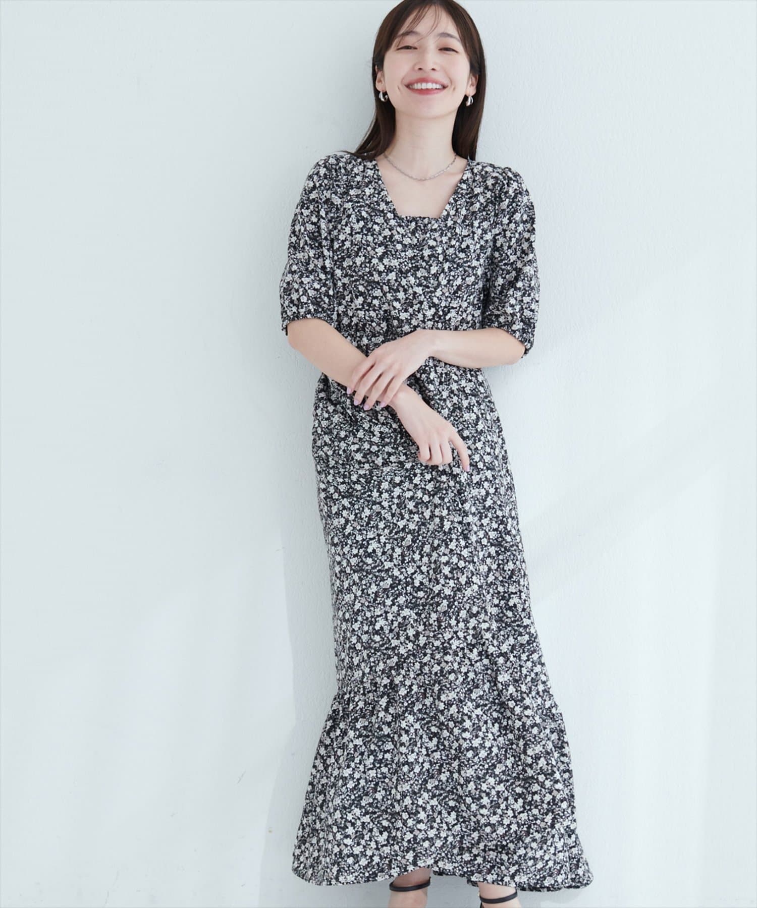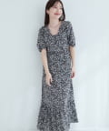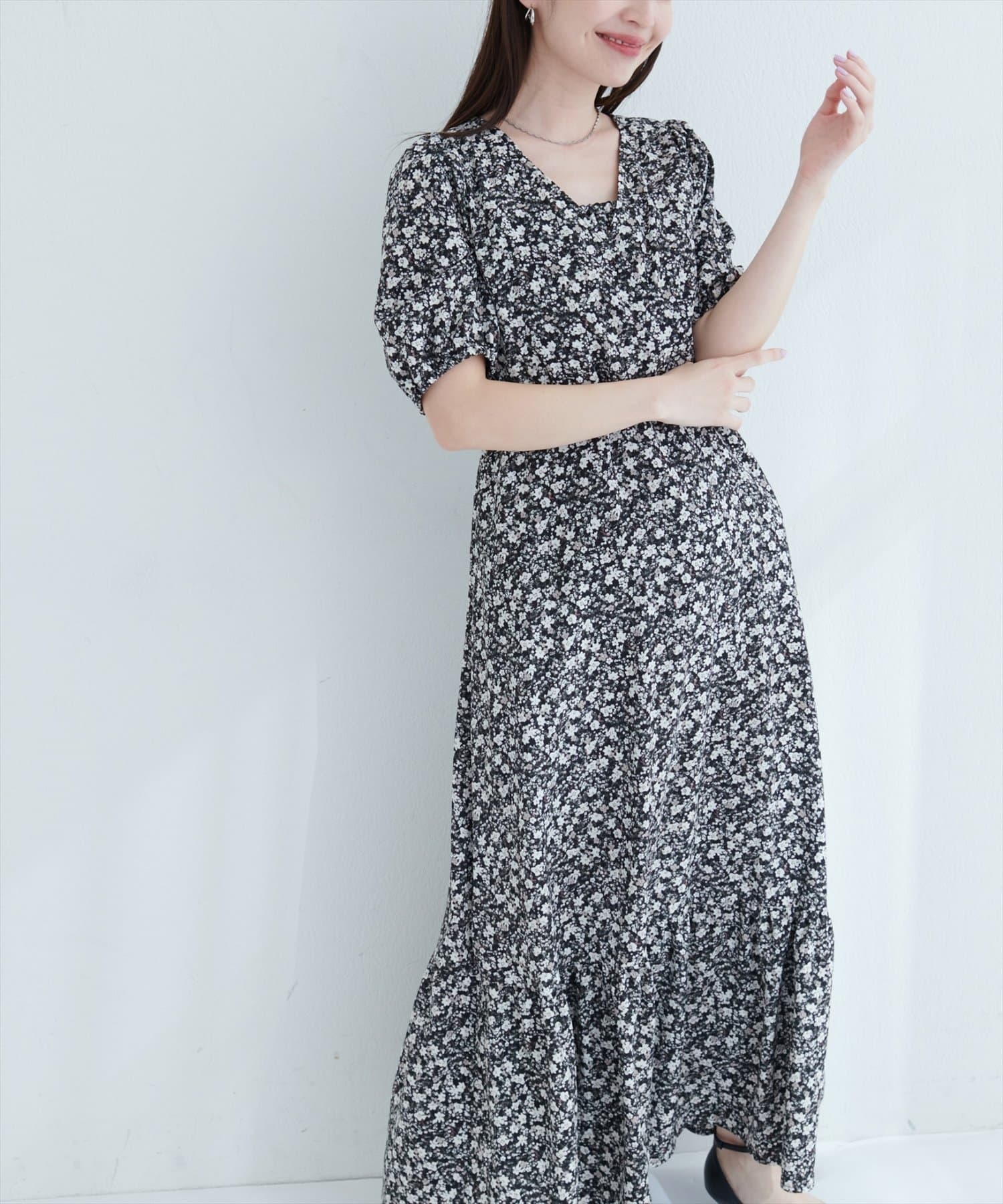 上品なフラワープリントで、大人の可愛らしさを引き出すカシュクールワンピース。