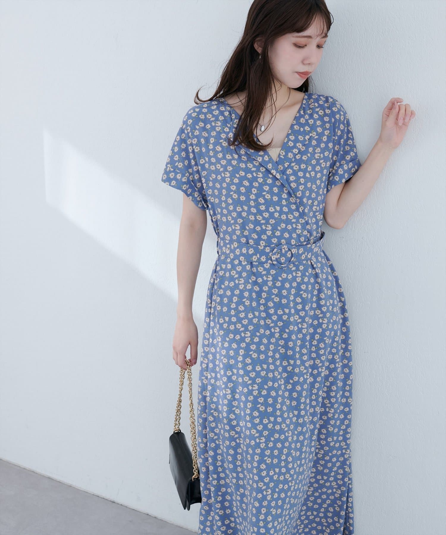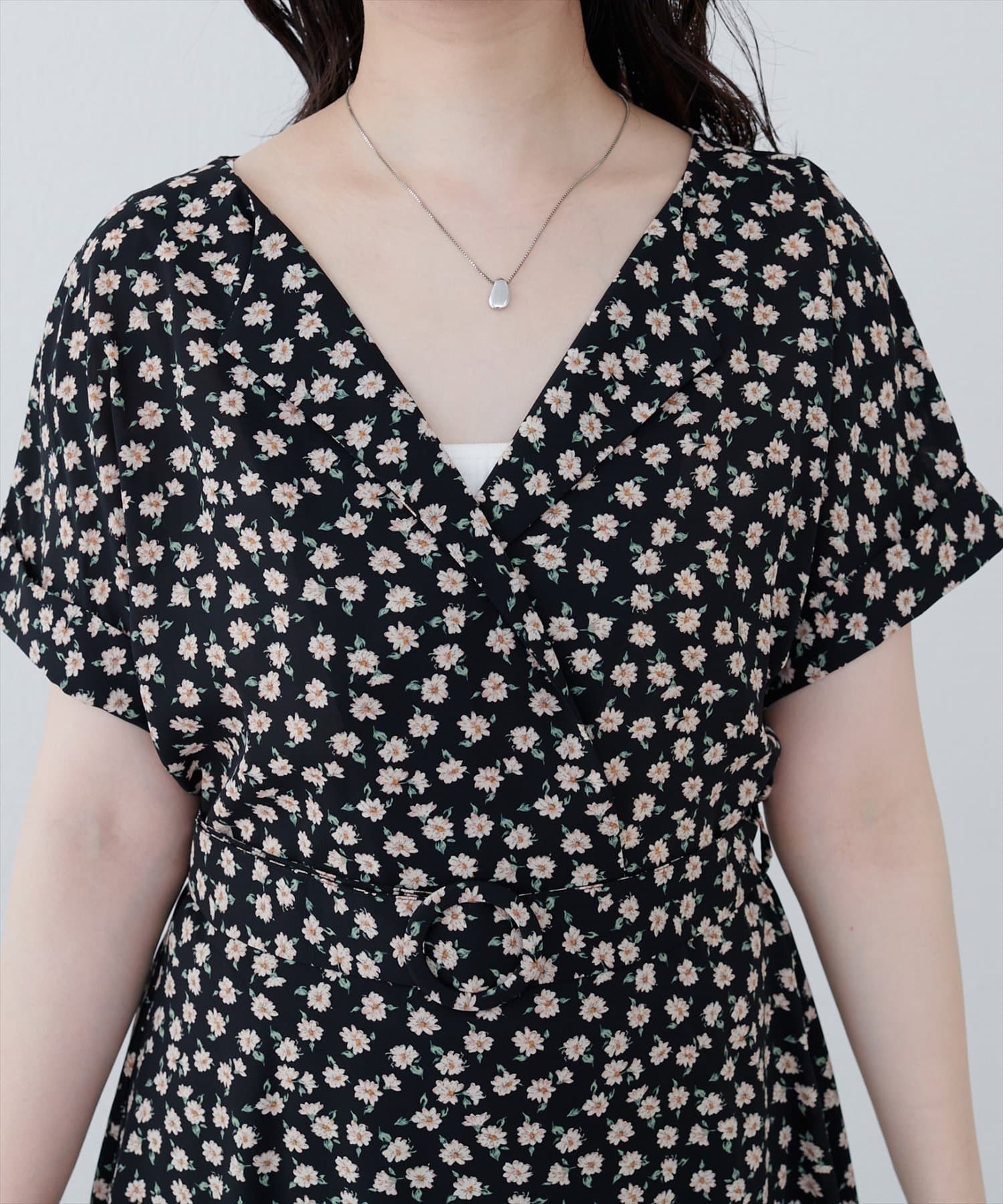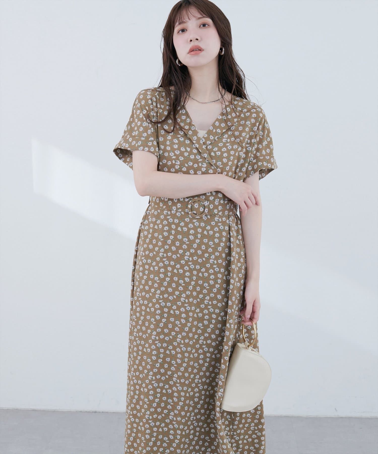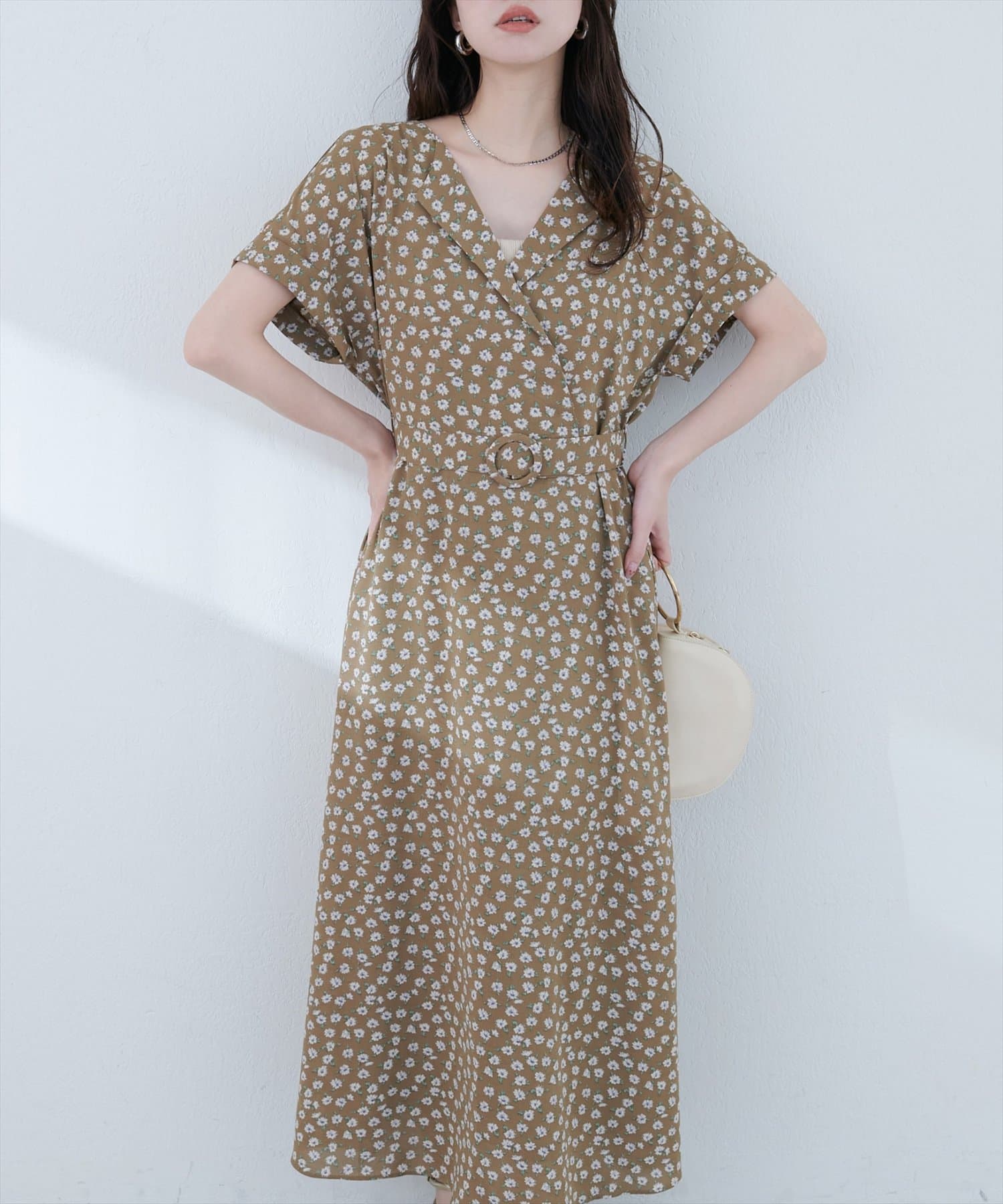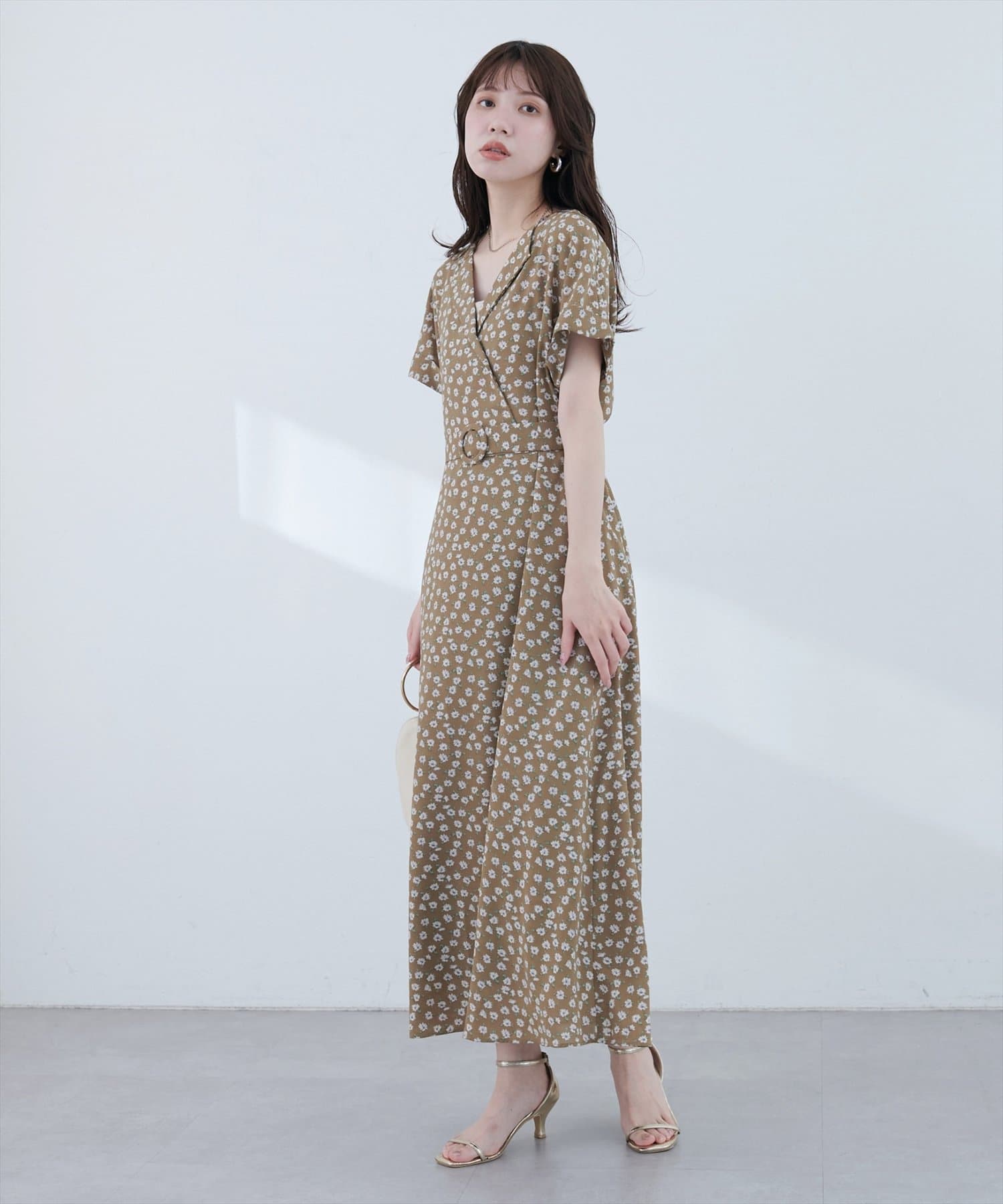 袖はフレンチスリーブで気になる二の腕をカバーし、付属のベルトでウエストマークすれば、スタイルアップ効果も抜群。