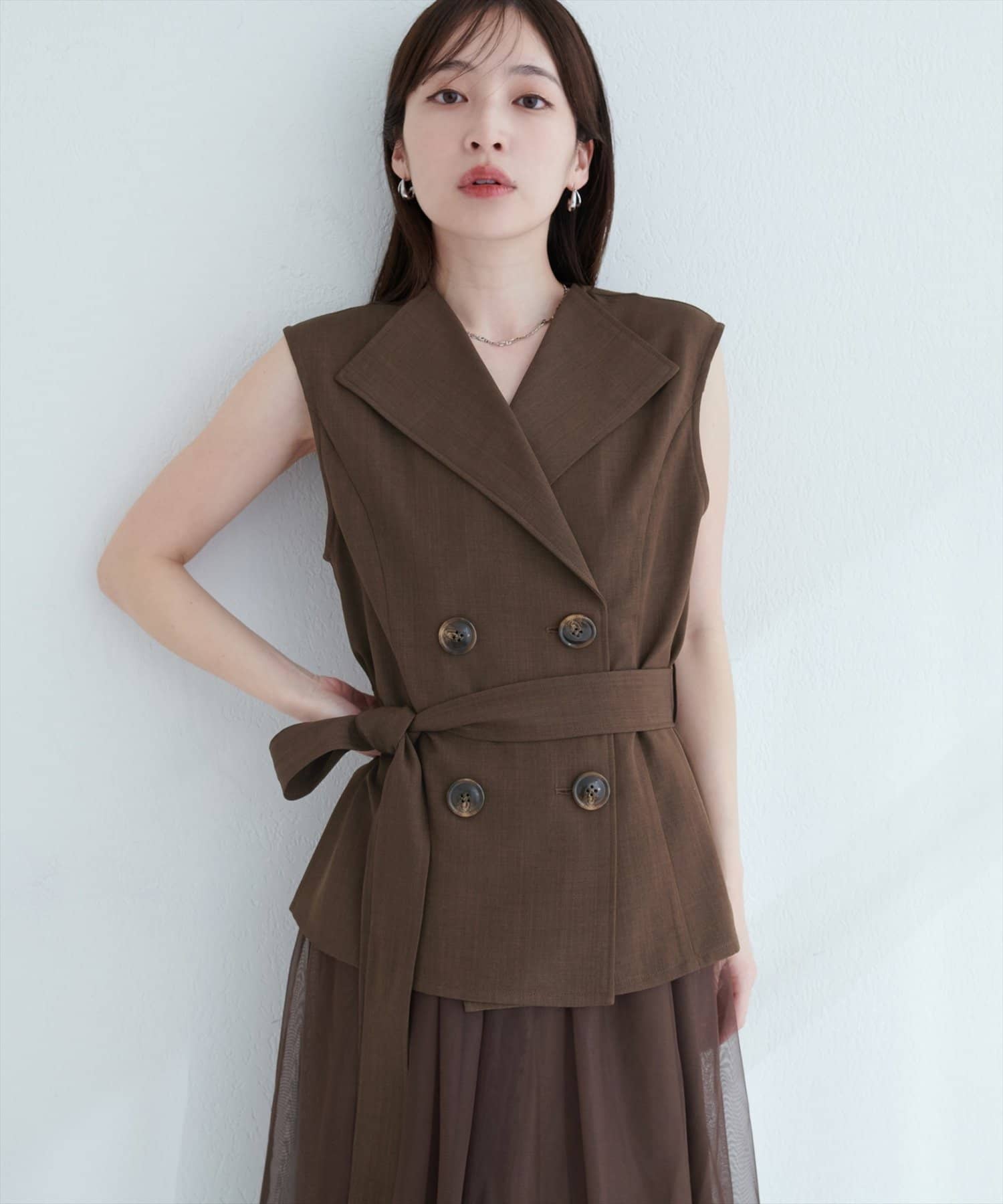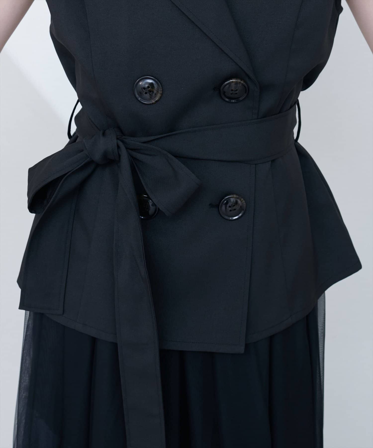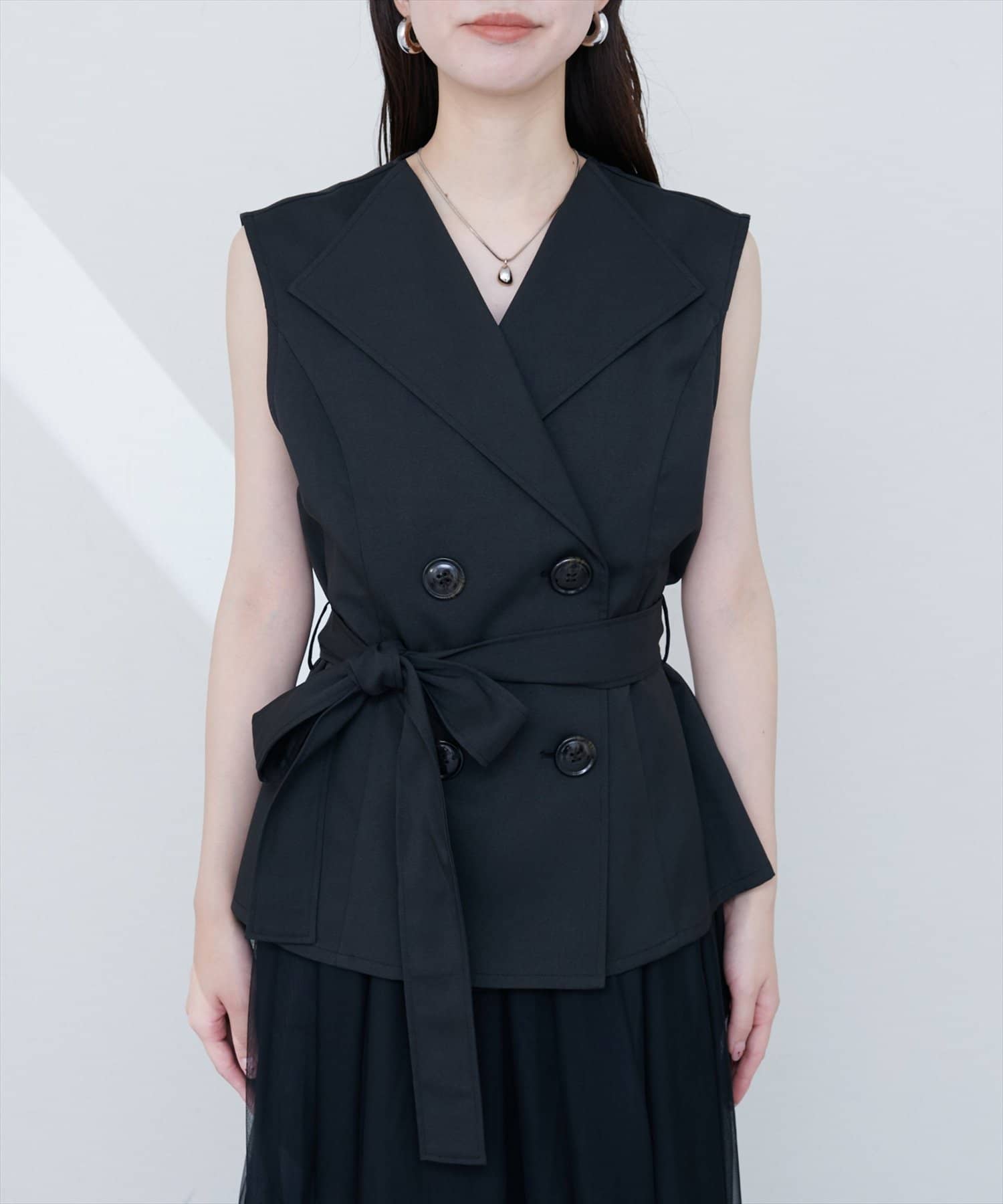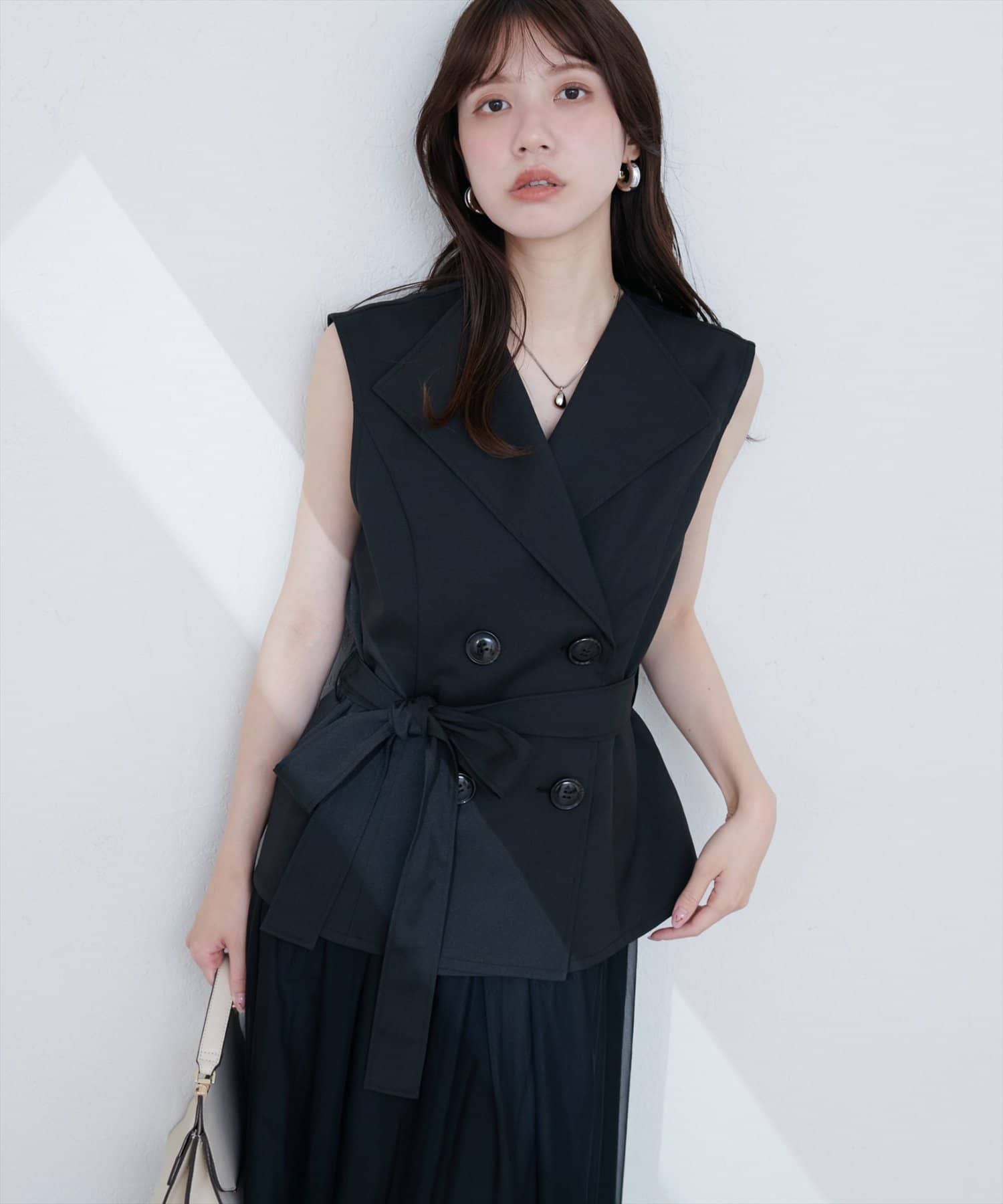 ベストはダブルボタンとウエストリボンがアクセントに。