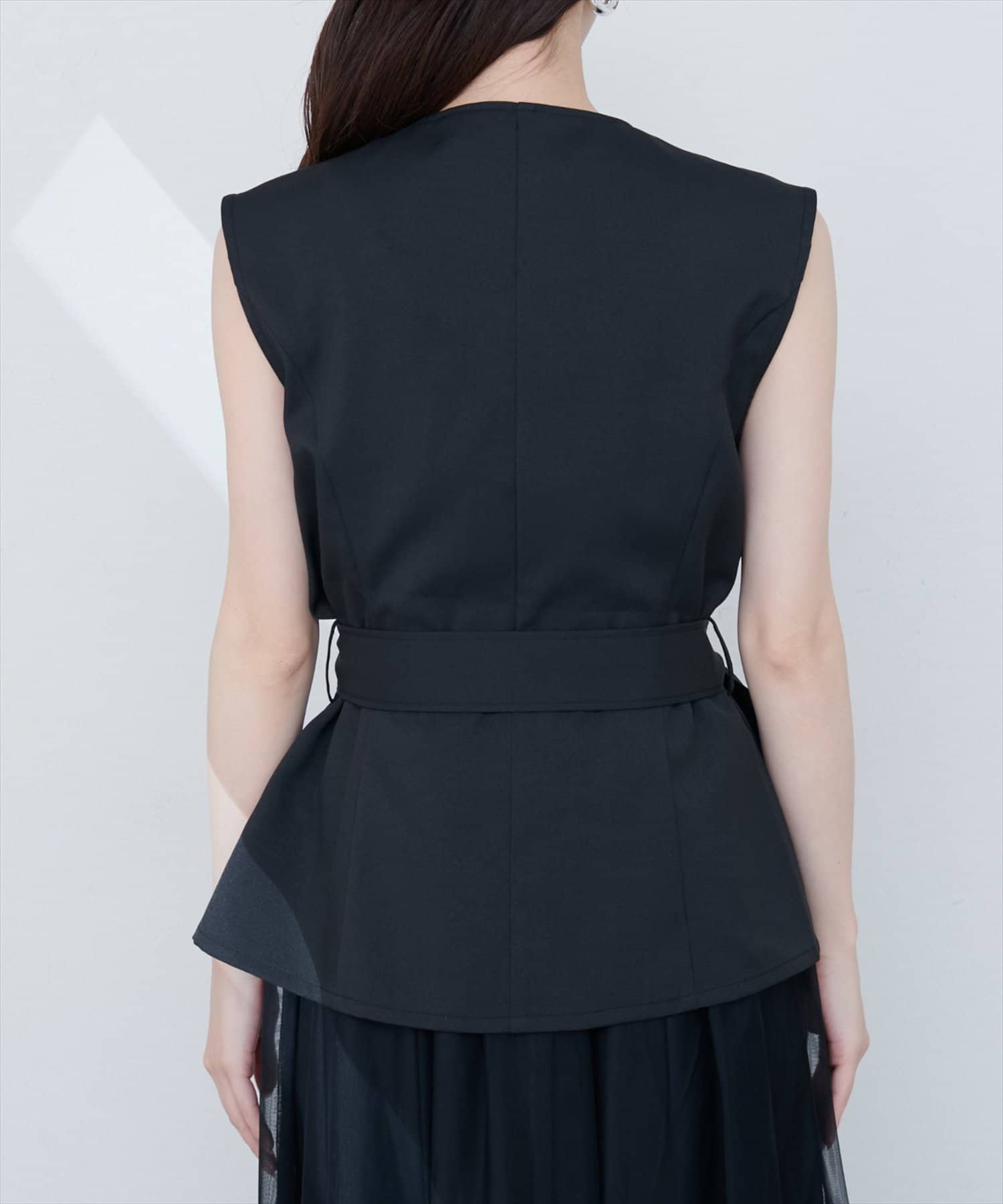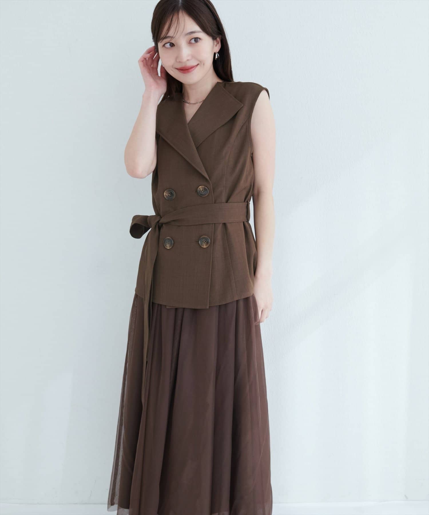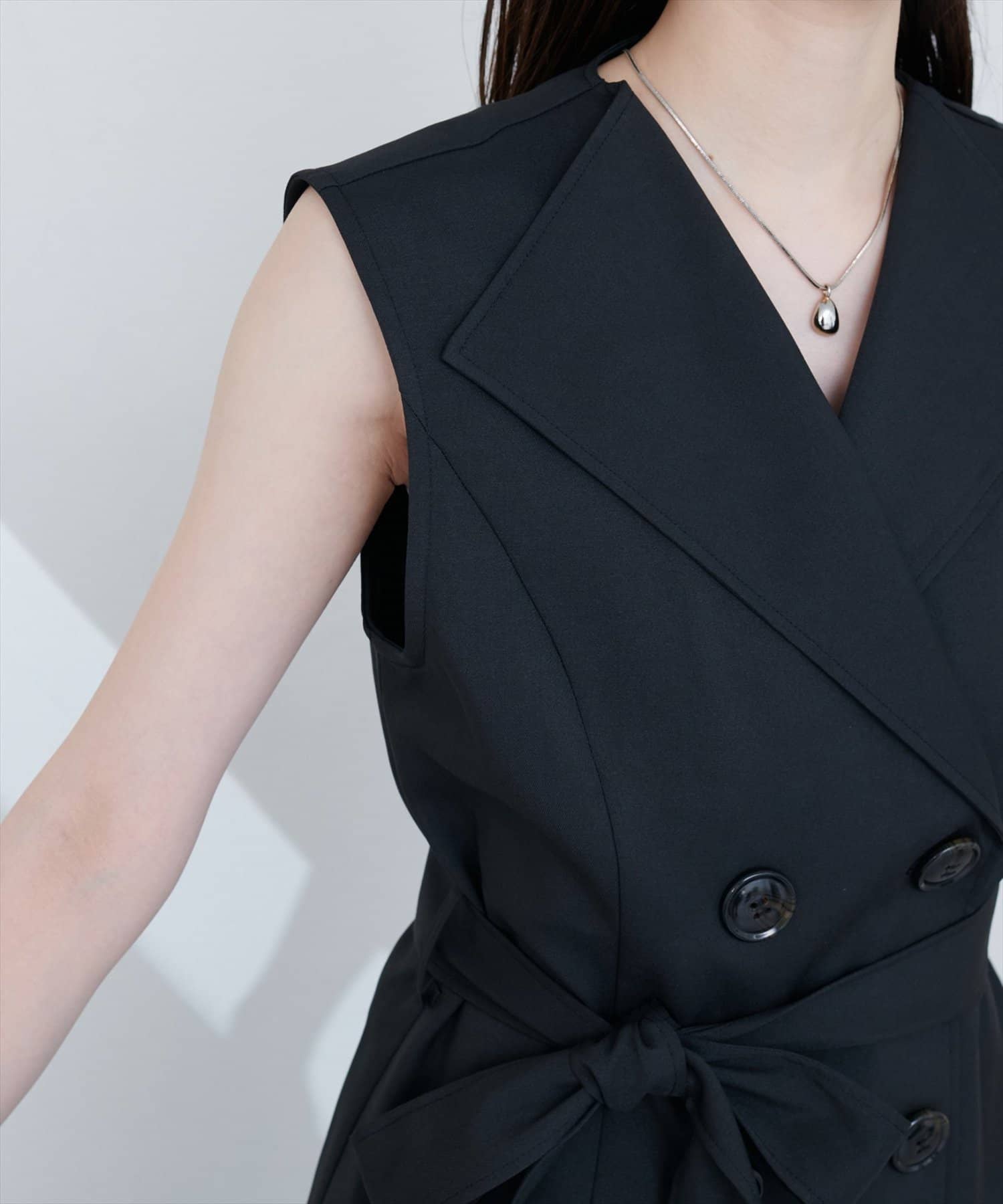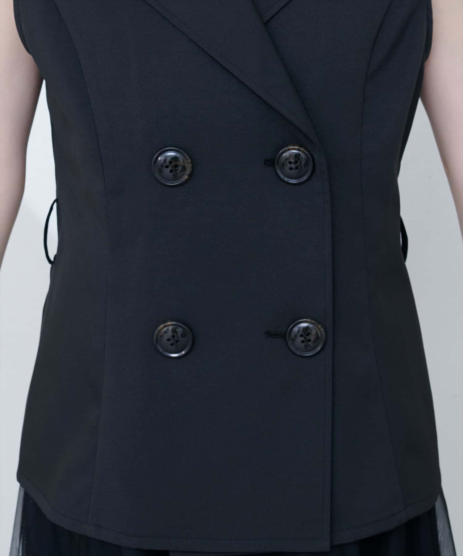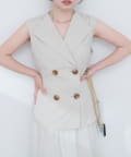ベストはダブルボタンとウエストリボンがアクセントに。