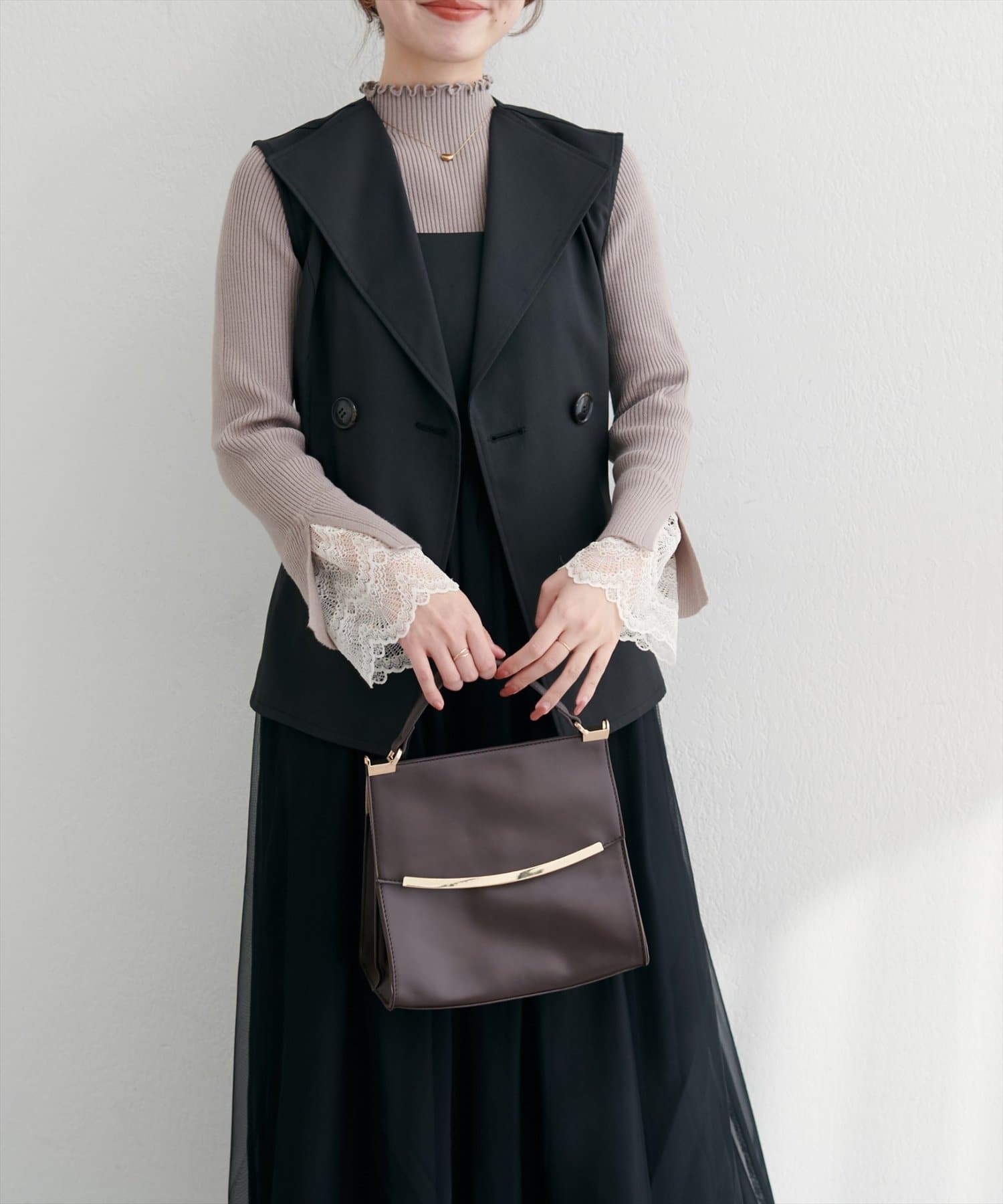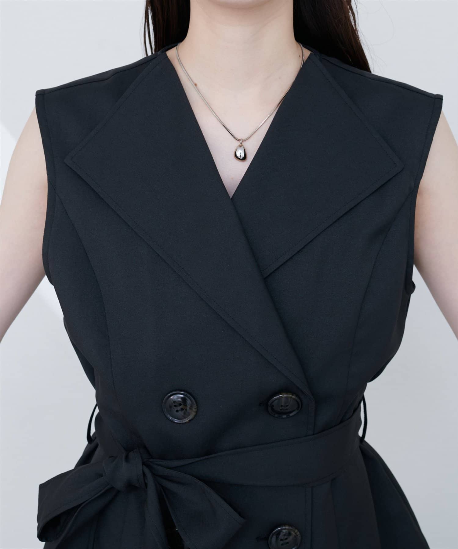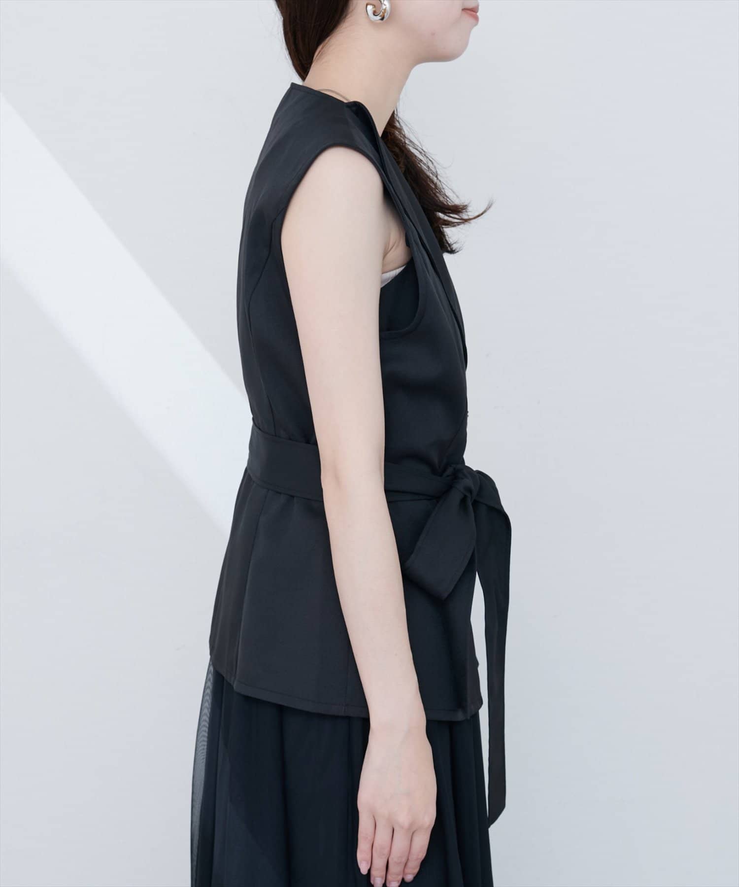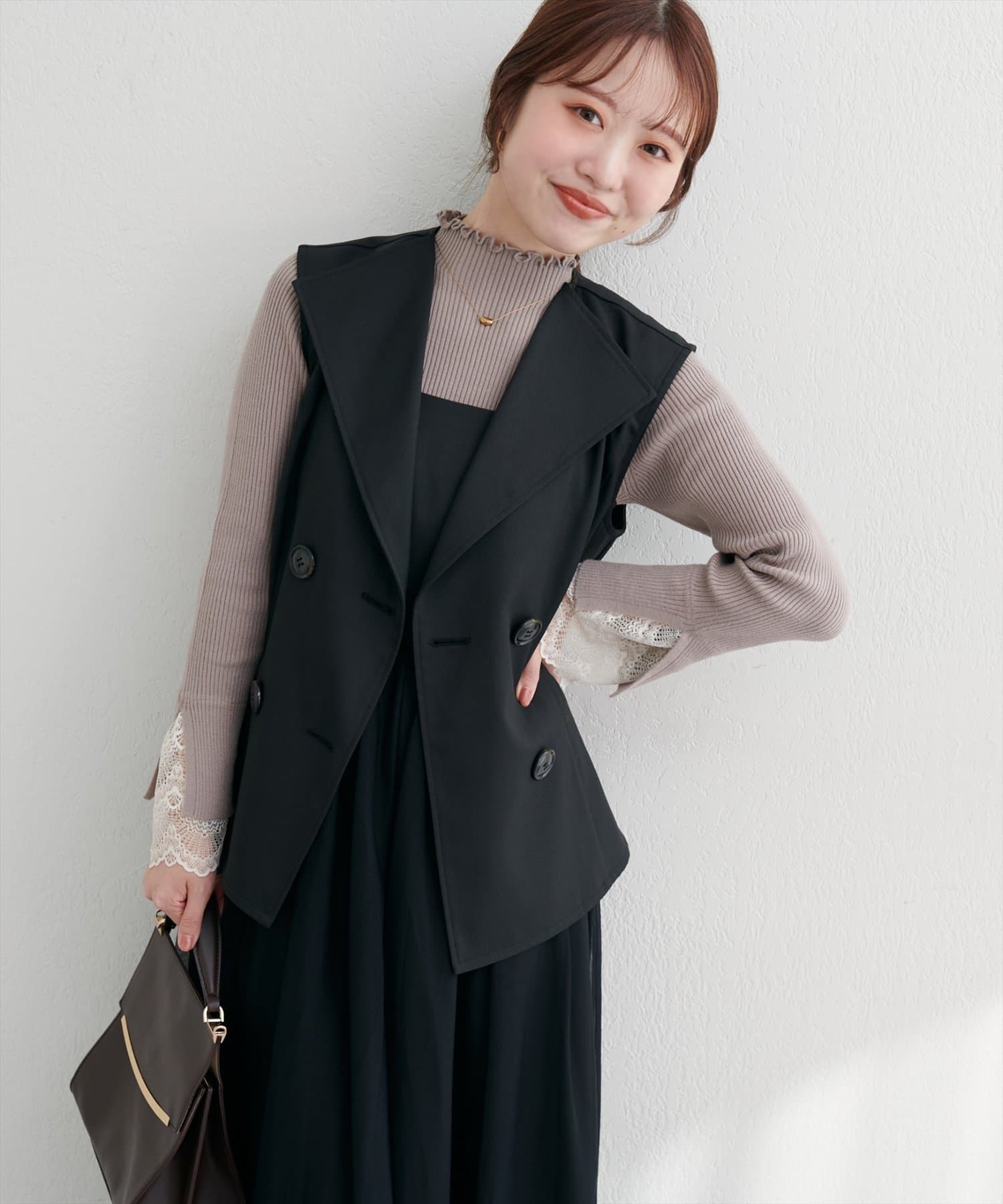ベストはダブルボタンとウエストリボンがアクセントに。