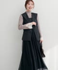 ベストのボタンを留めずに羽織ると、抜け感がでてより女性らしい印象に。