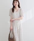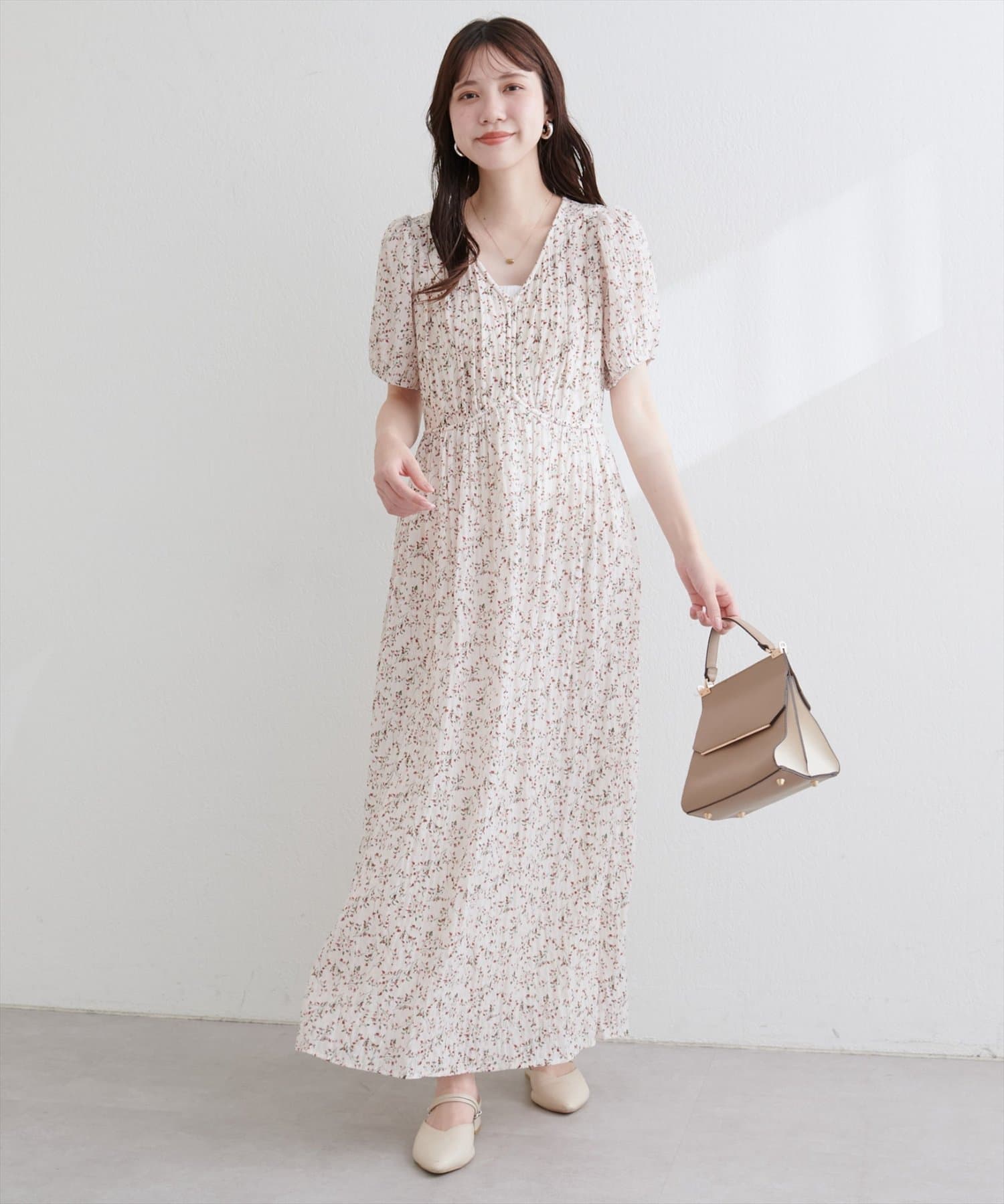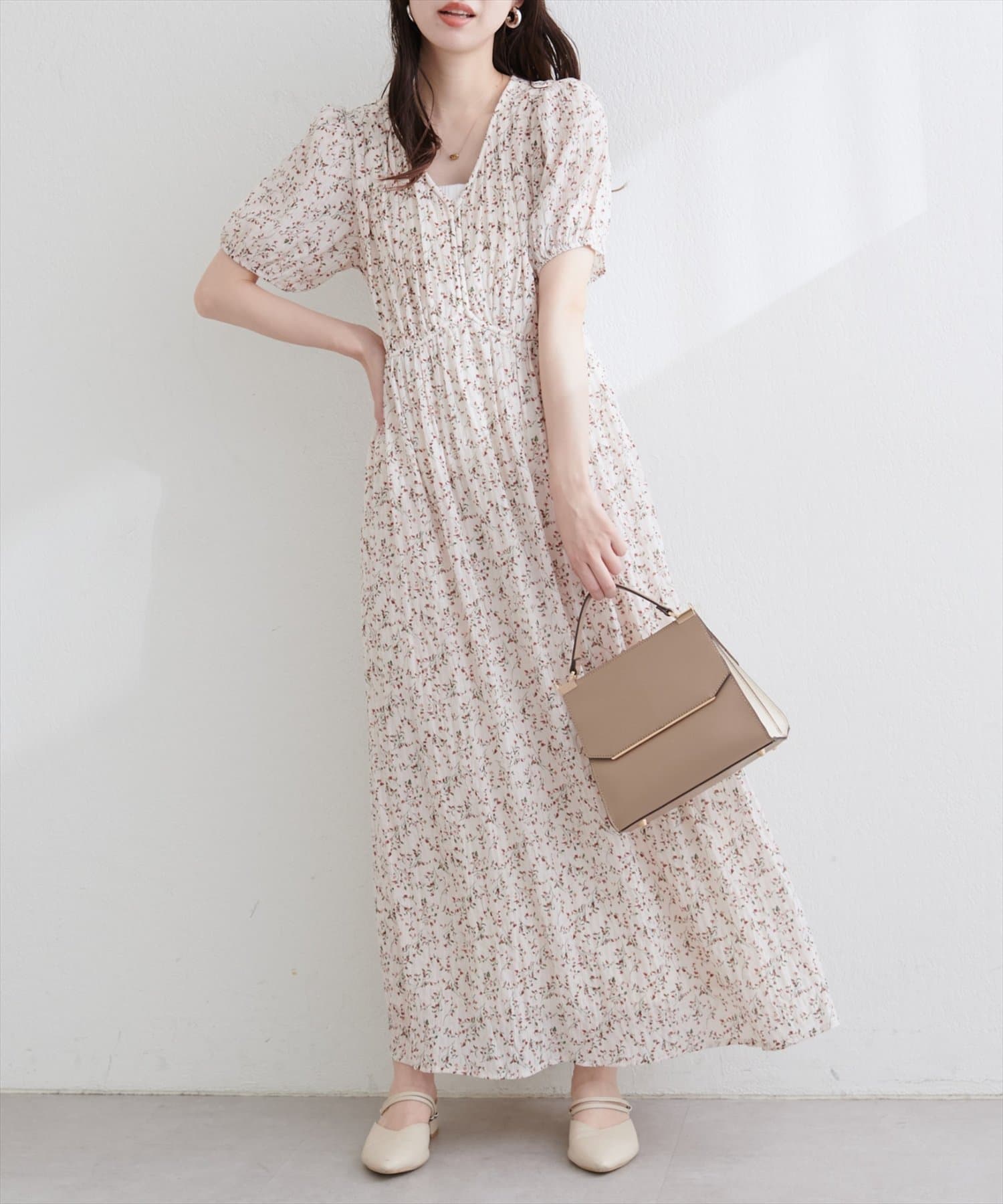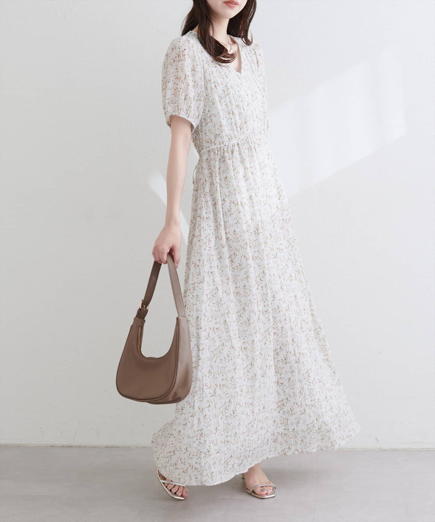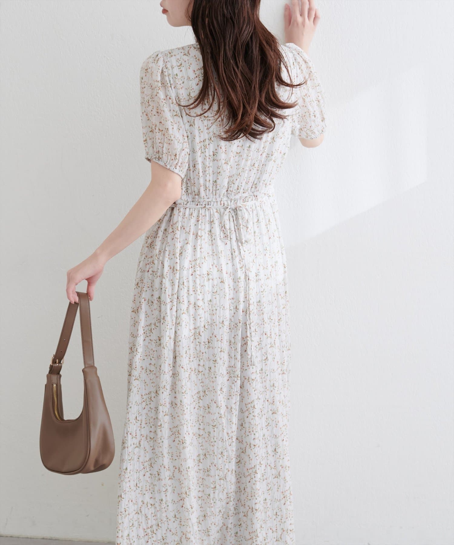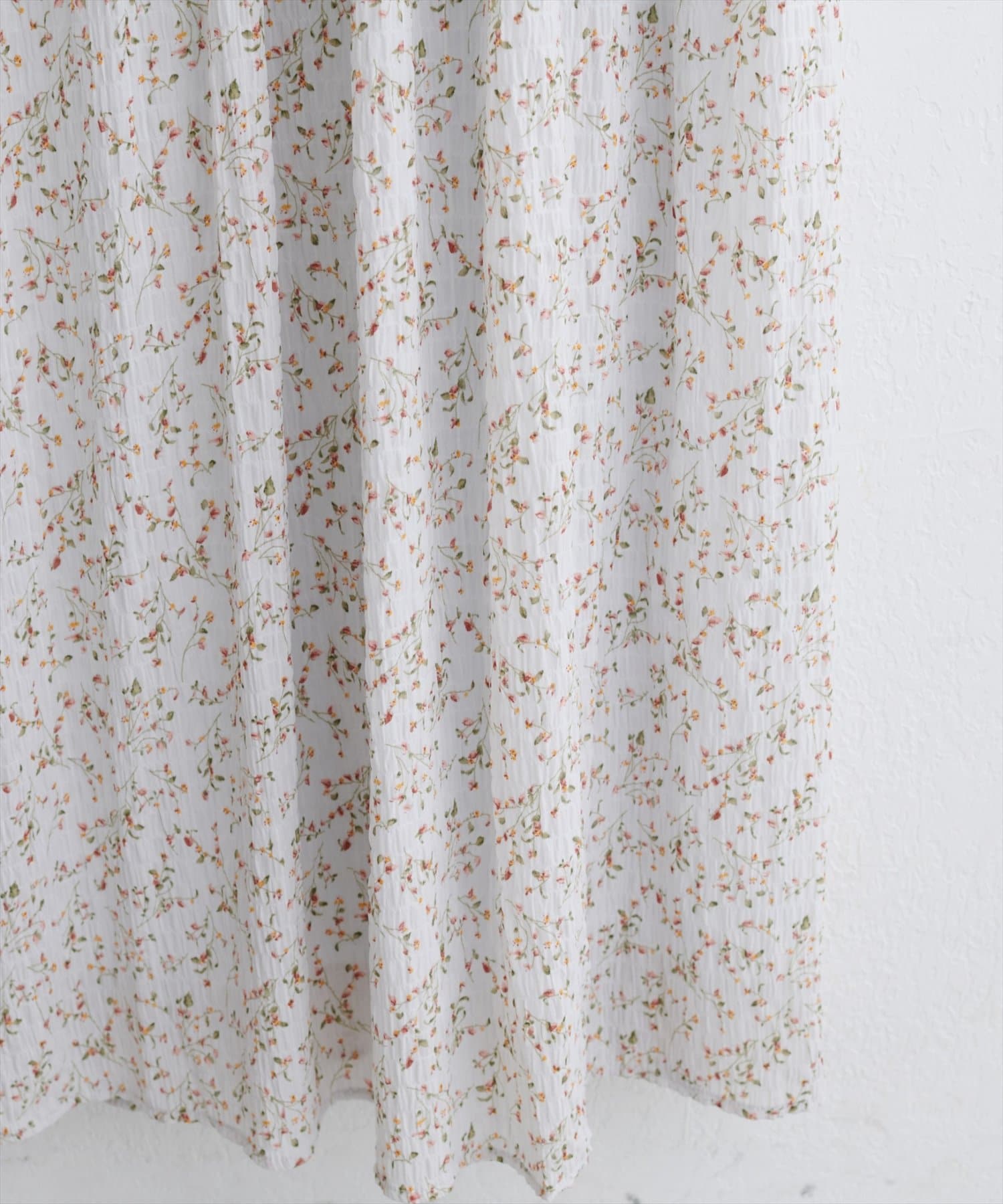 全体に散りばめられた小花柄が、上品で優しい印象を与え華やかさを演出します。