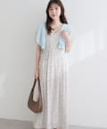 コード切り替えでメリハリをだし、ウエストのリボンを後ろで結べばさり気ないスタイルアップが叶います。