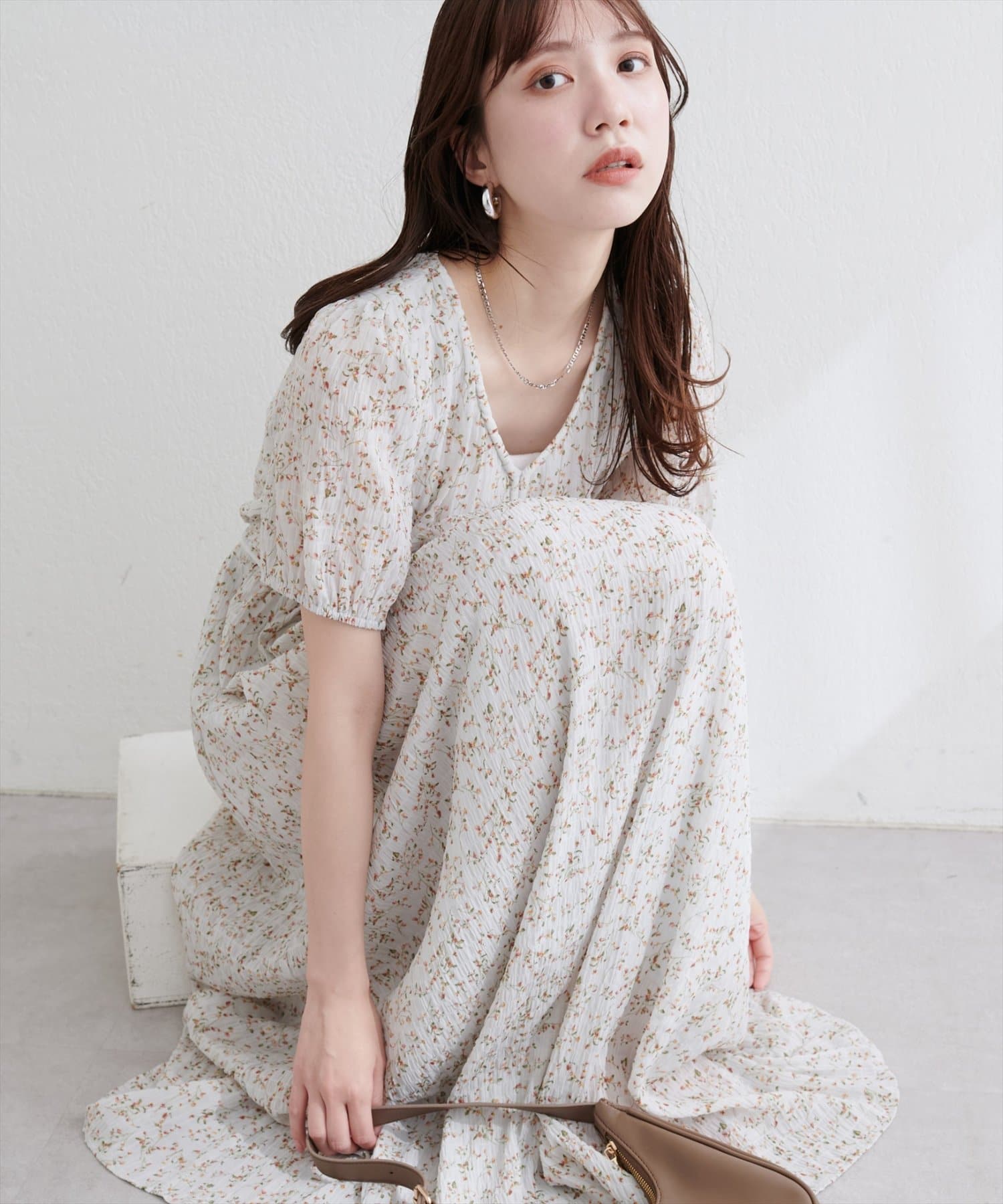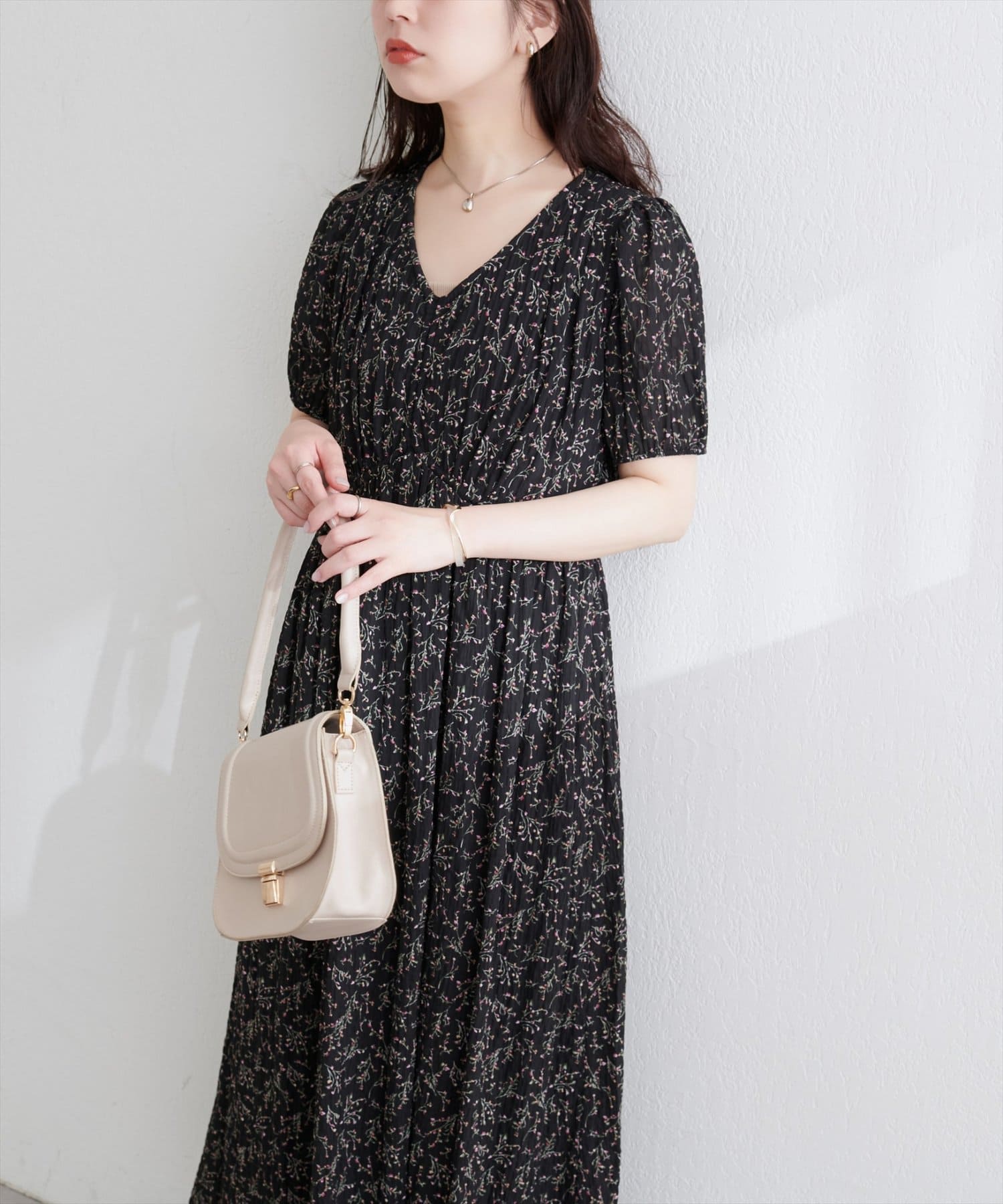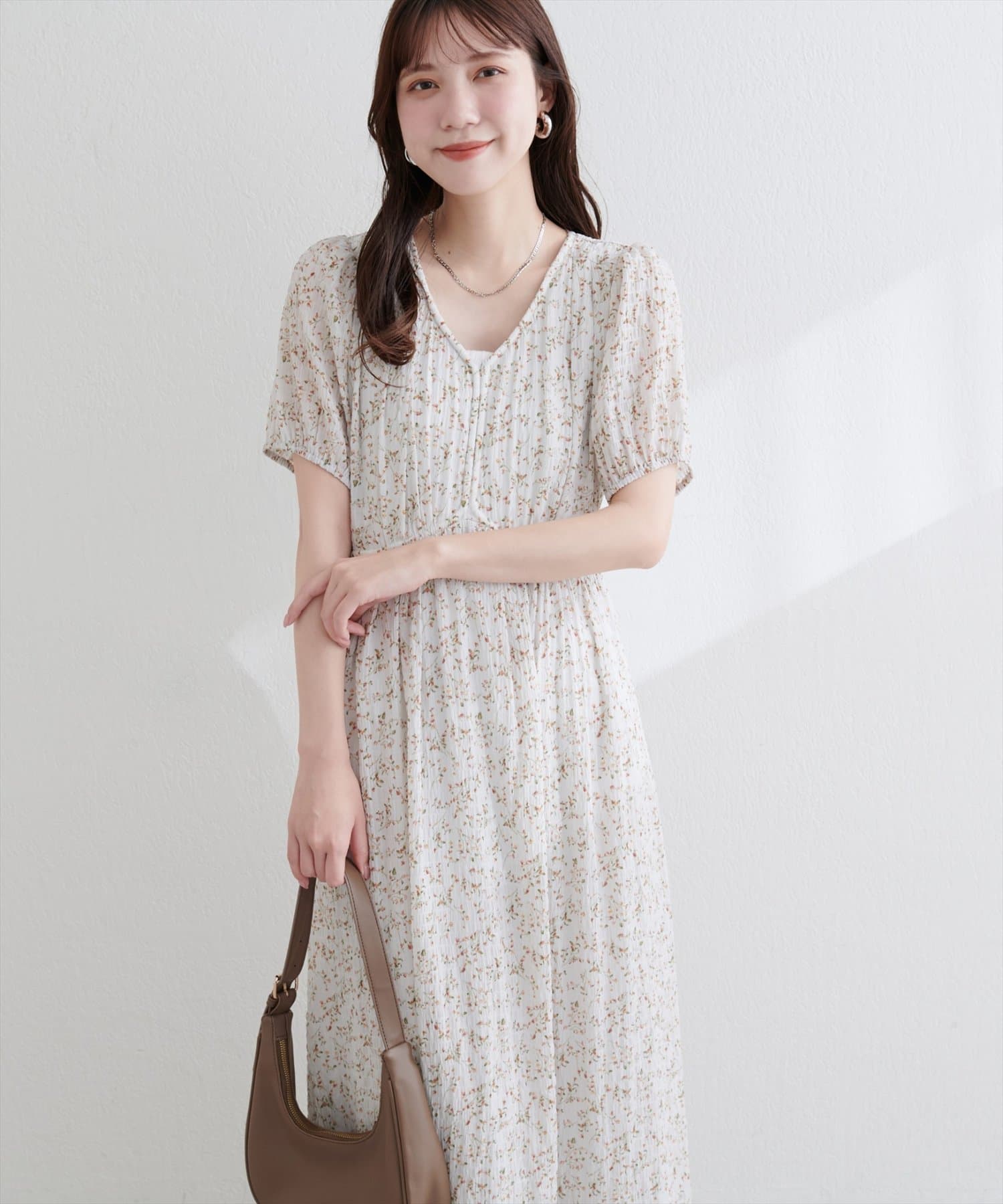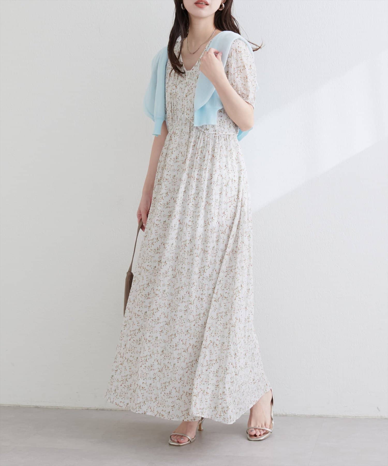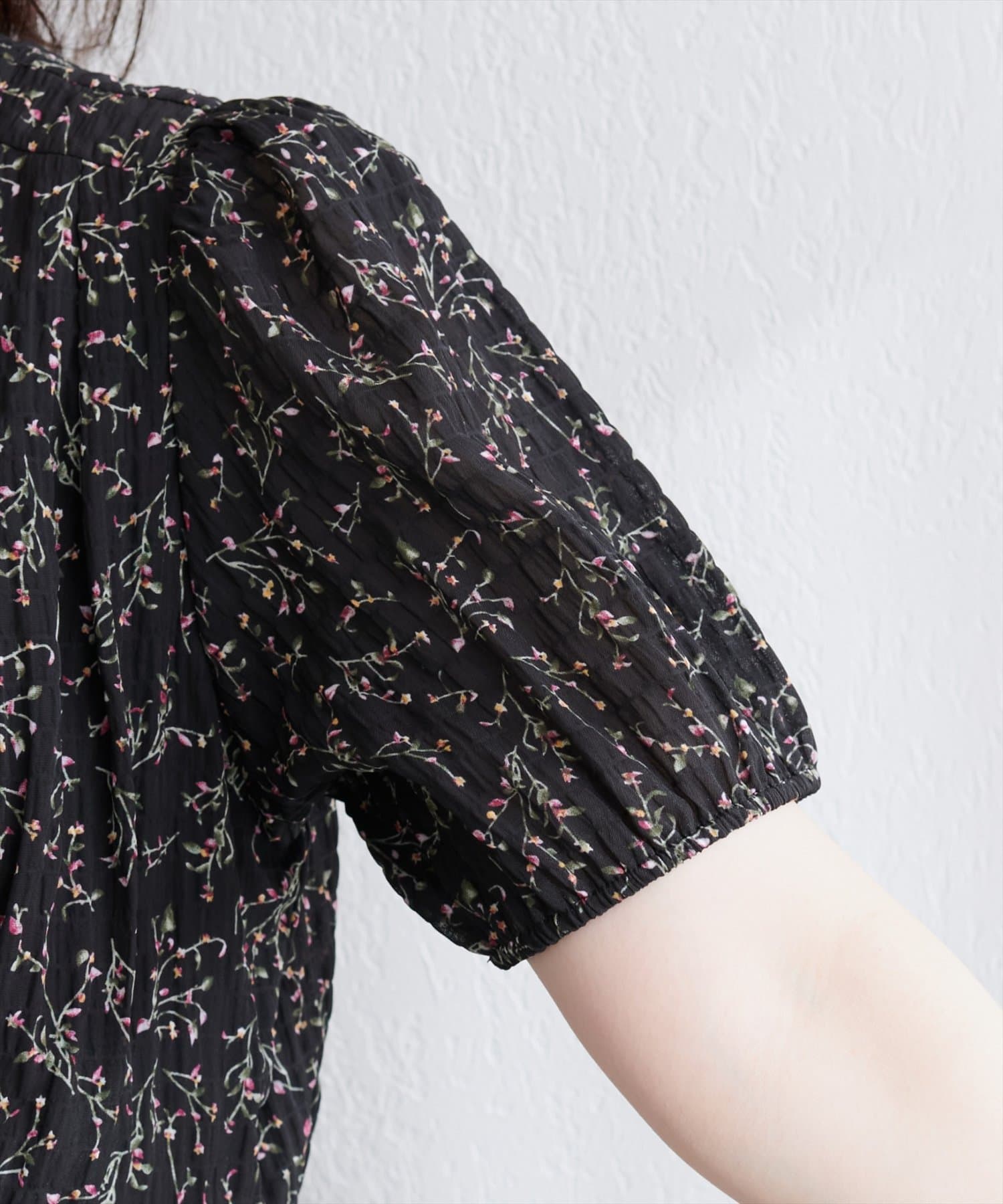 軽やかな素材感に繊細な小花柄が、大人の女性らしさを引き立てる一枚です。