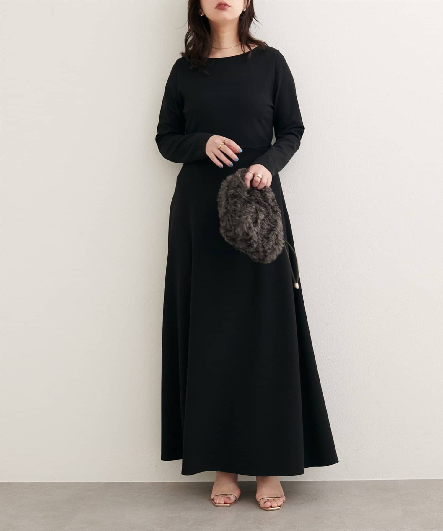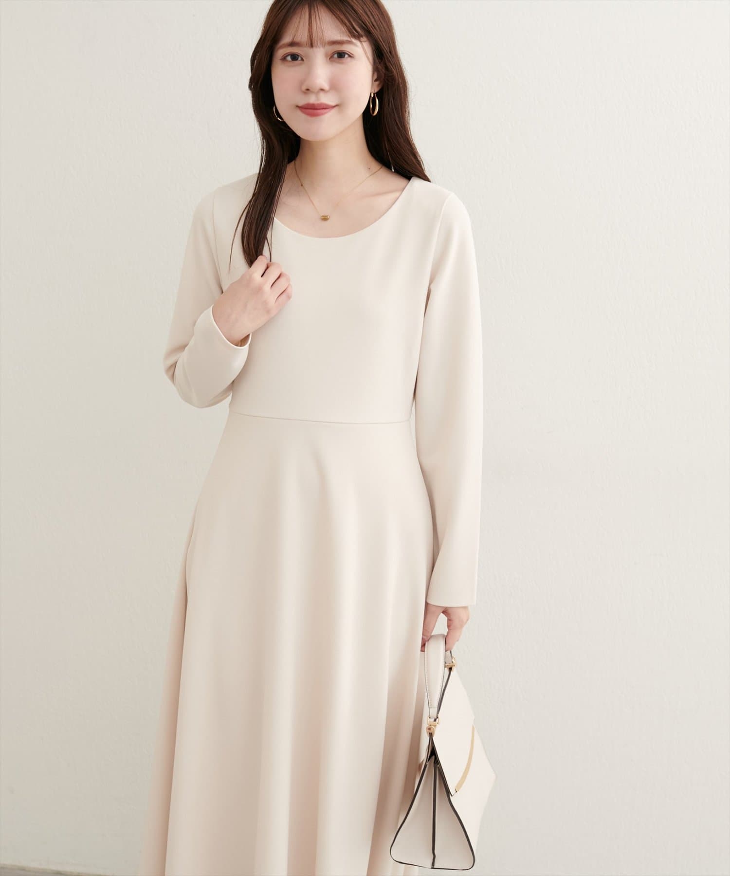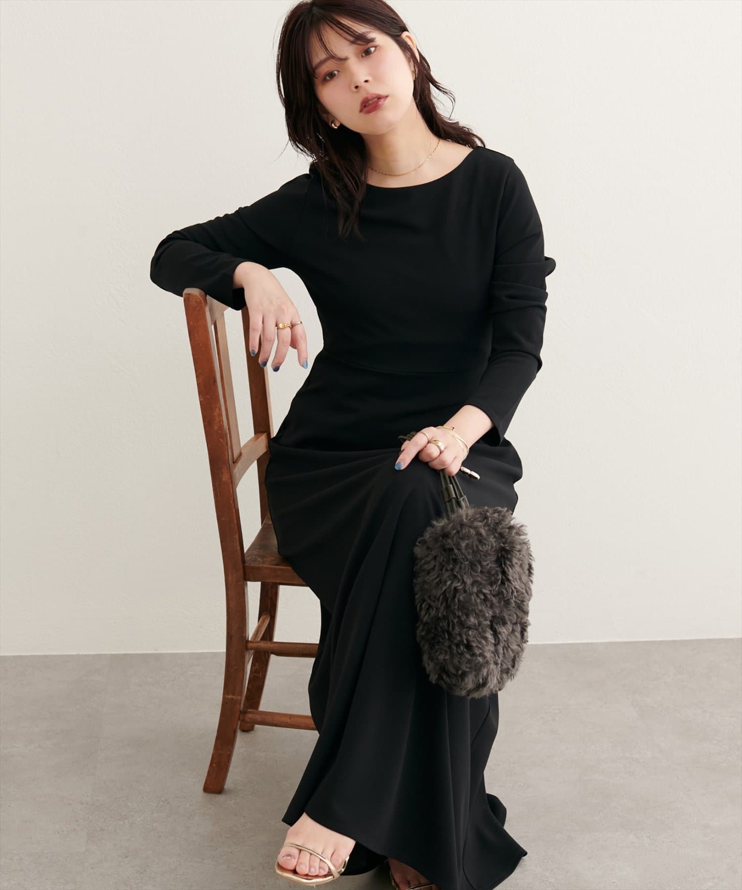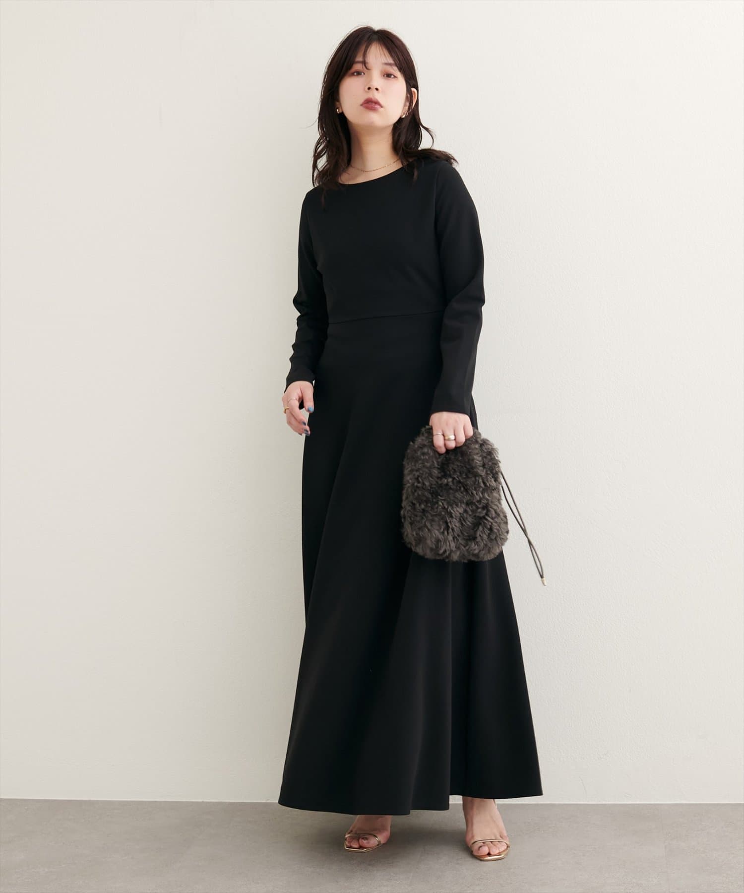 上半身はすっきりとフィットさせ、スカート部分には程よいボリュームを持たせることで、