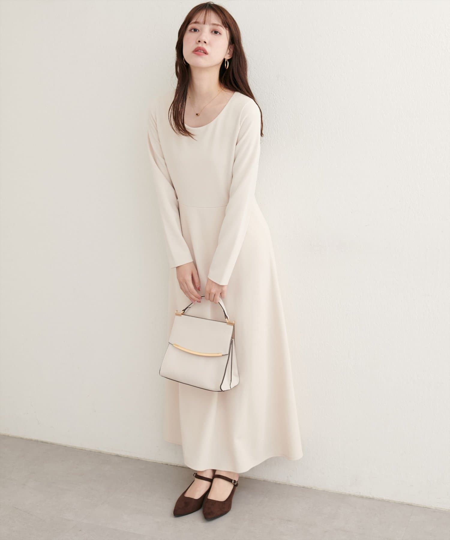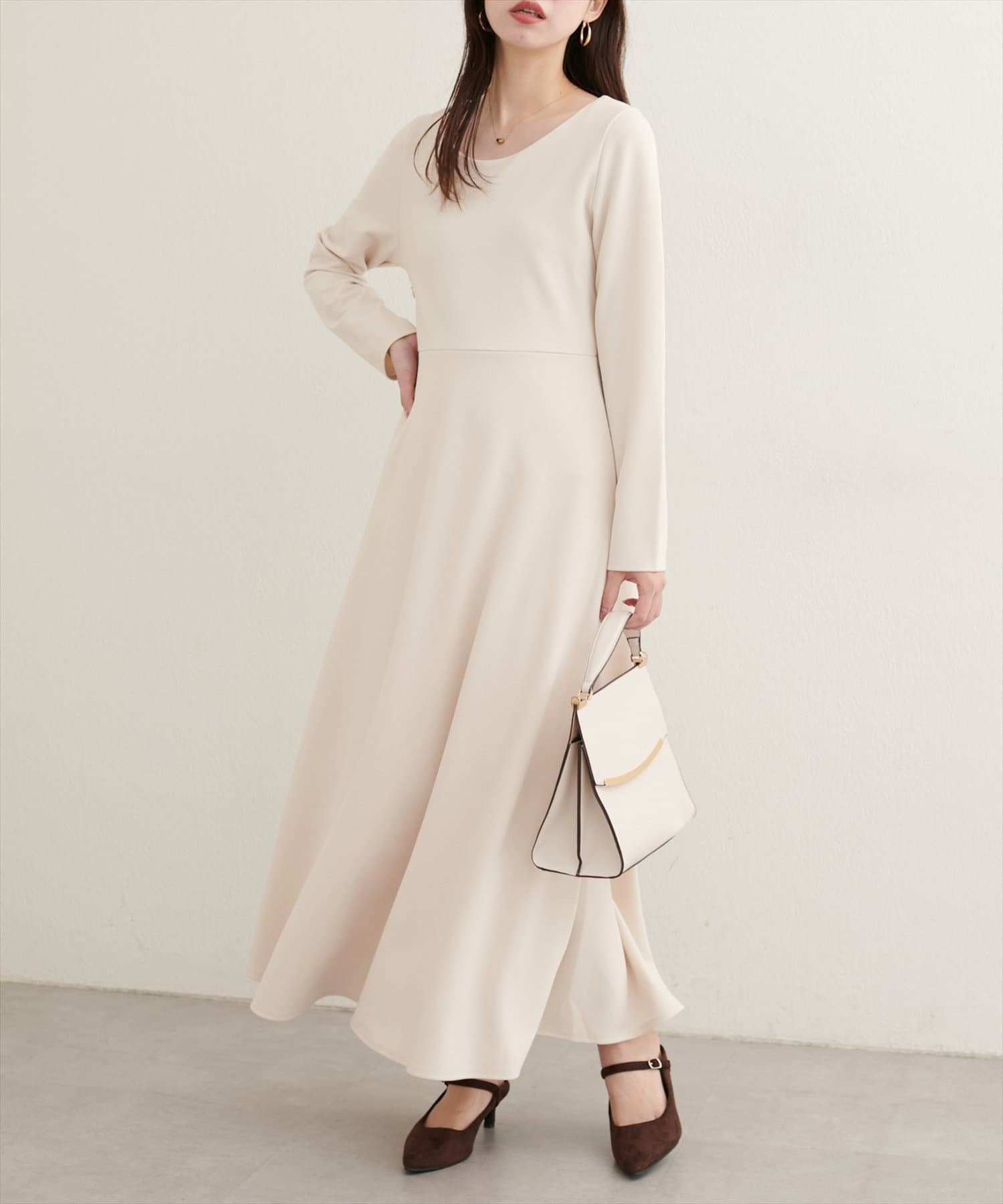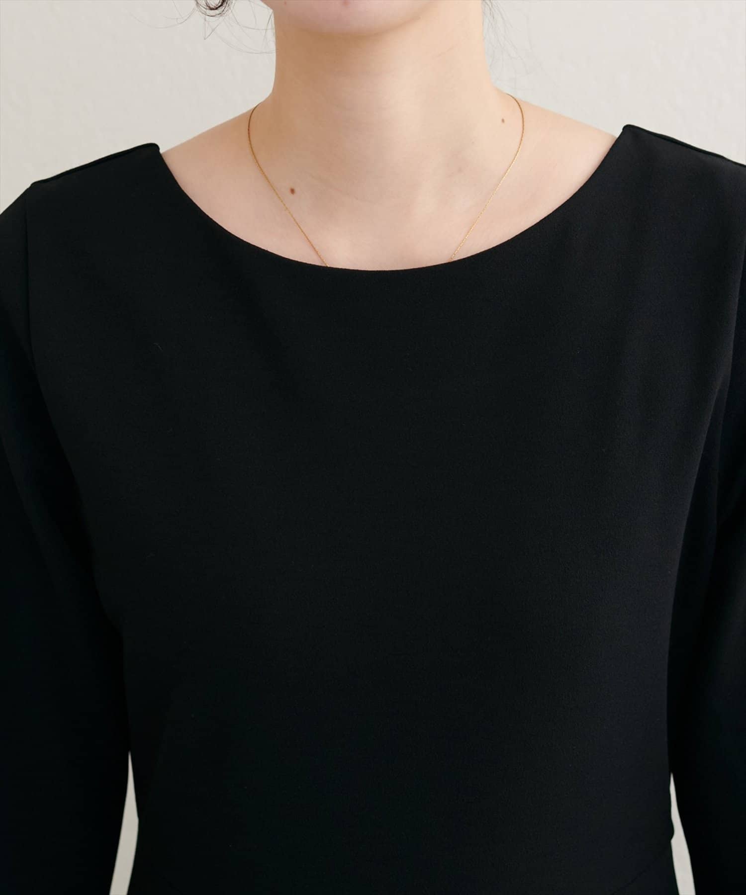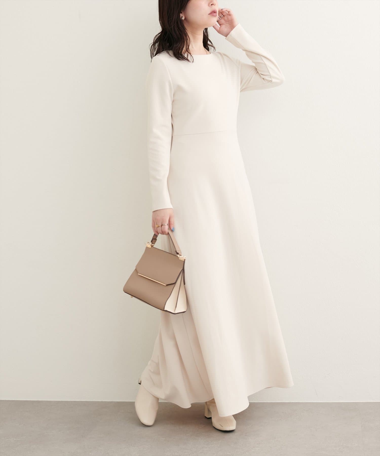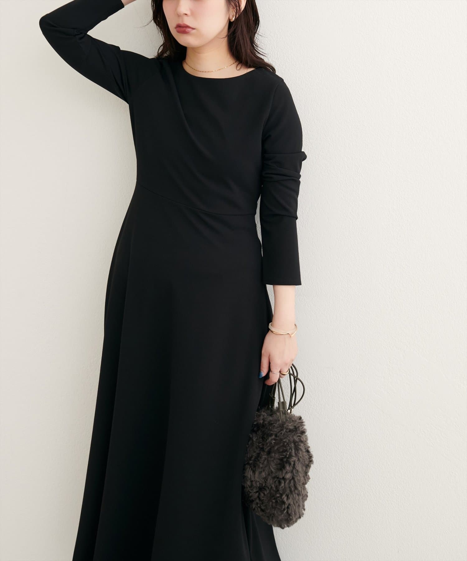 上半身はすっきりとフィットさせ、スカート部分には程よいボリュームを持たせることで、