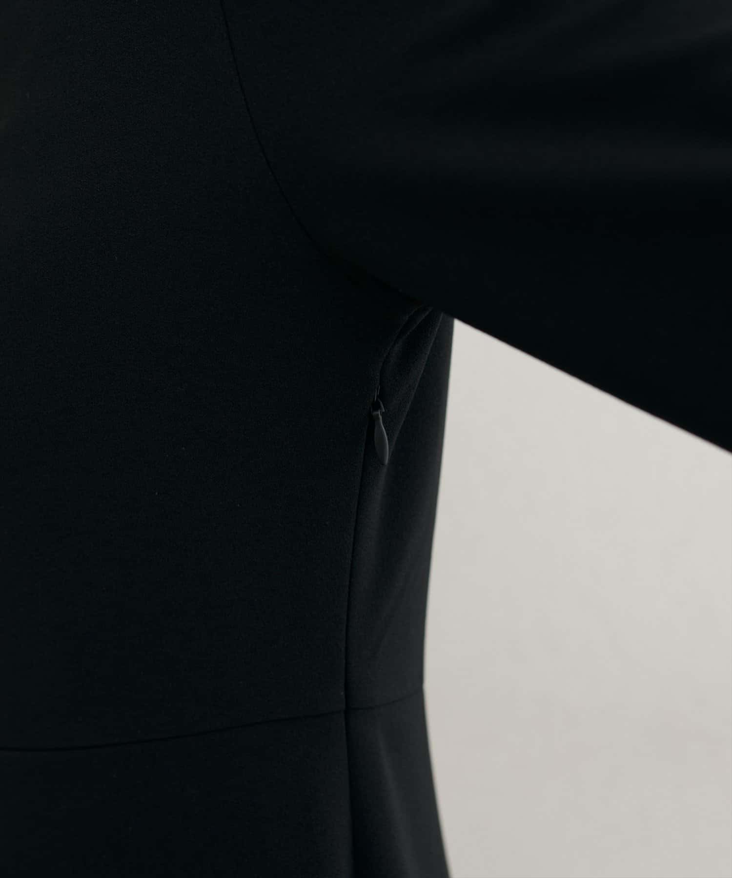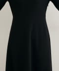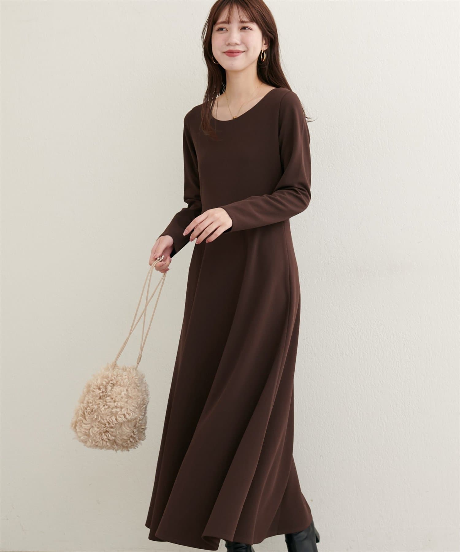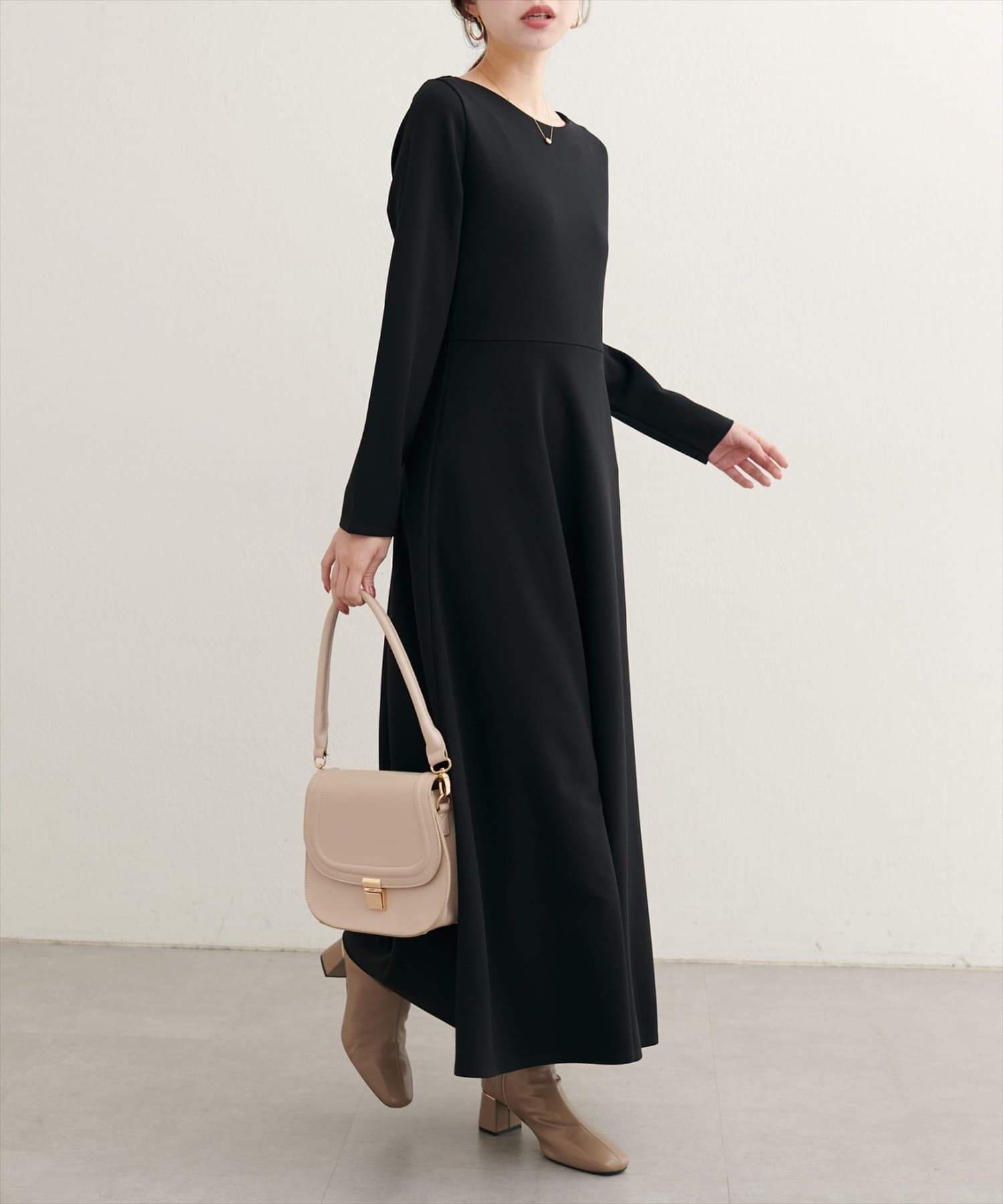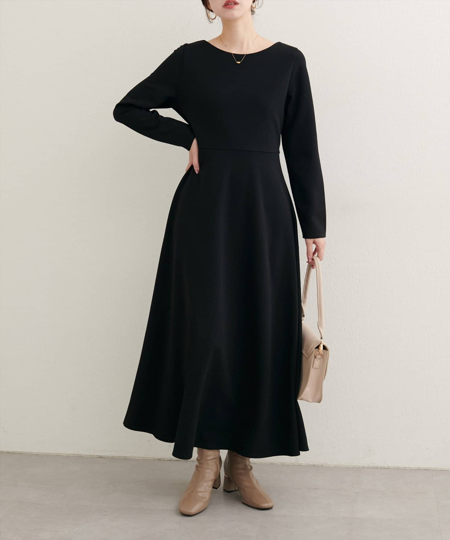 上半身はすっきりとフィットさせ、スカート部分には程よいボリュームを持たせることで、