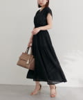 ウエスト位置が高めなのでスタイルアップ効果もありスカート部分には切り替えがありふわっとした印象に◎