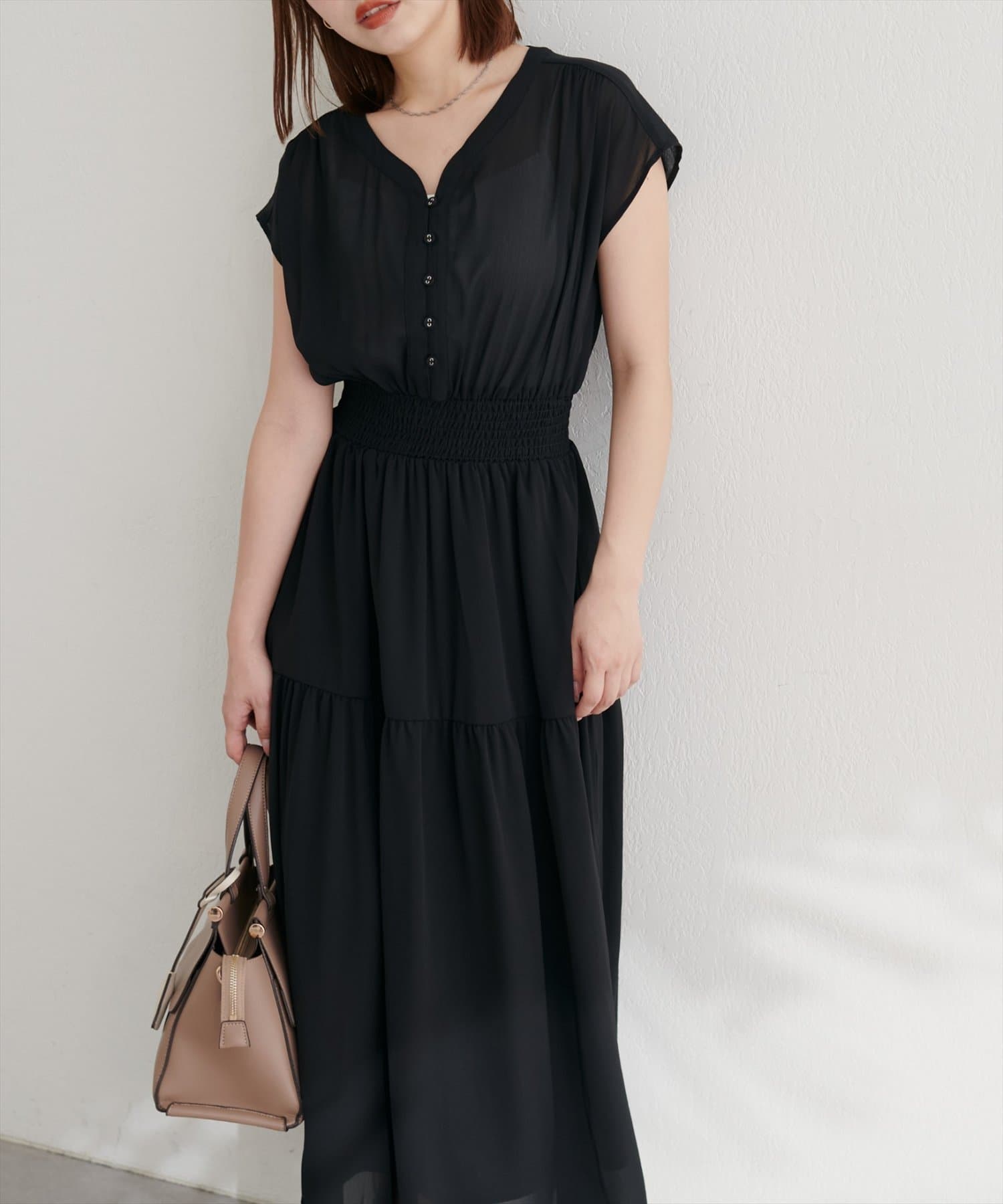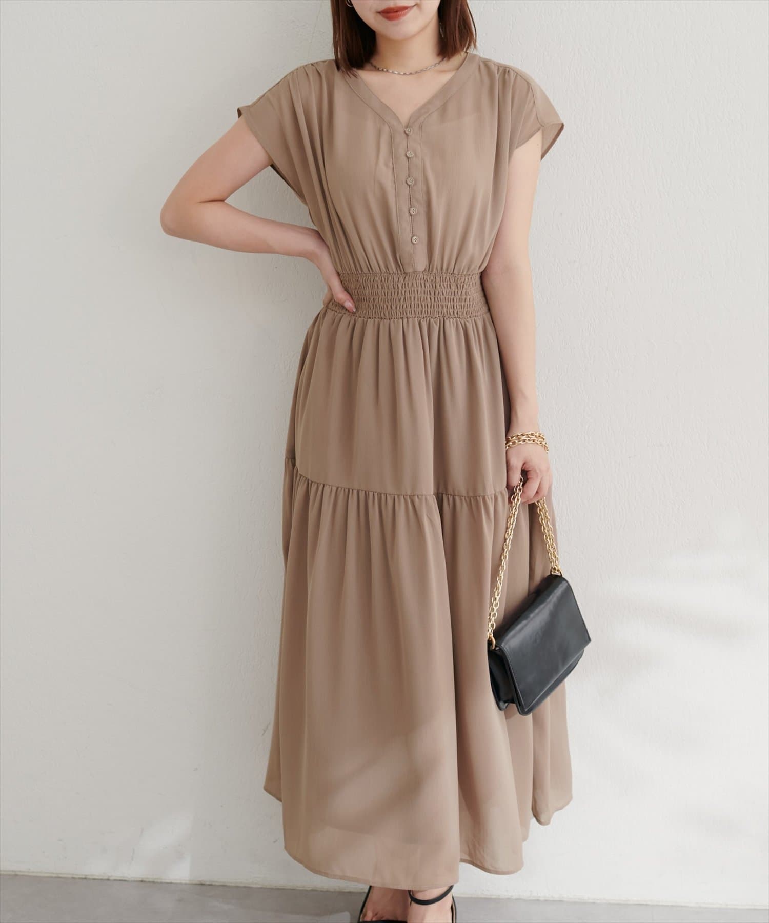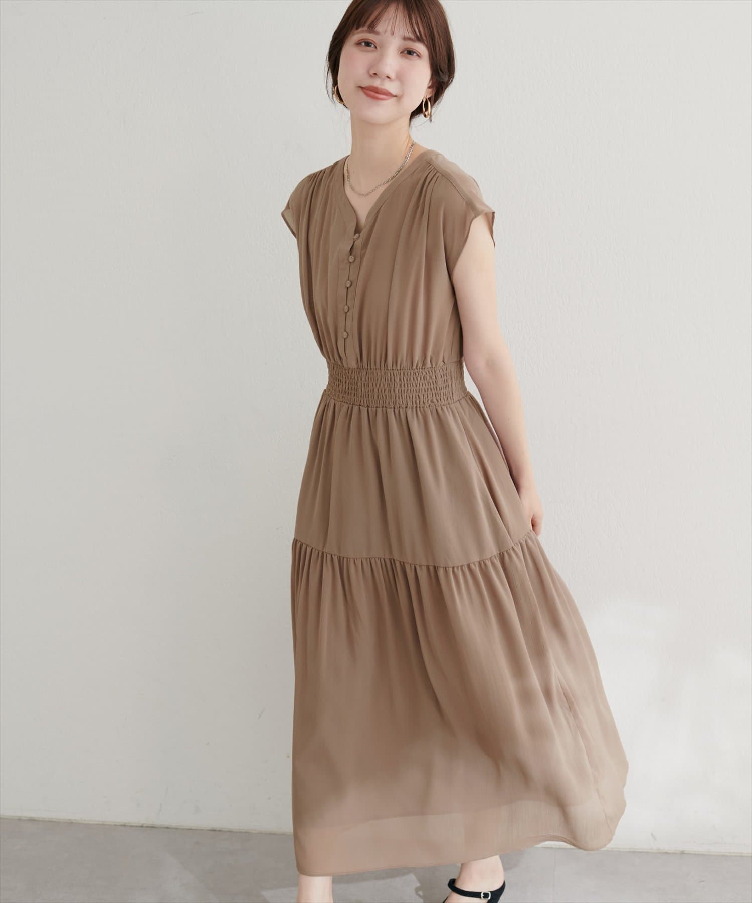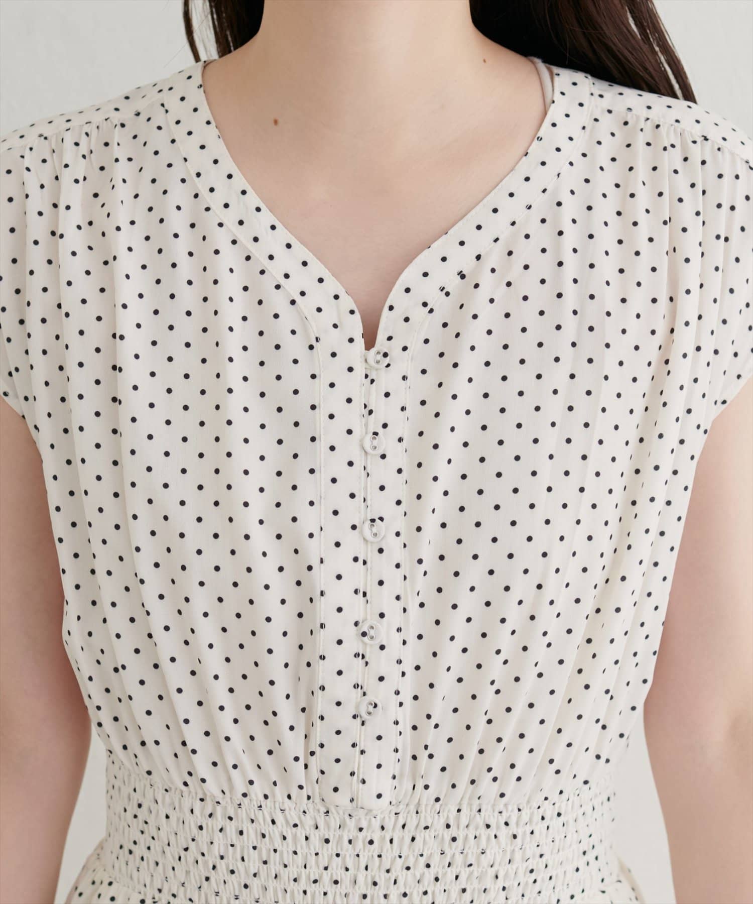二の腕部分もカバーできるようフレンチスリーブを採用。