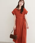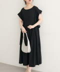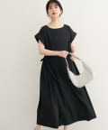 シンプルなデザインながらも、サイドのドロストがアクセントになったワンピース。