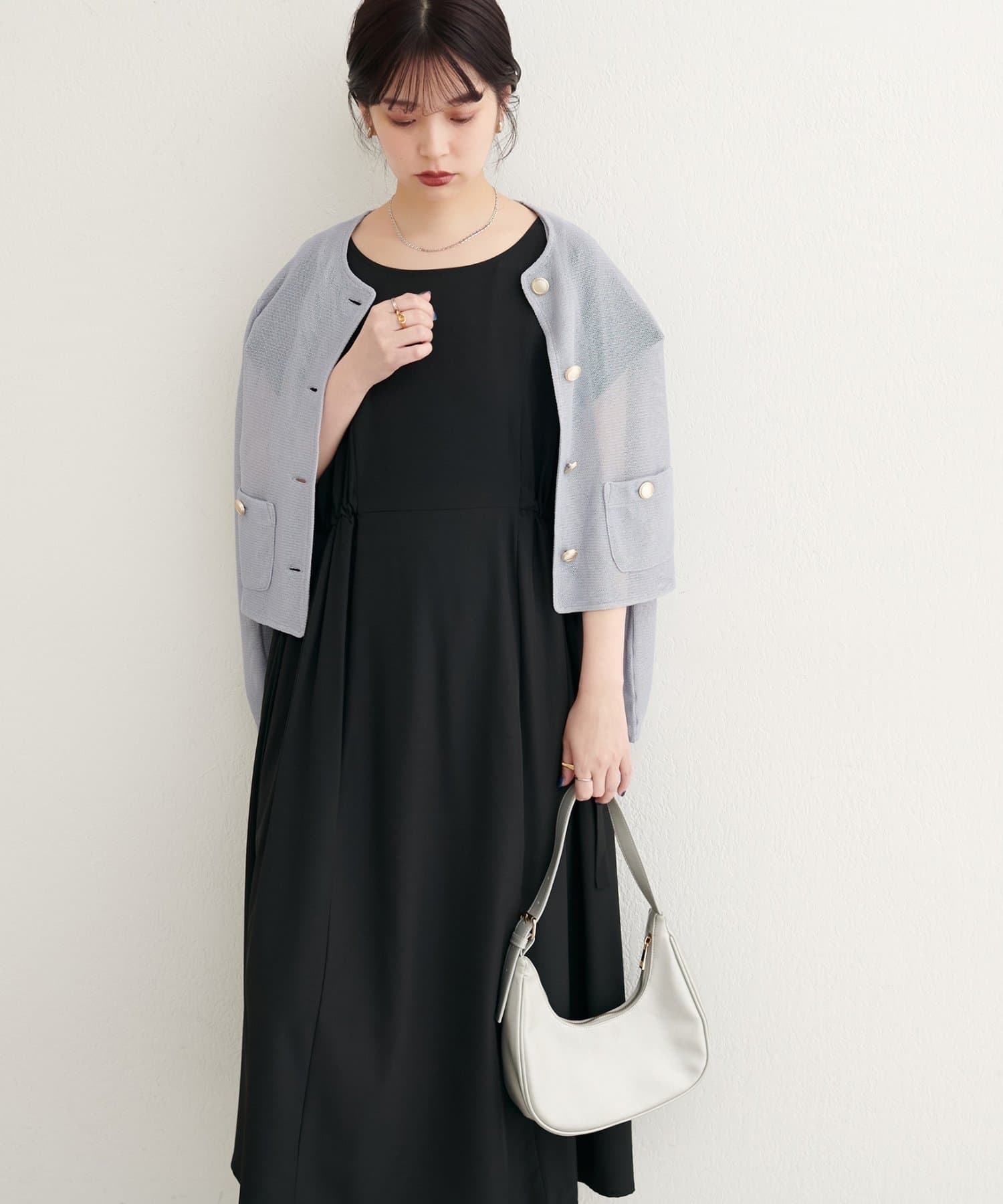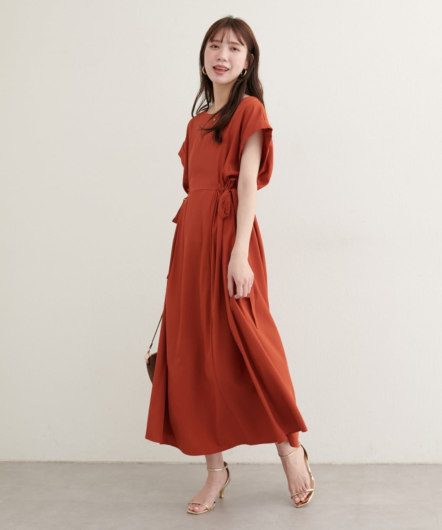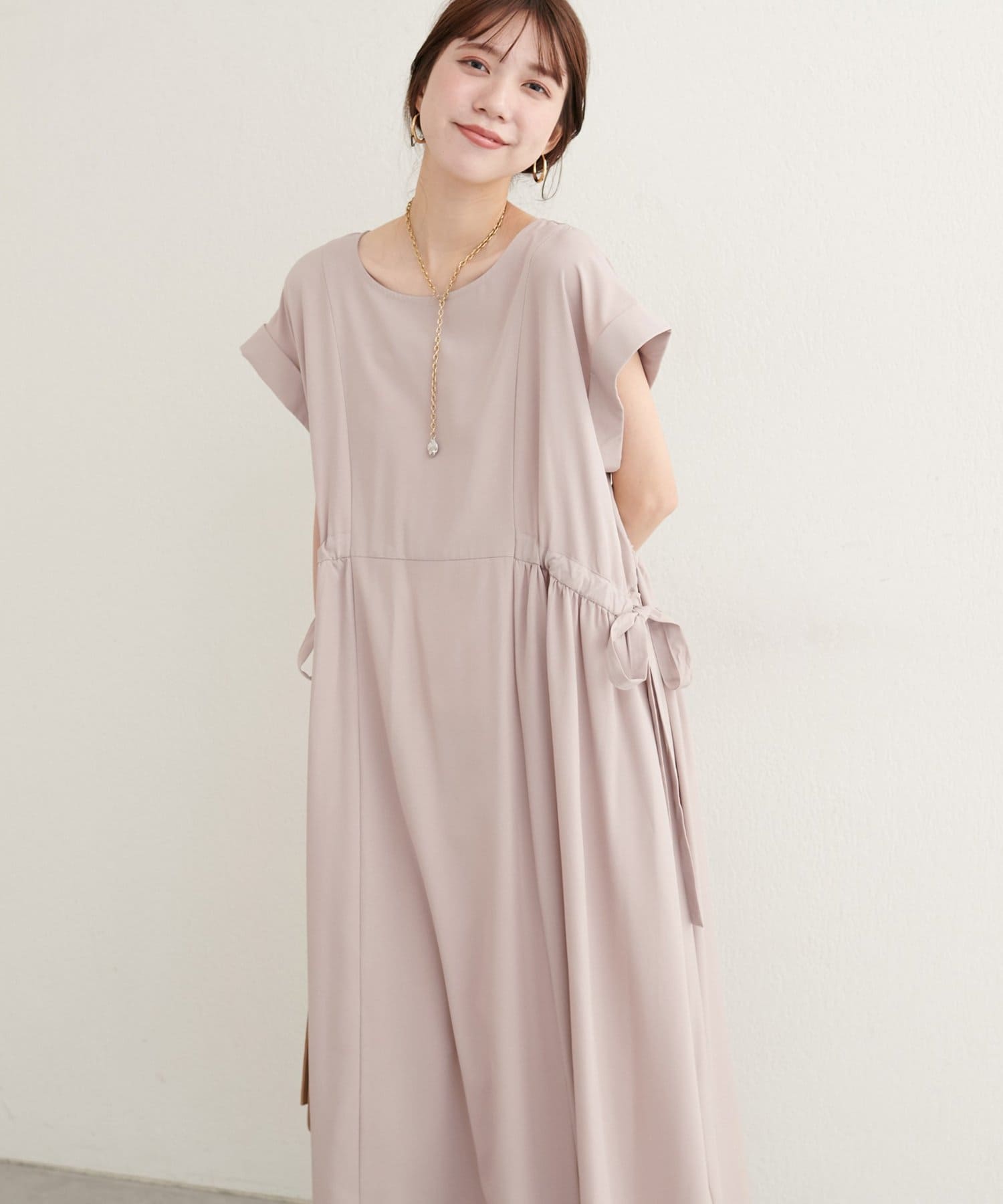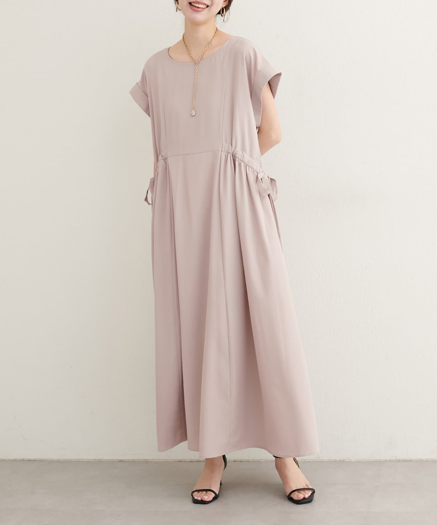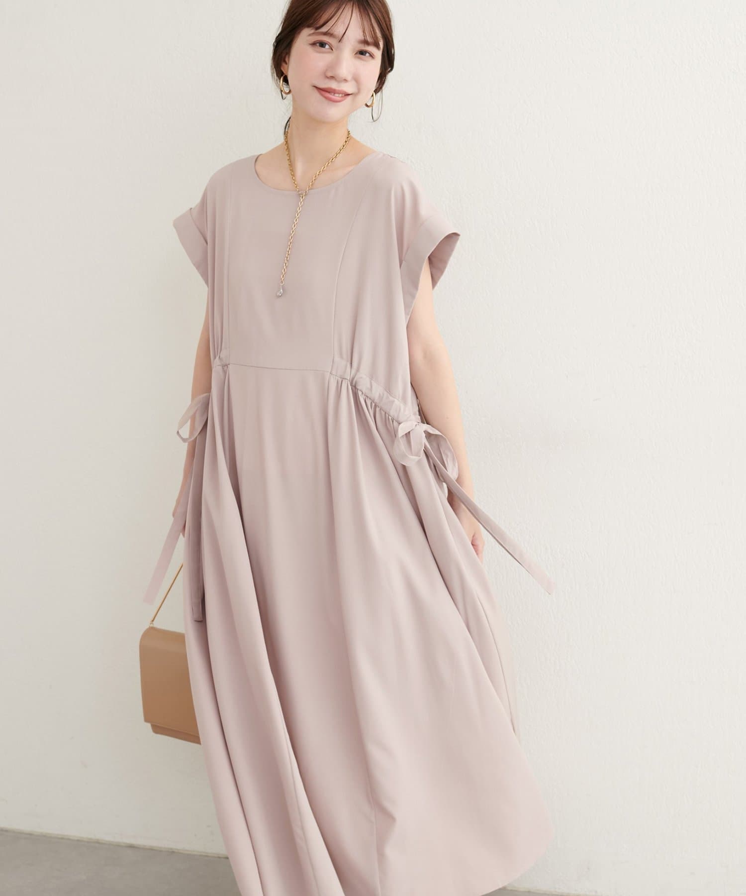 シンプルなデザインながらも、サイドのドロストがアクセントになったワンピース。
