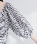 パフスリーブで腕周りのカバーもバッチリ。今年は袖丈を長めにして秋口まで使えるようにしました。