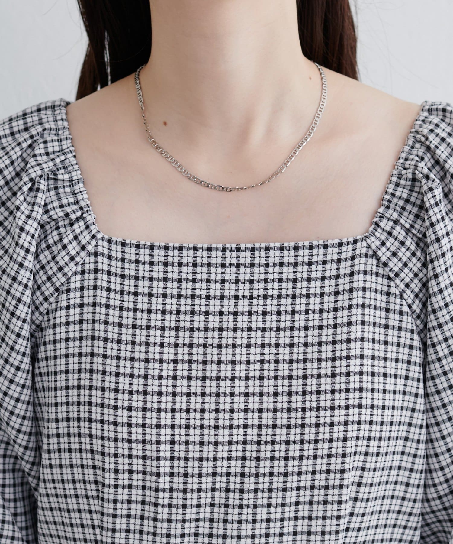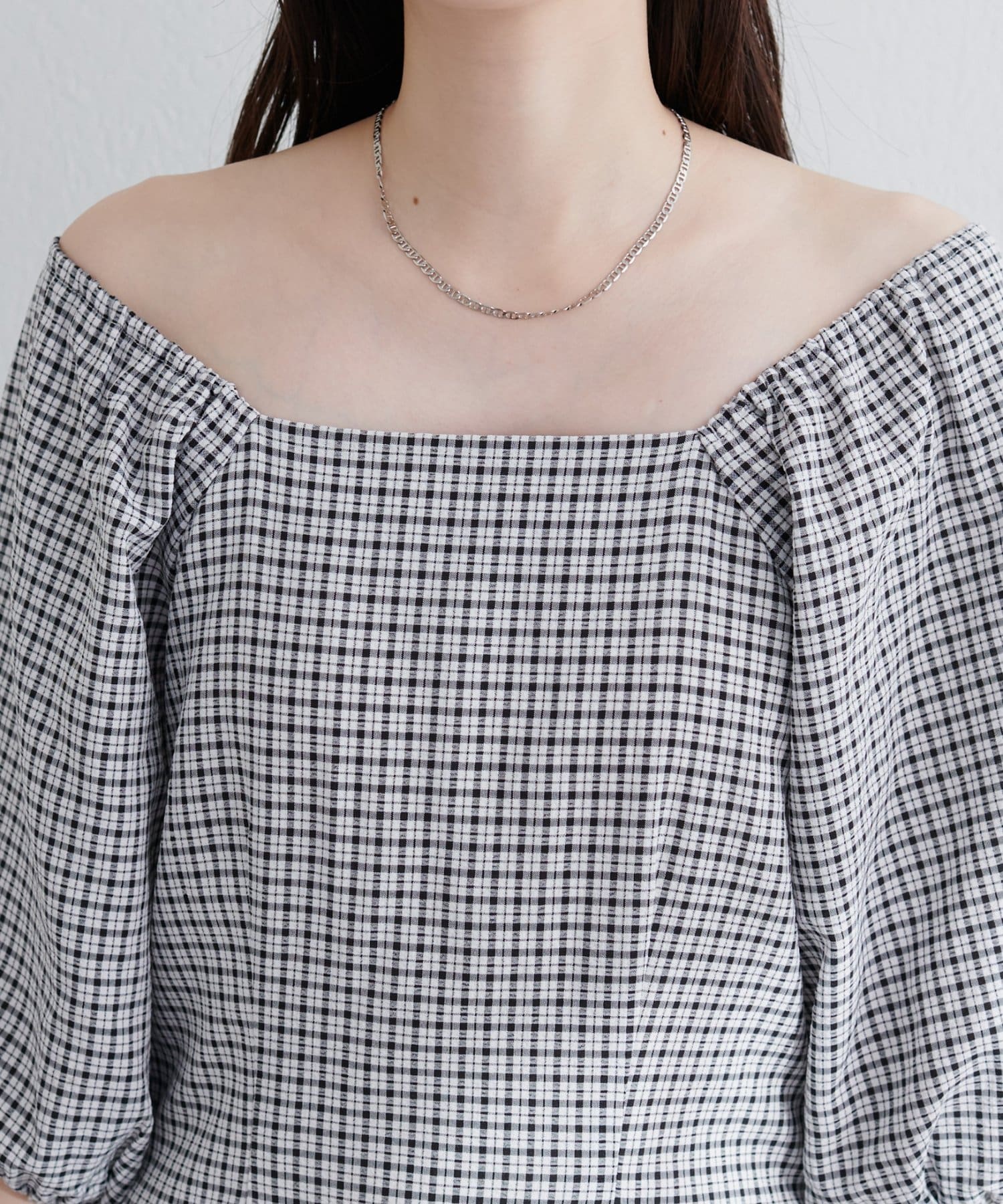 首の開きが広いので気になる方はレース系のインナーを見せていただくのもおすすめです。