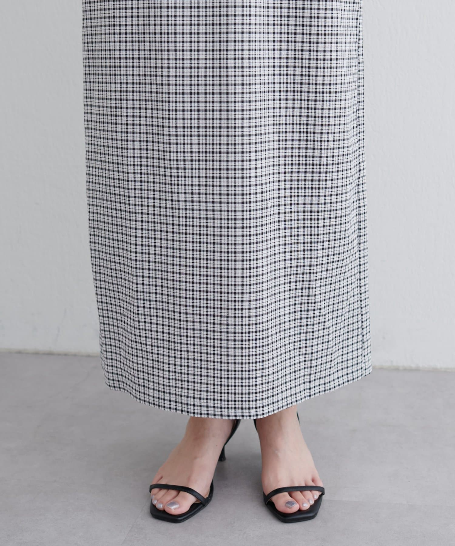 ハイウエスト過ぎず、おしり回りやお腹周りにゆとりを持たせたことで挑戦しやすいタイトワンピースに仕上がっています。