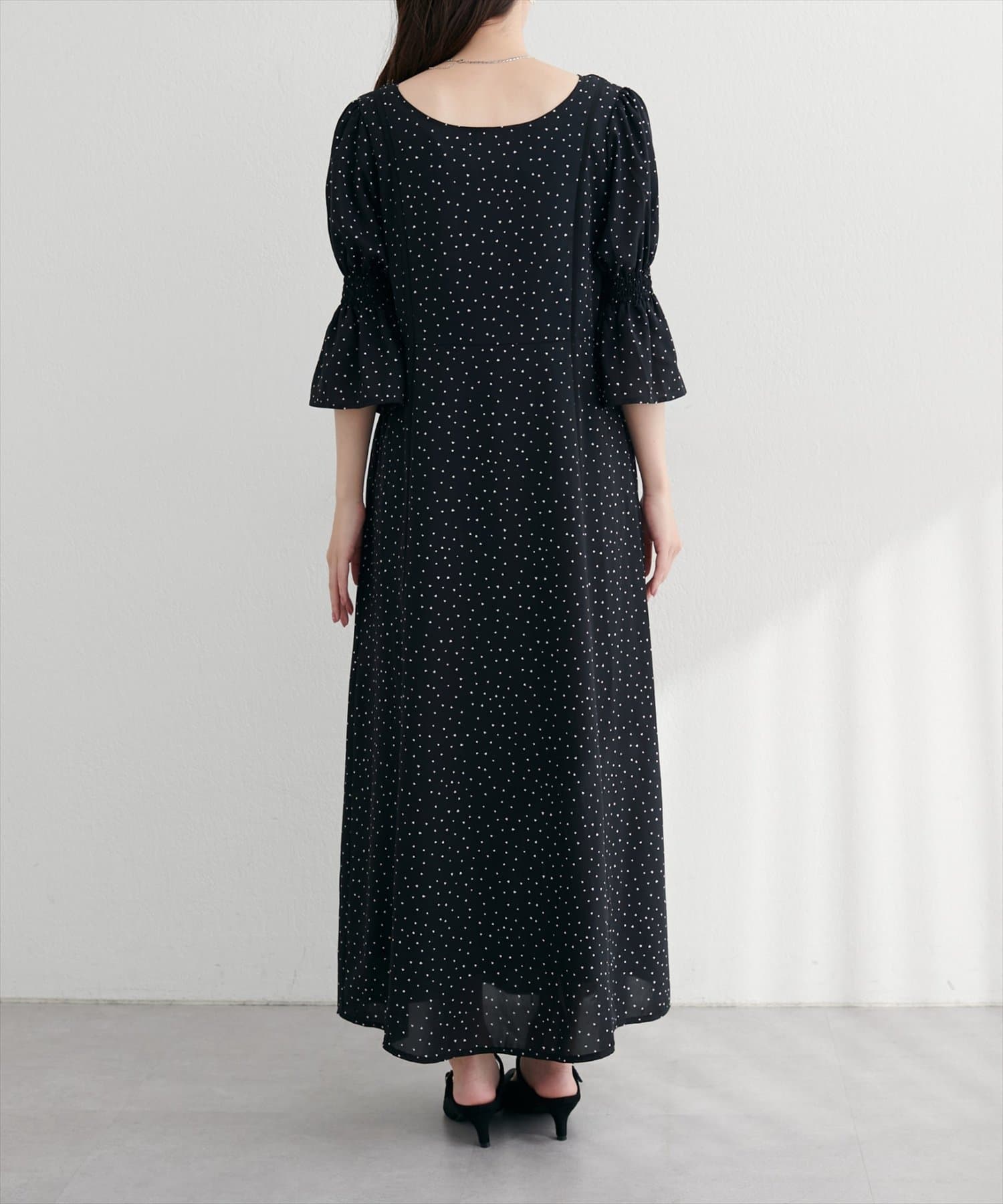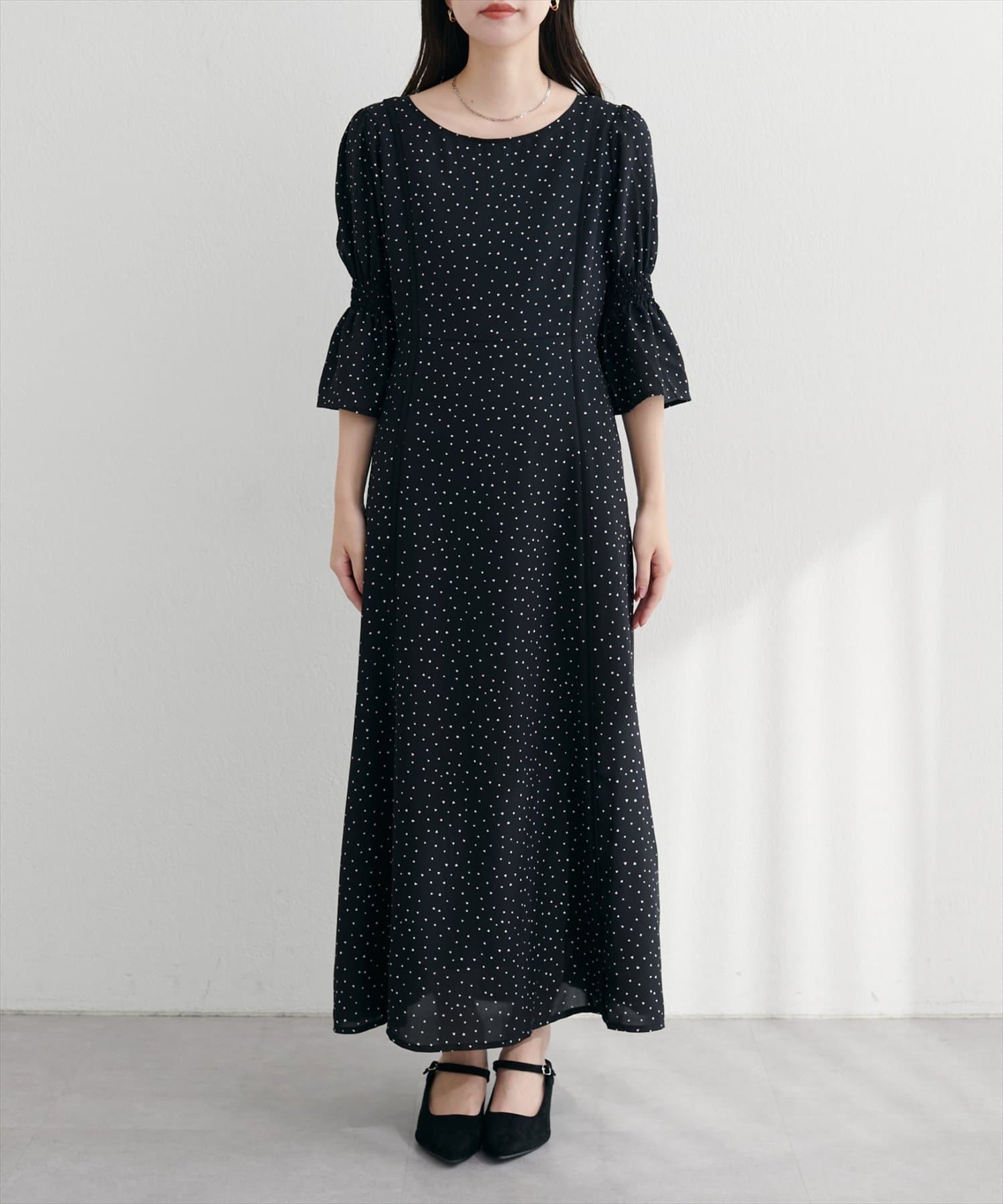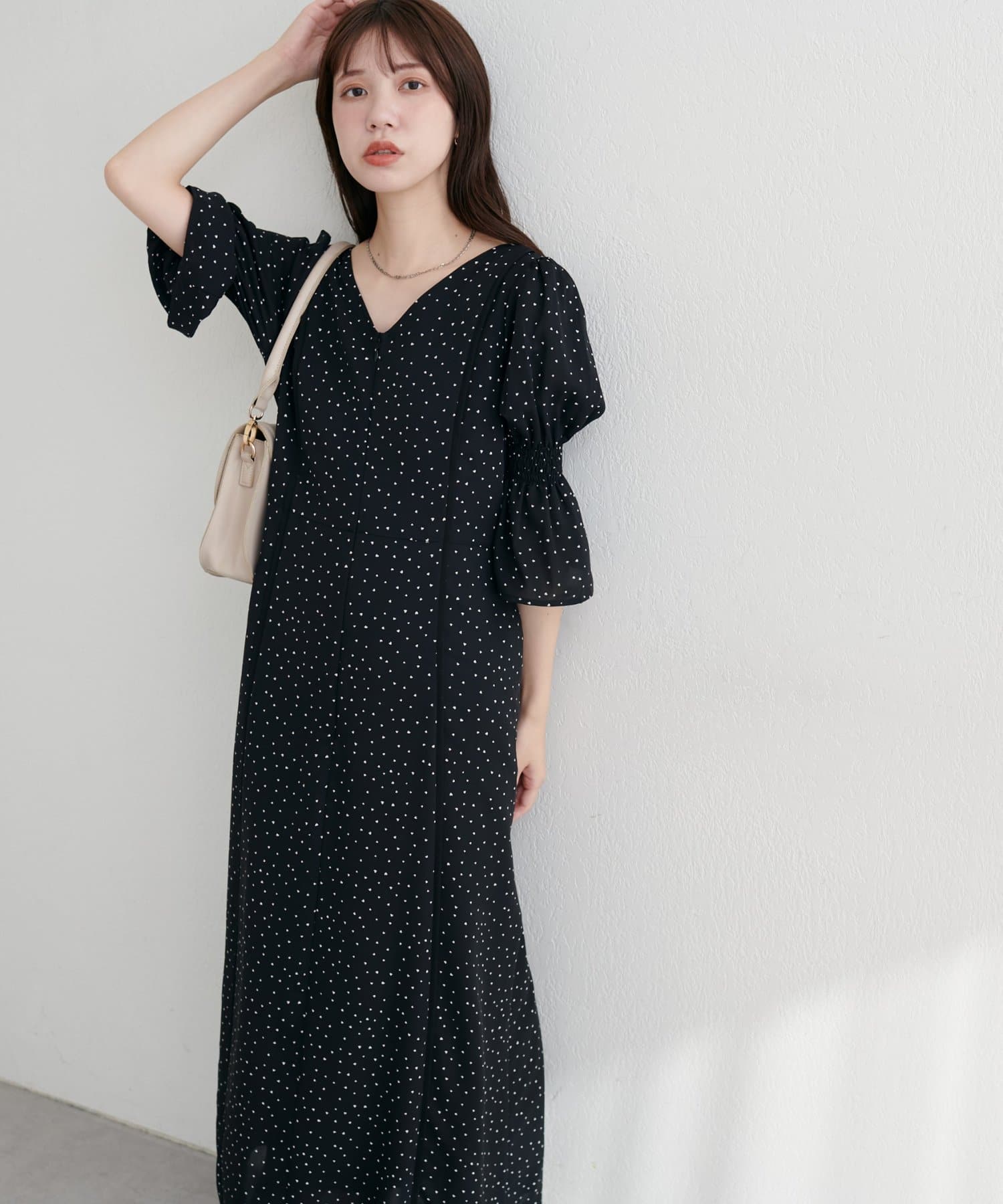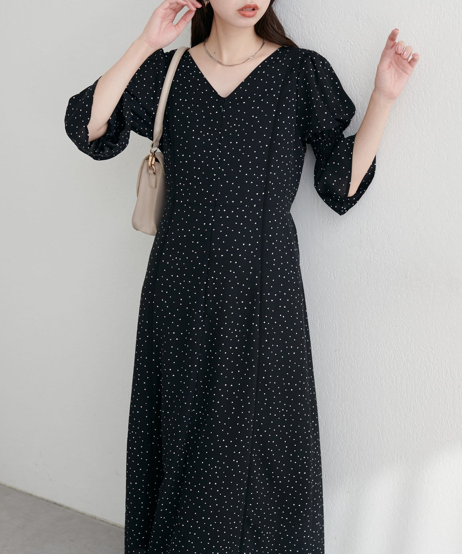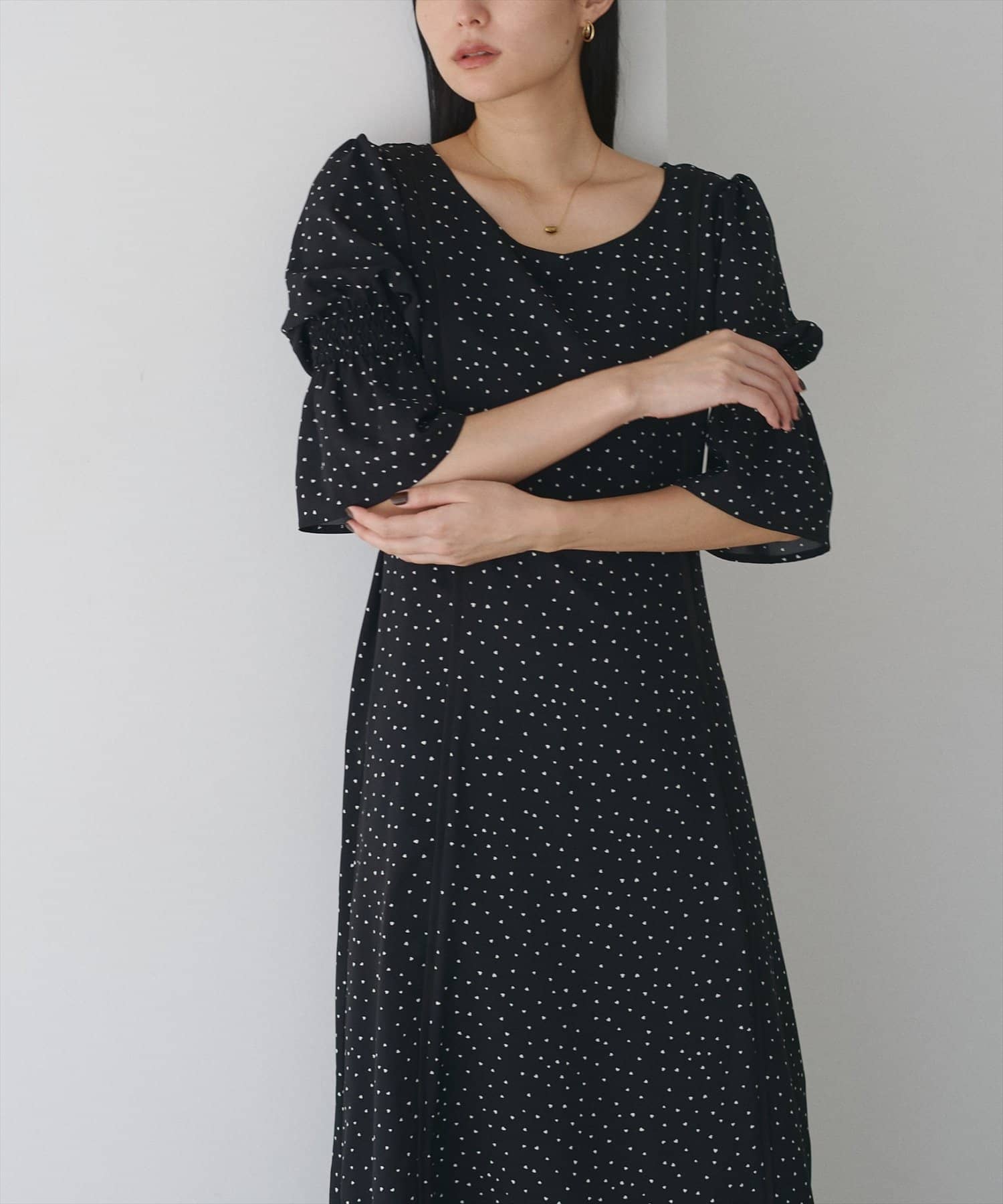 袖口をキュッと絞ったキャンディースリーブが、手元を華奢に見せ、女性らしさを引き立てます。