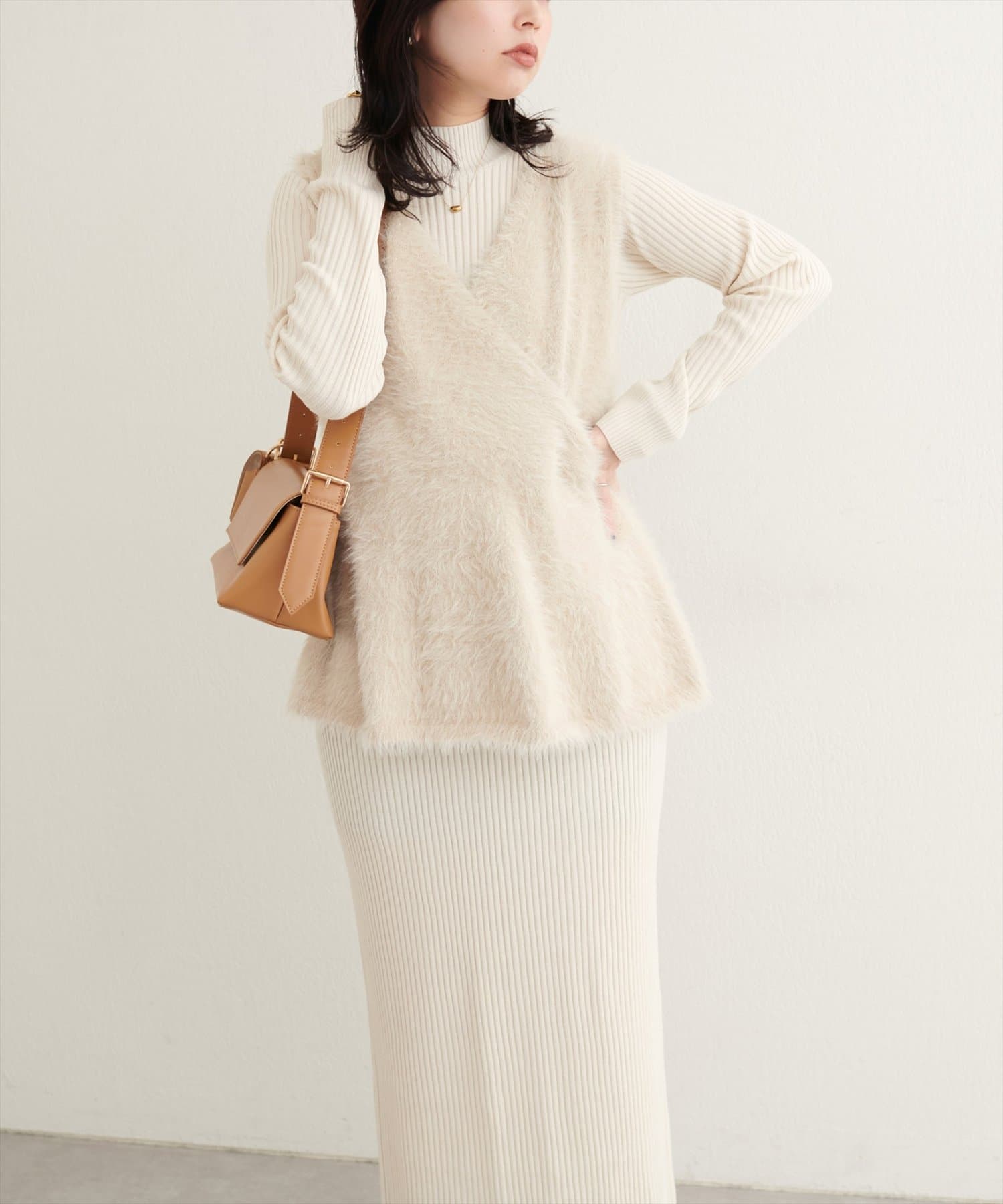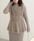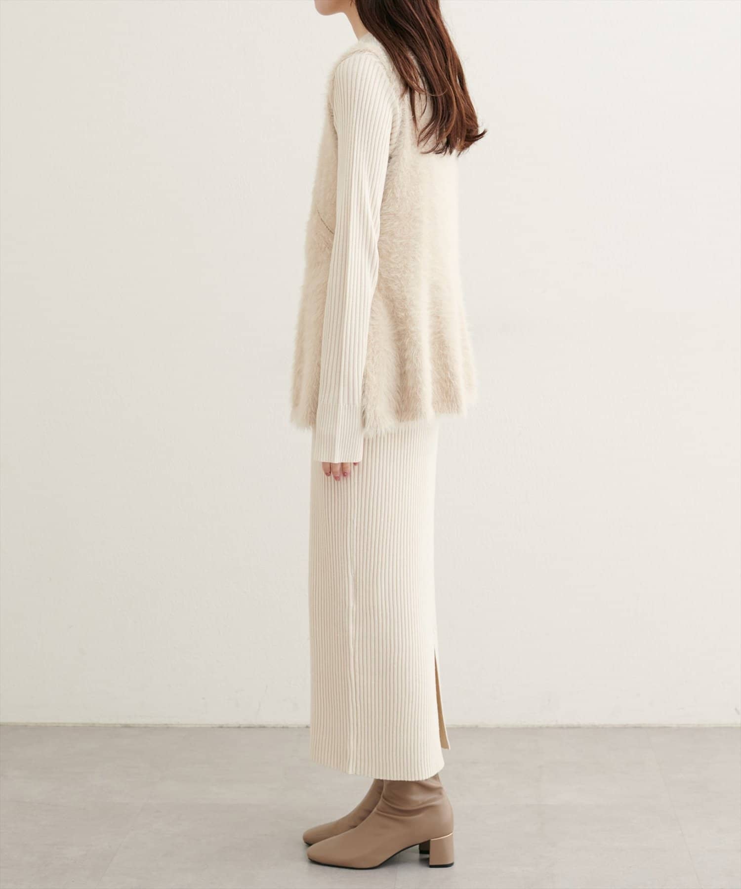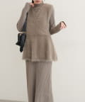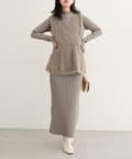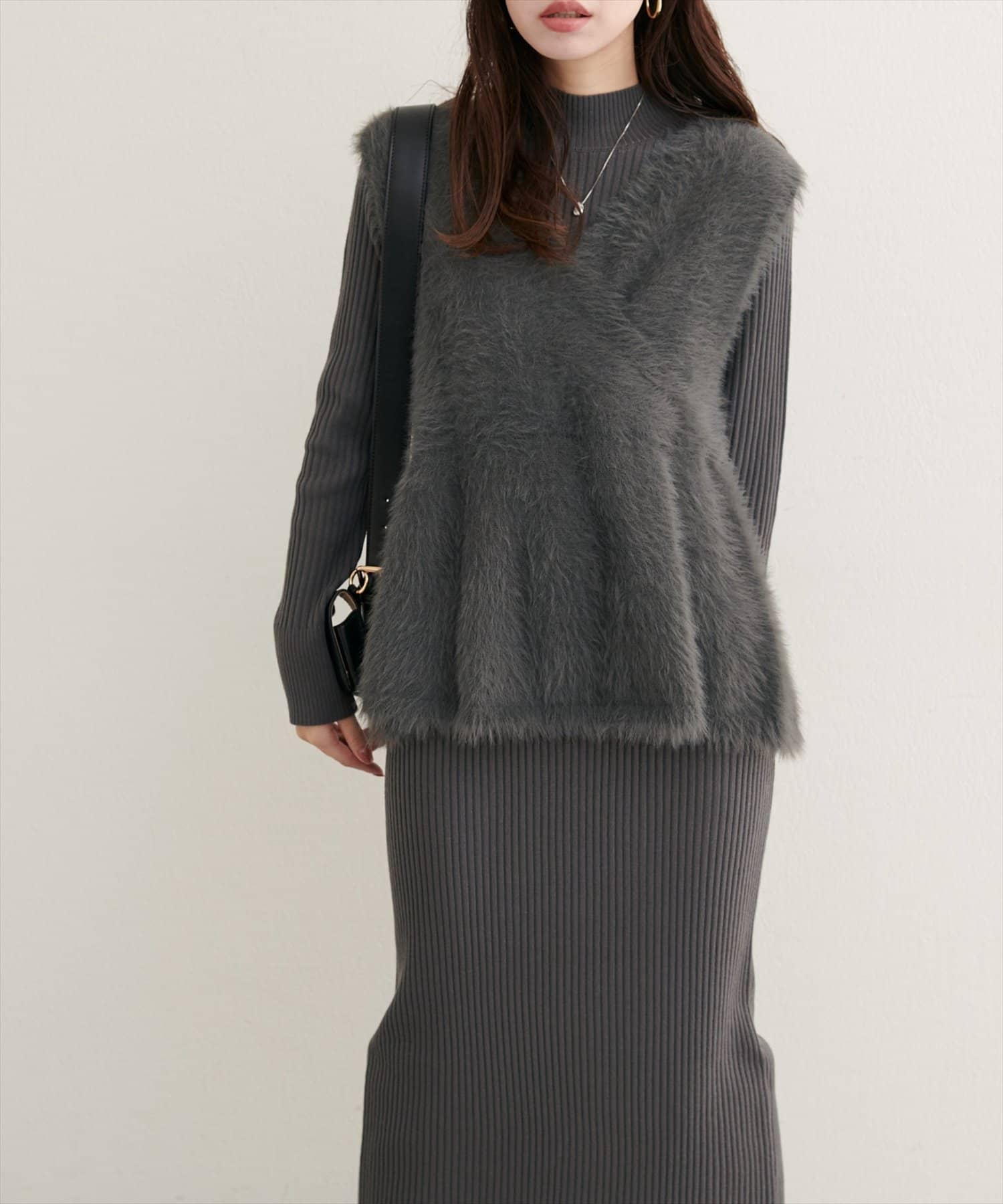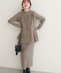 【SNSで人気】フェザーペプラムベスト+リブタイトワンピースSET