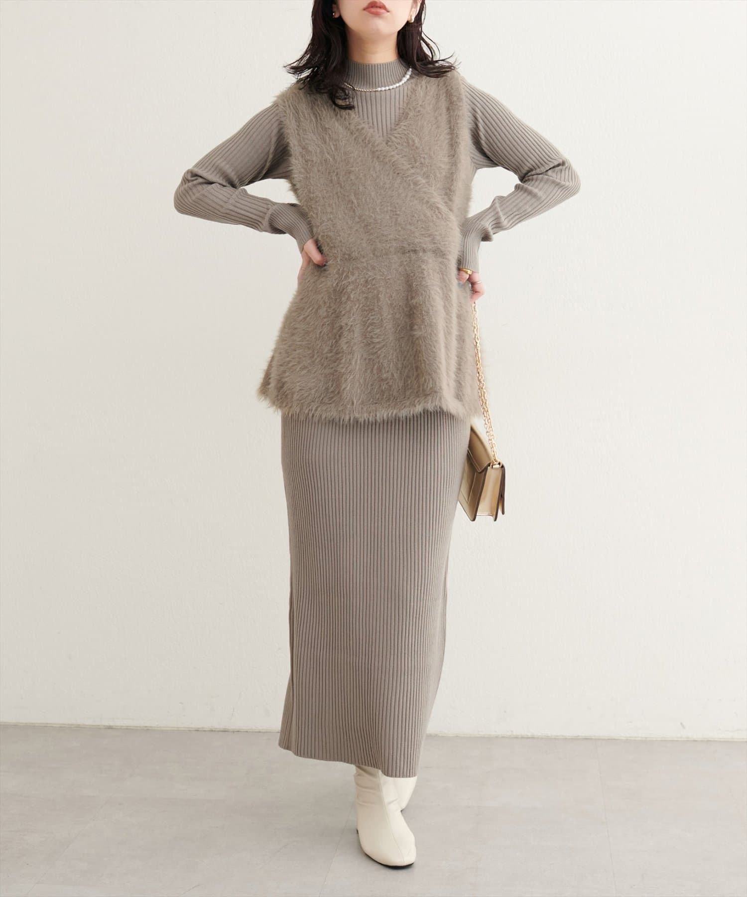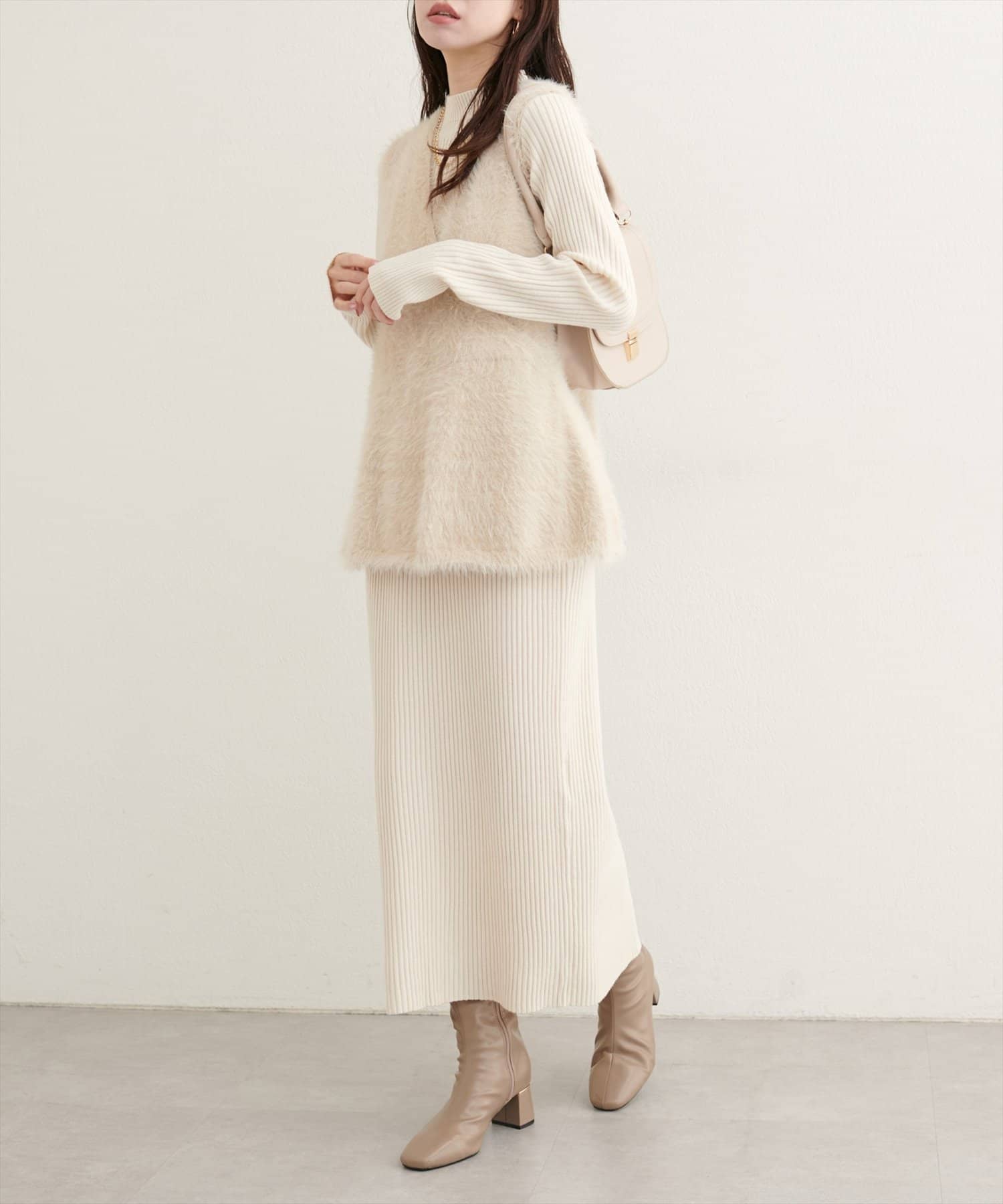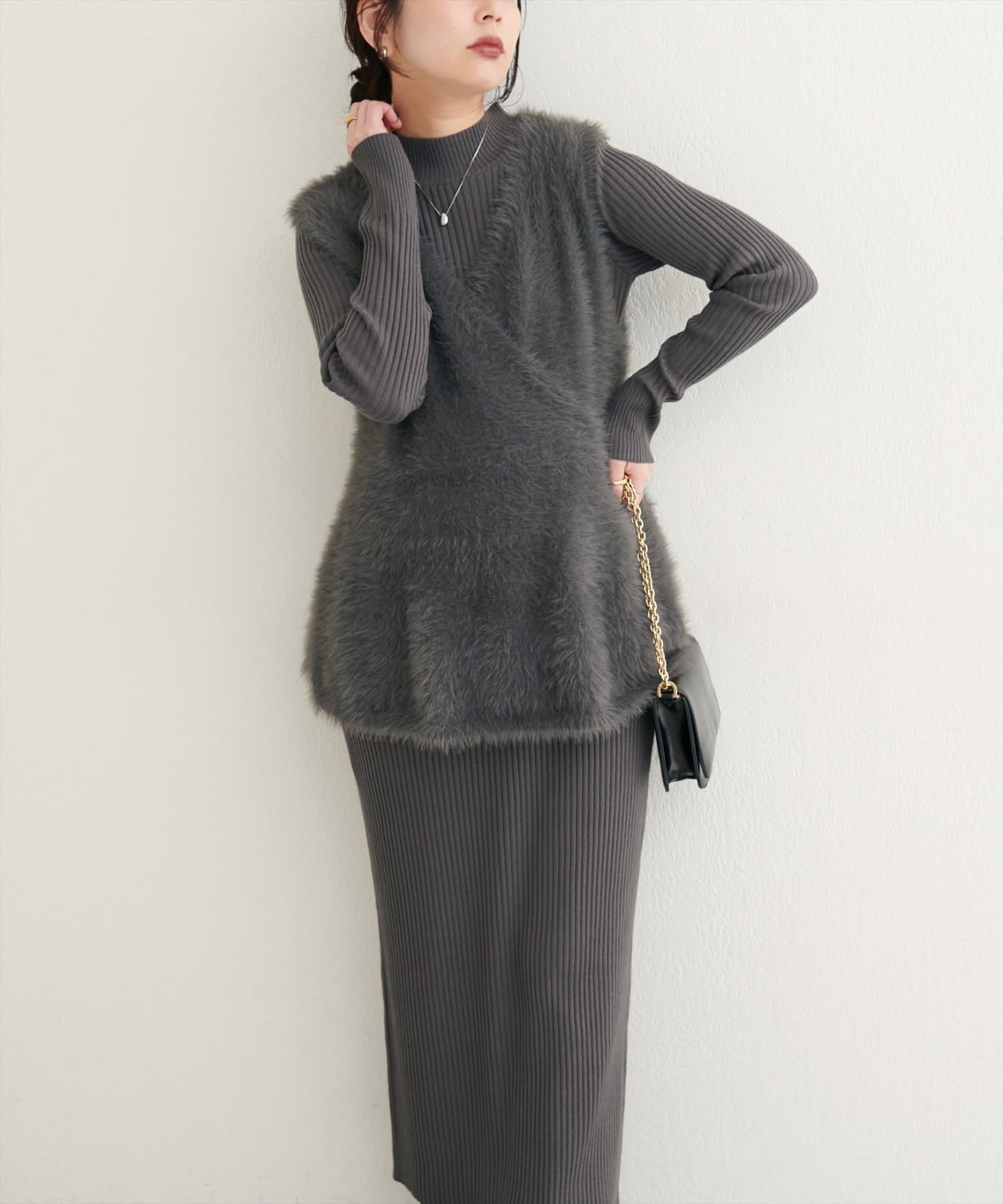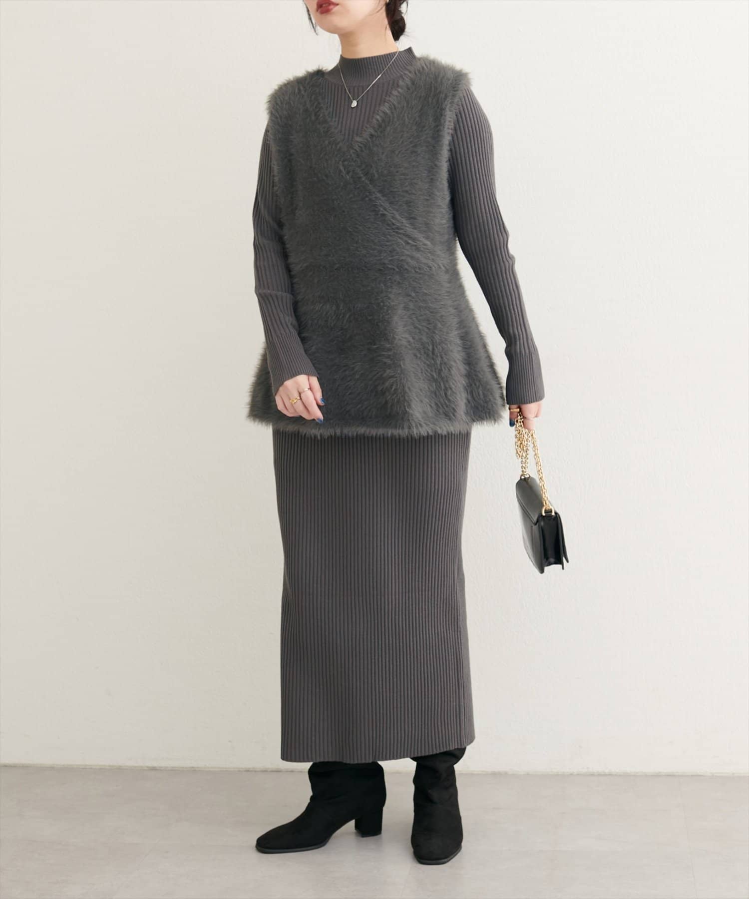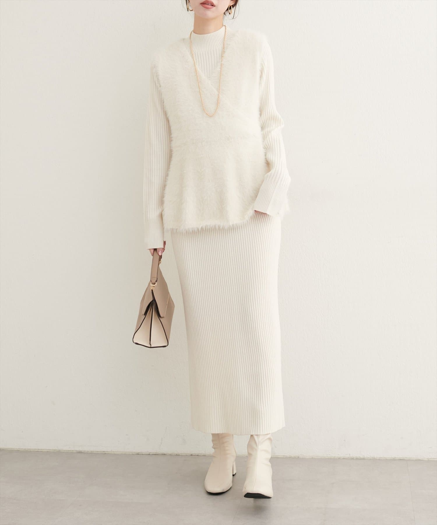 セットのワンピースはもちろん、シンプルなニットなどに合わせてもこなれ感のあるレイヤードスタイルが完成します。
