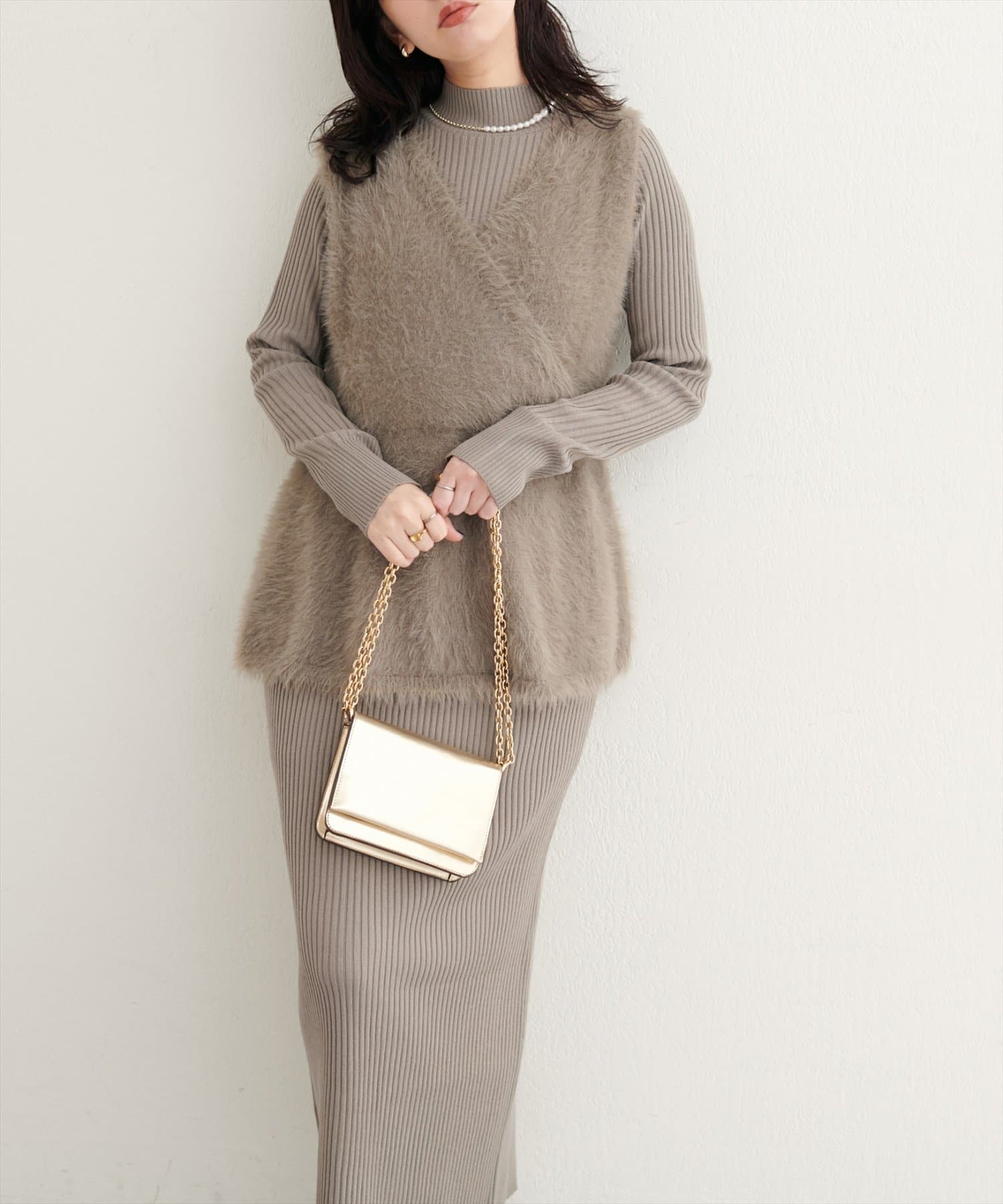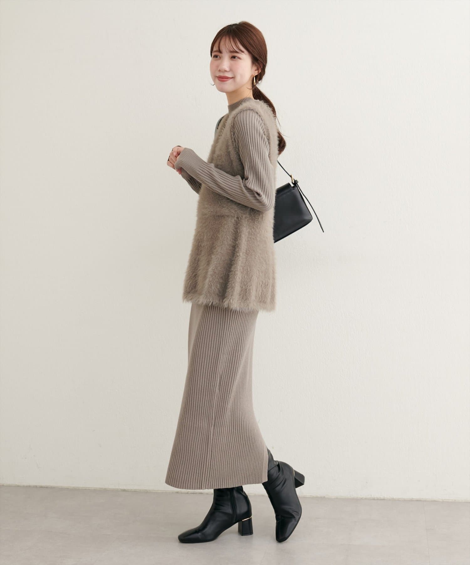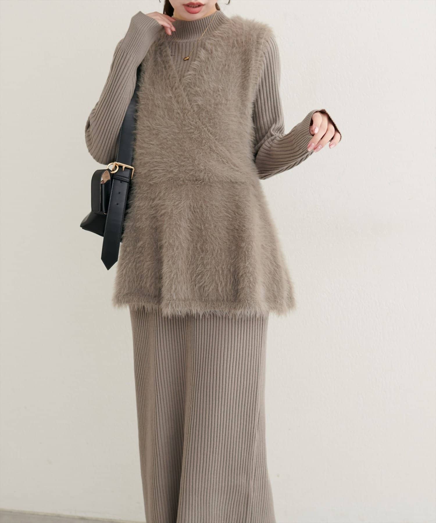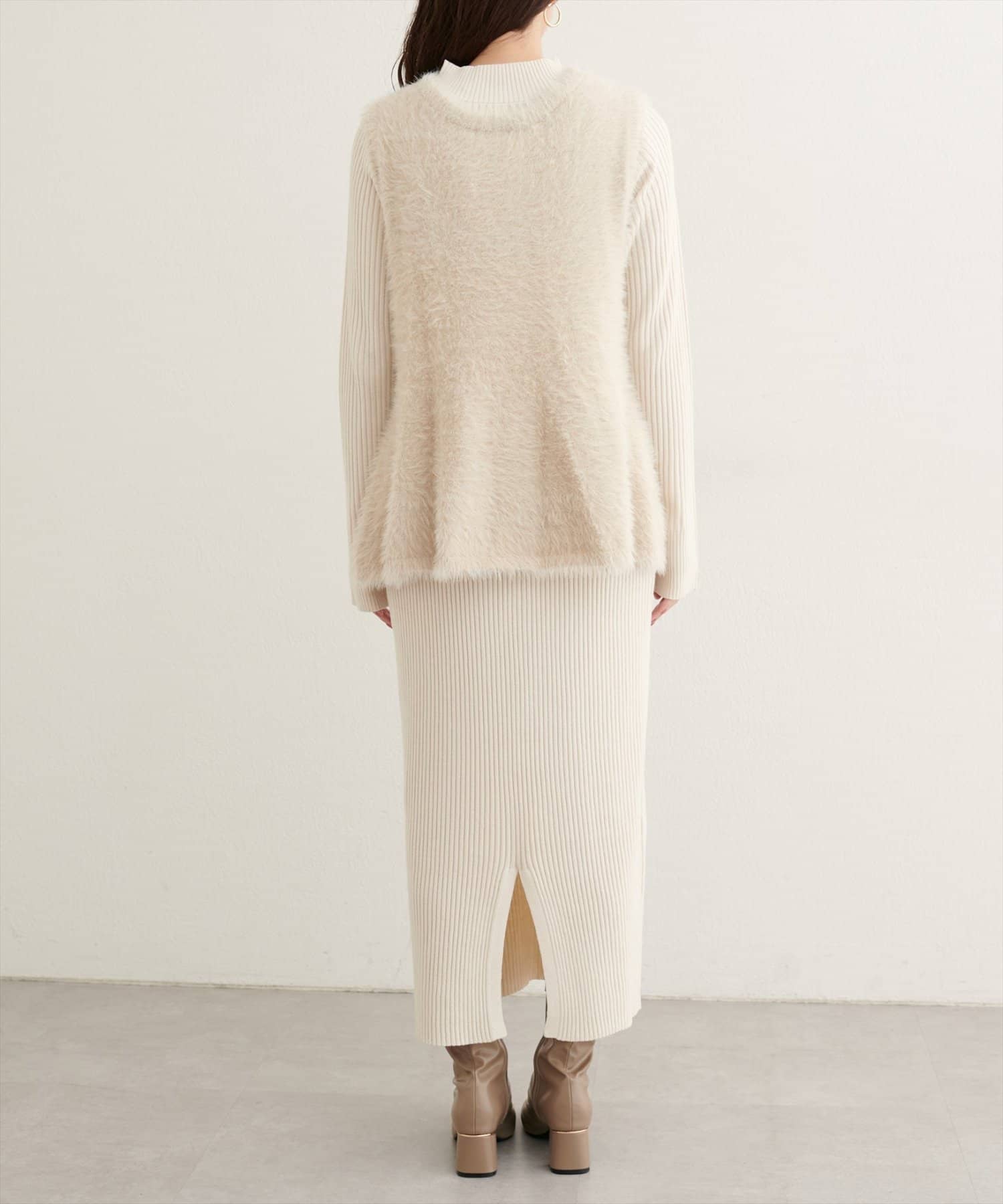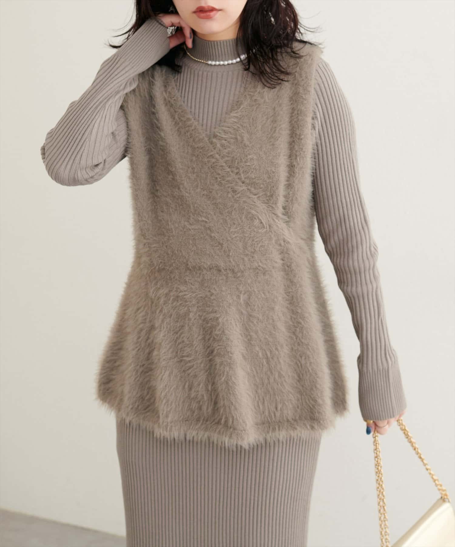 セットのワンピースはもちろん、シンプルなニットなどに合わせてもこなれ感のあるレイヤードスタイルが完成します。