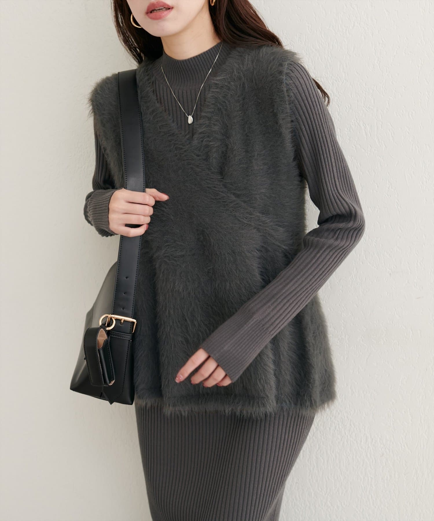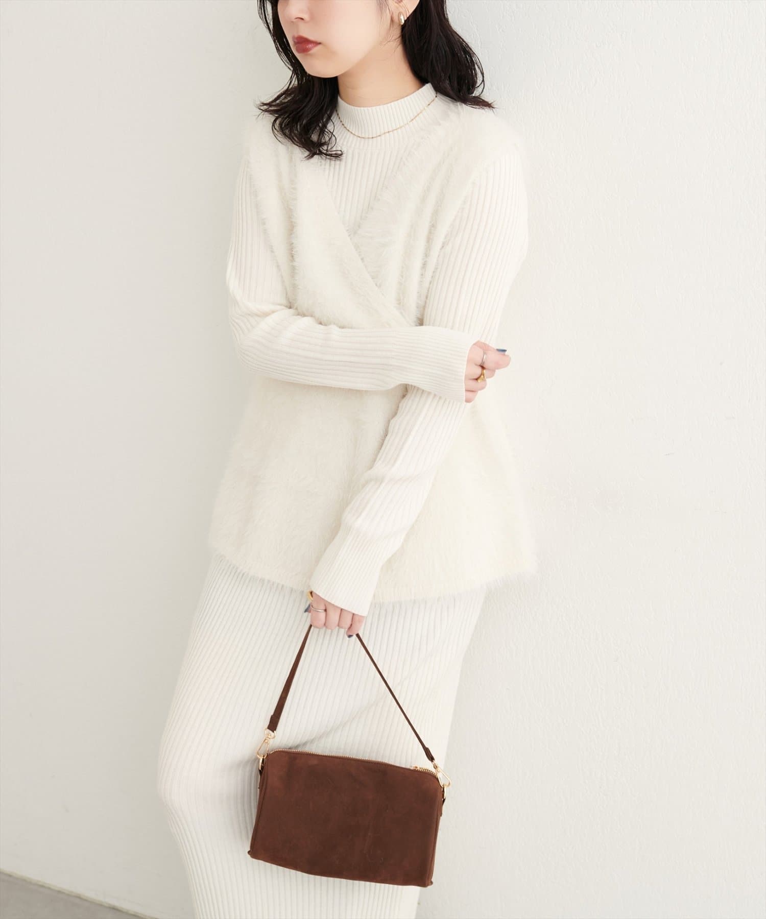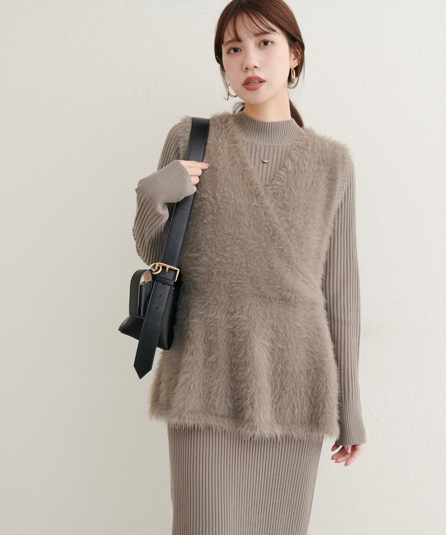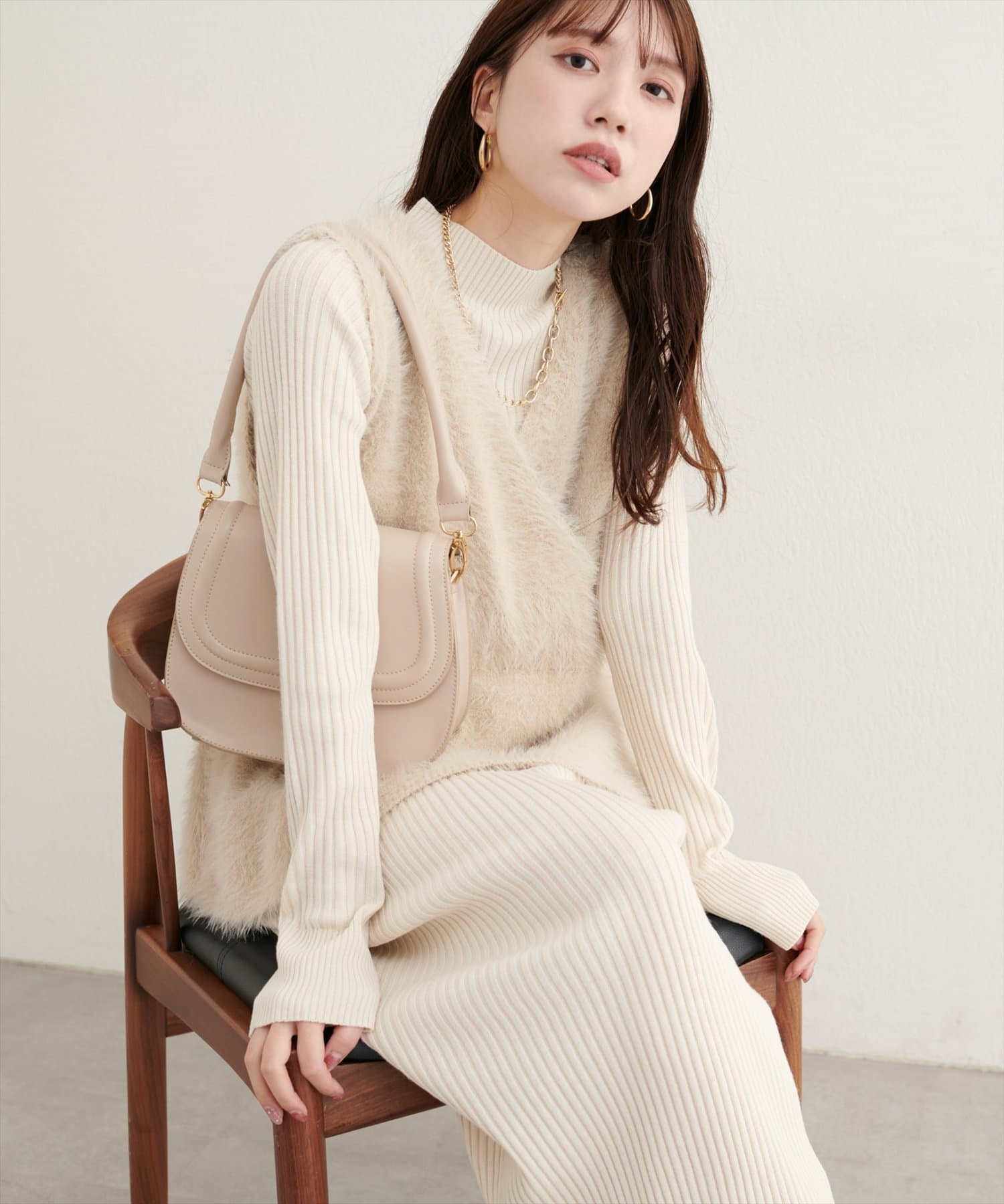 セットのワンピースはもちろん、シンプルなニットなどに合わせてもこなれ感のあるレイヤードスタイルが完成します。