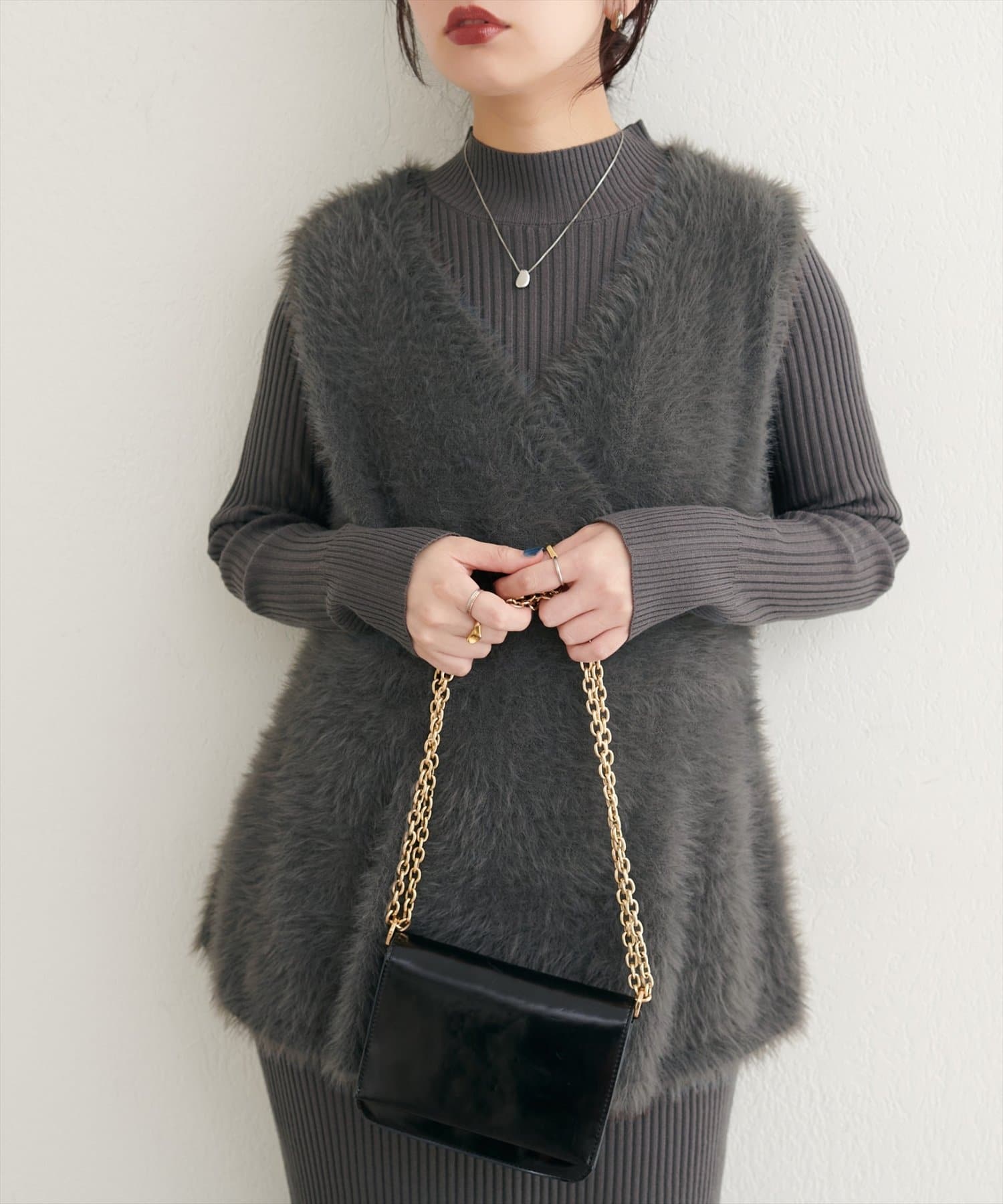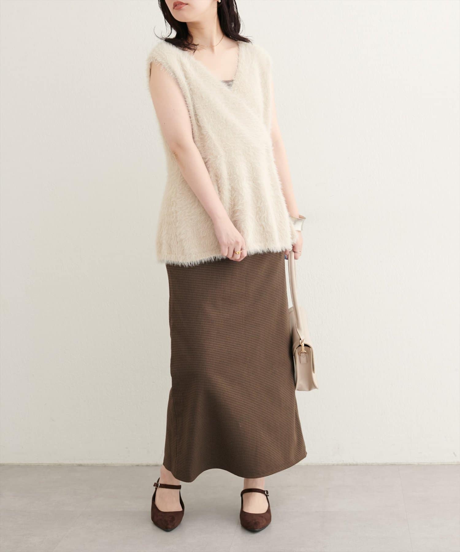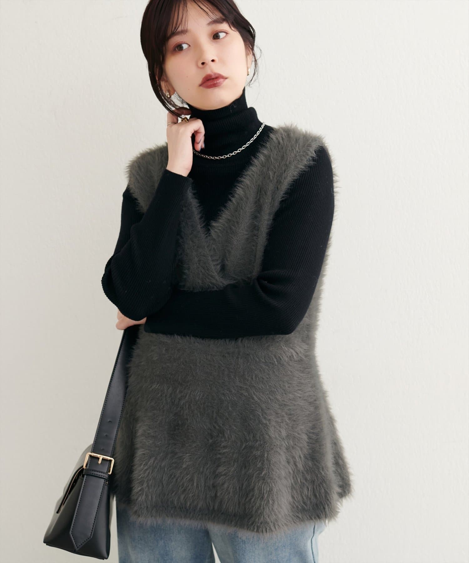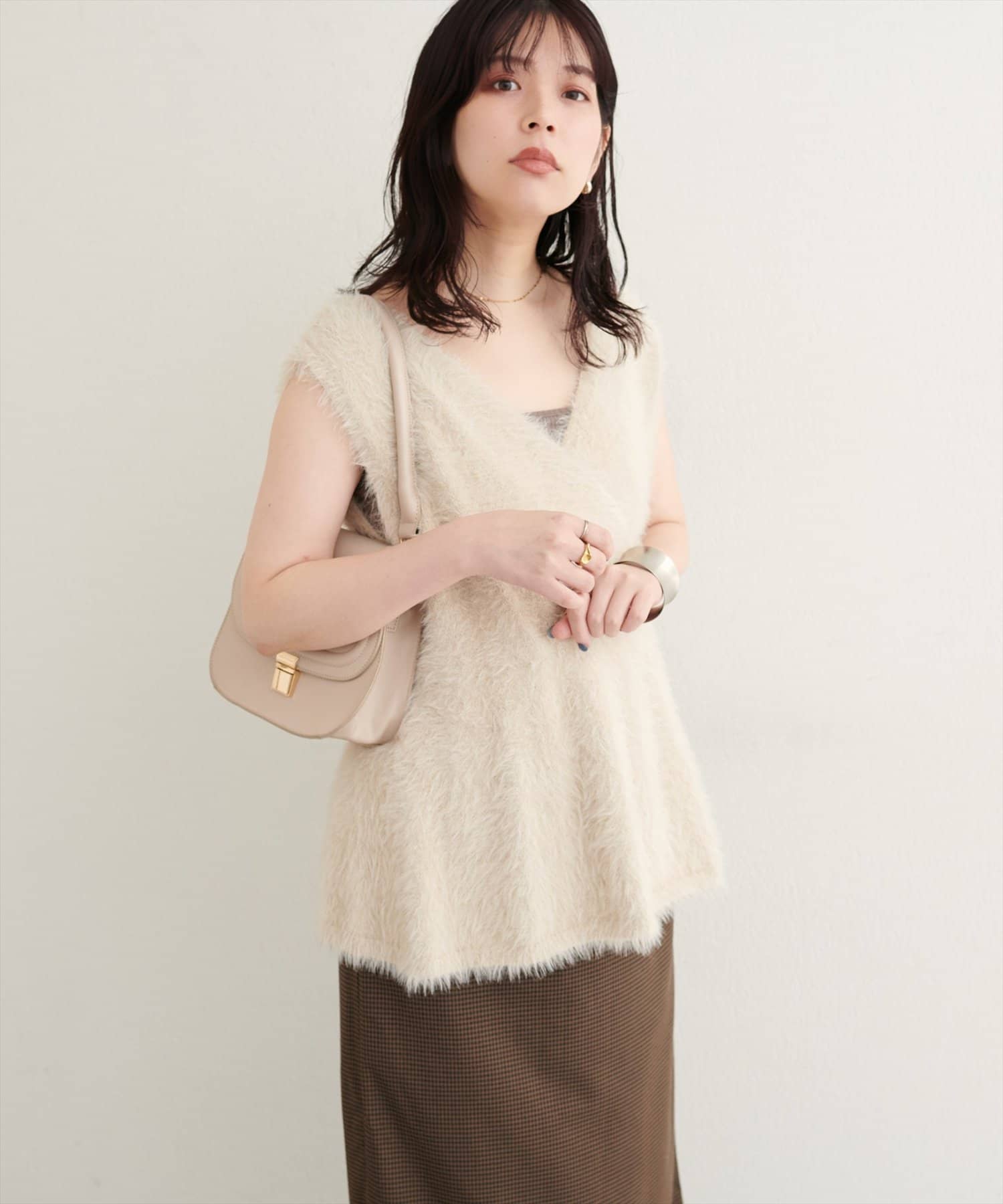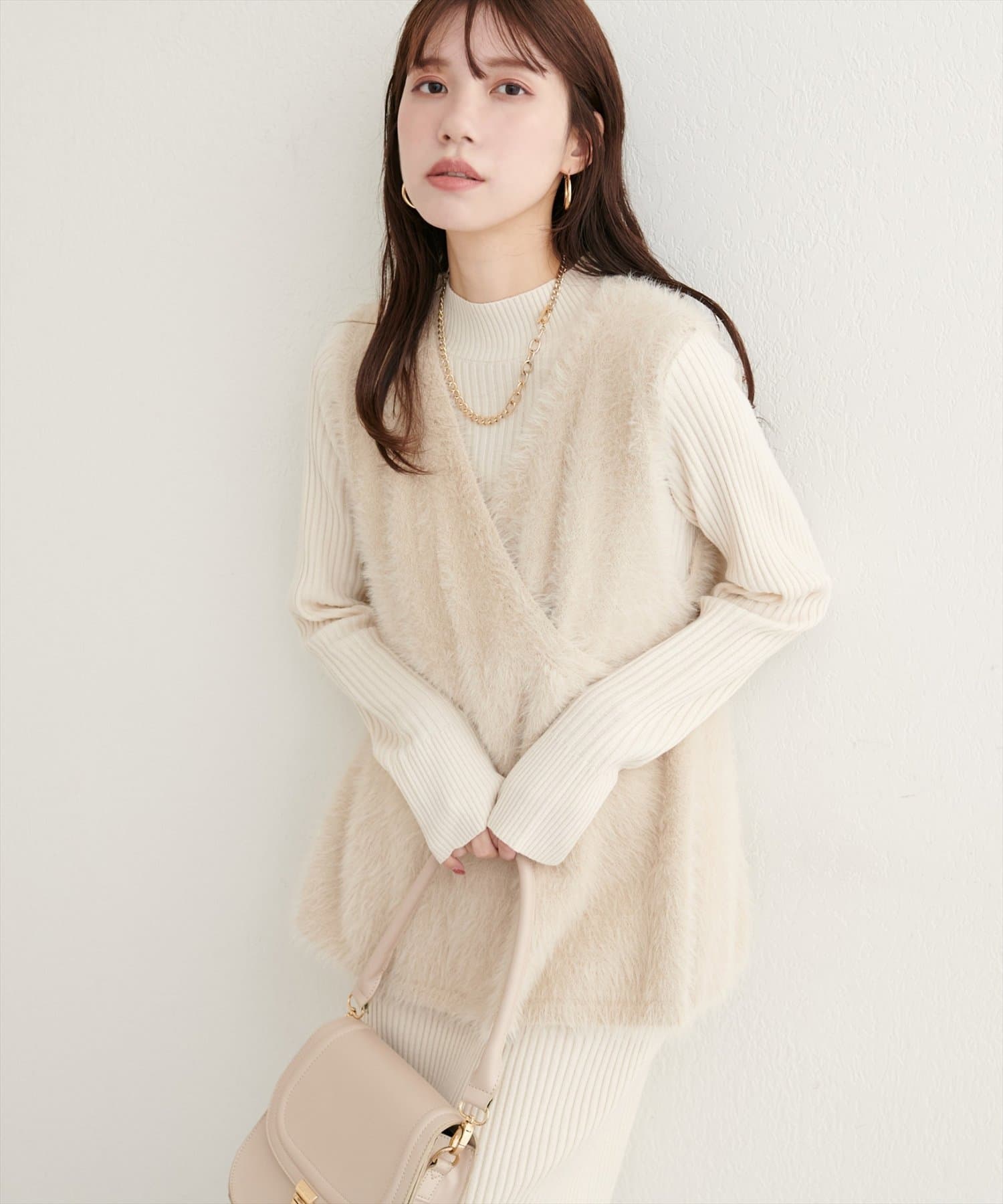 セットのワンピースはもちろん、シンプルなニットなどに合わせてもこなれ感のあるレイヤードスタイルが完成します。
