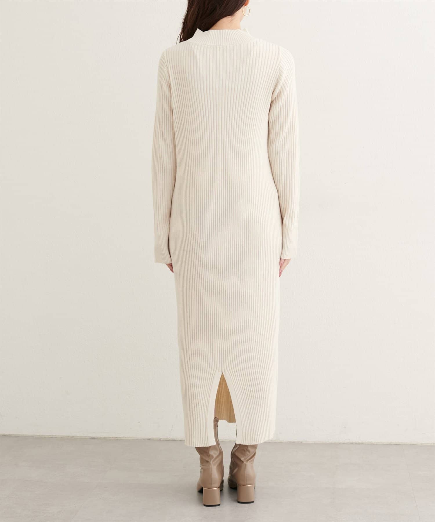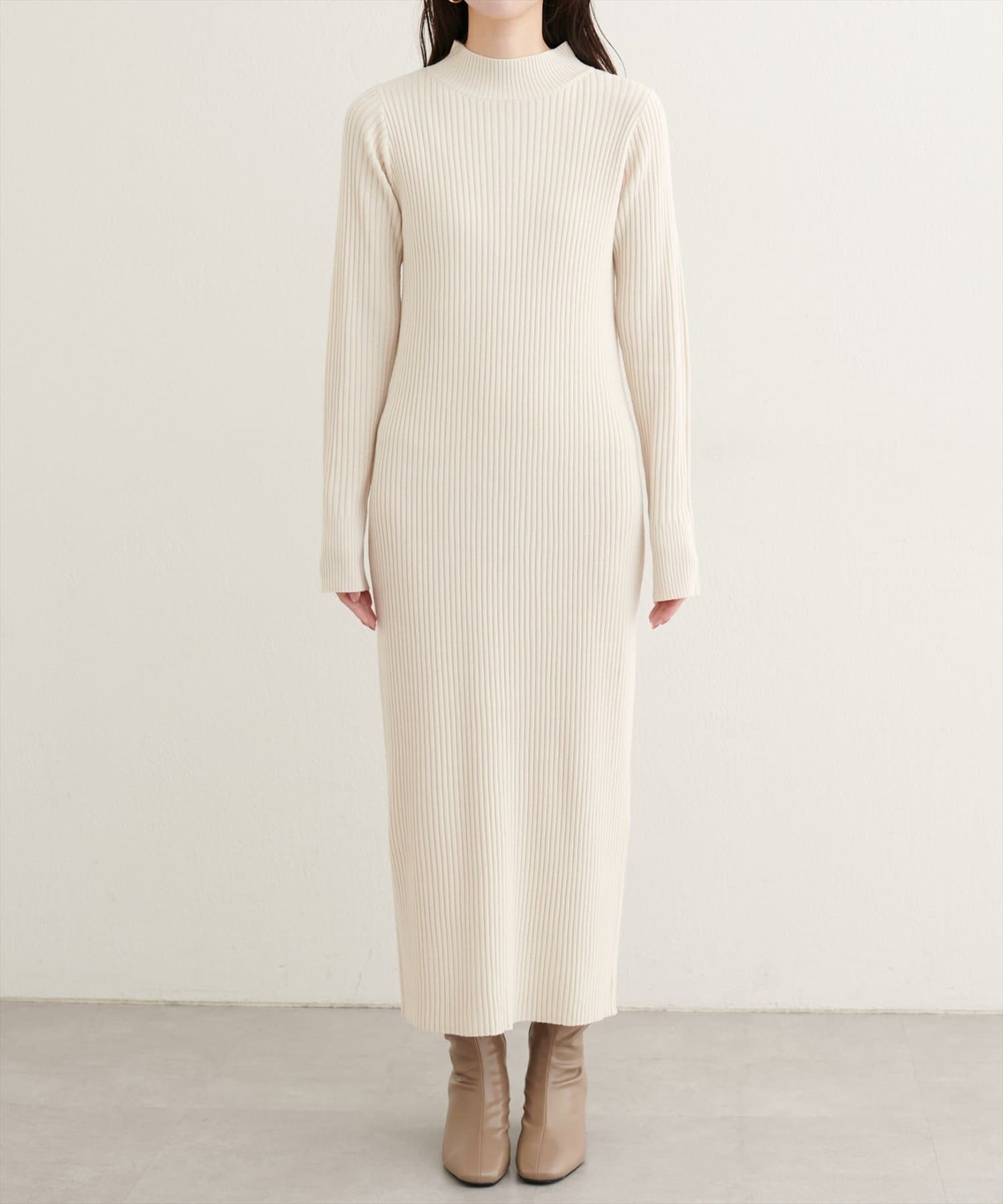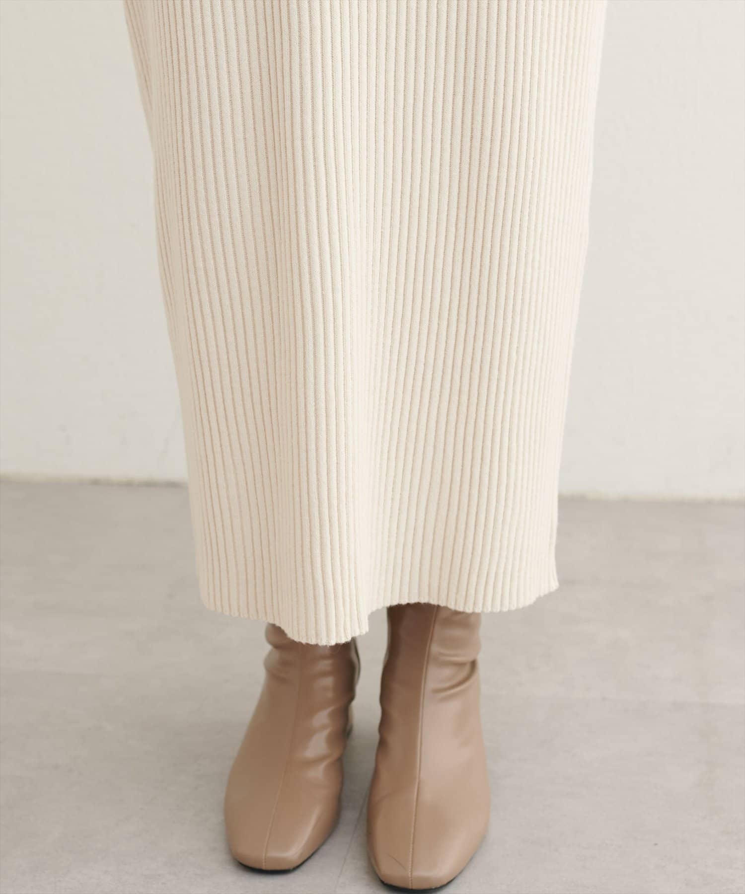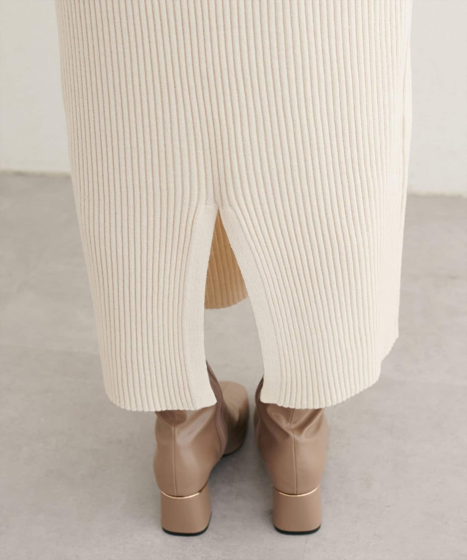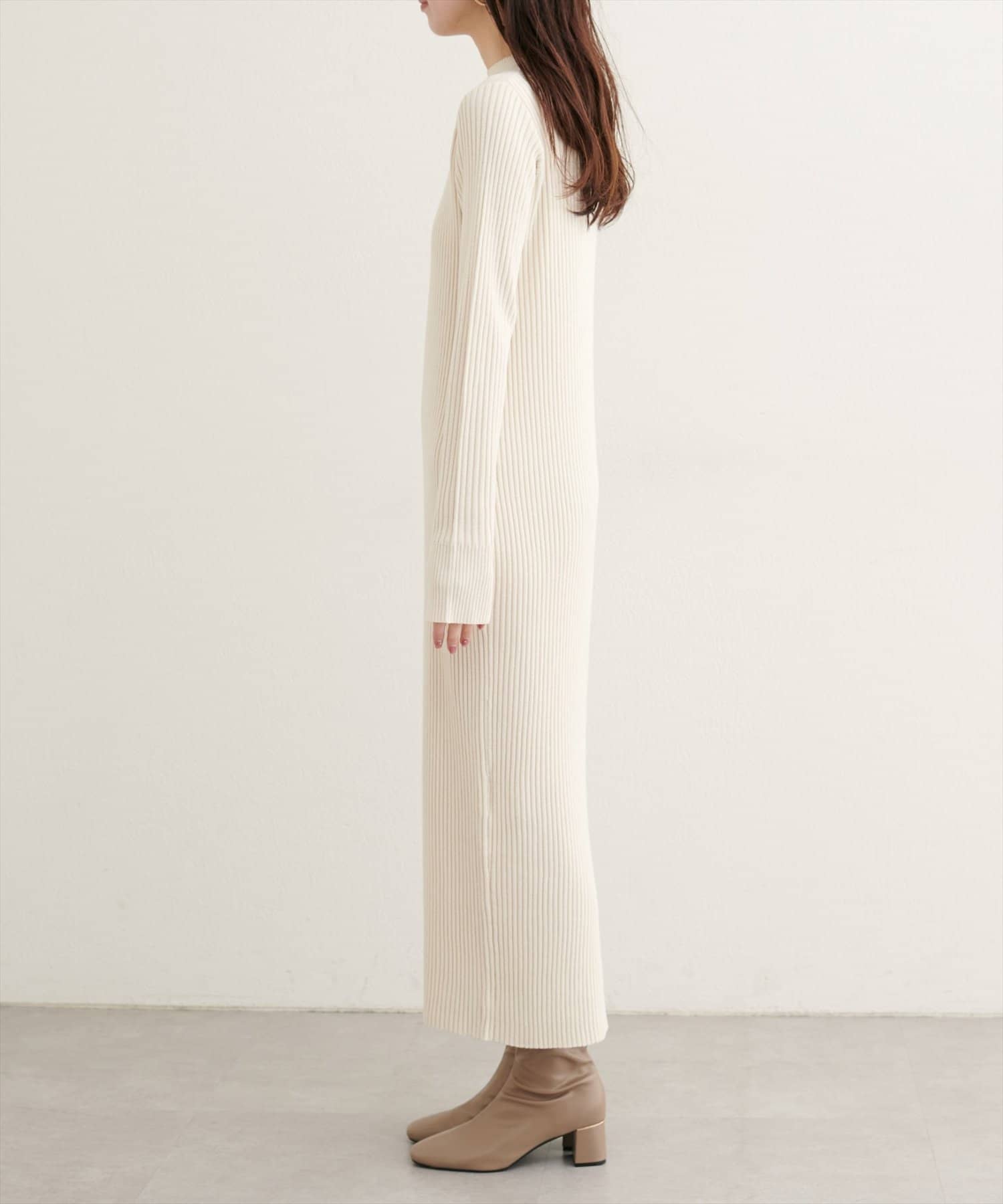 ボディラインに優しくフィットするタイトワンピースは、縦のリブが、スタイルをより美しく見せてくれます。