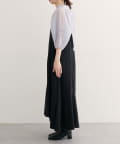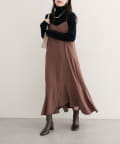 左右非対称な裾のデザインが、コーディネートに動きと個性をプラス。