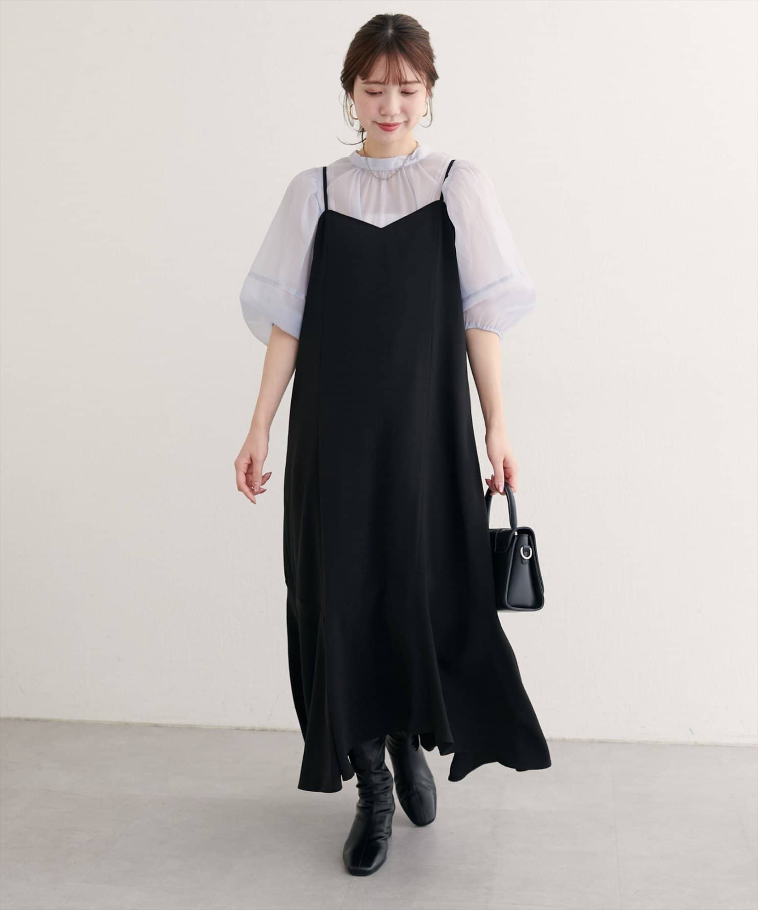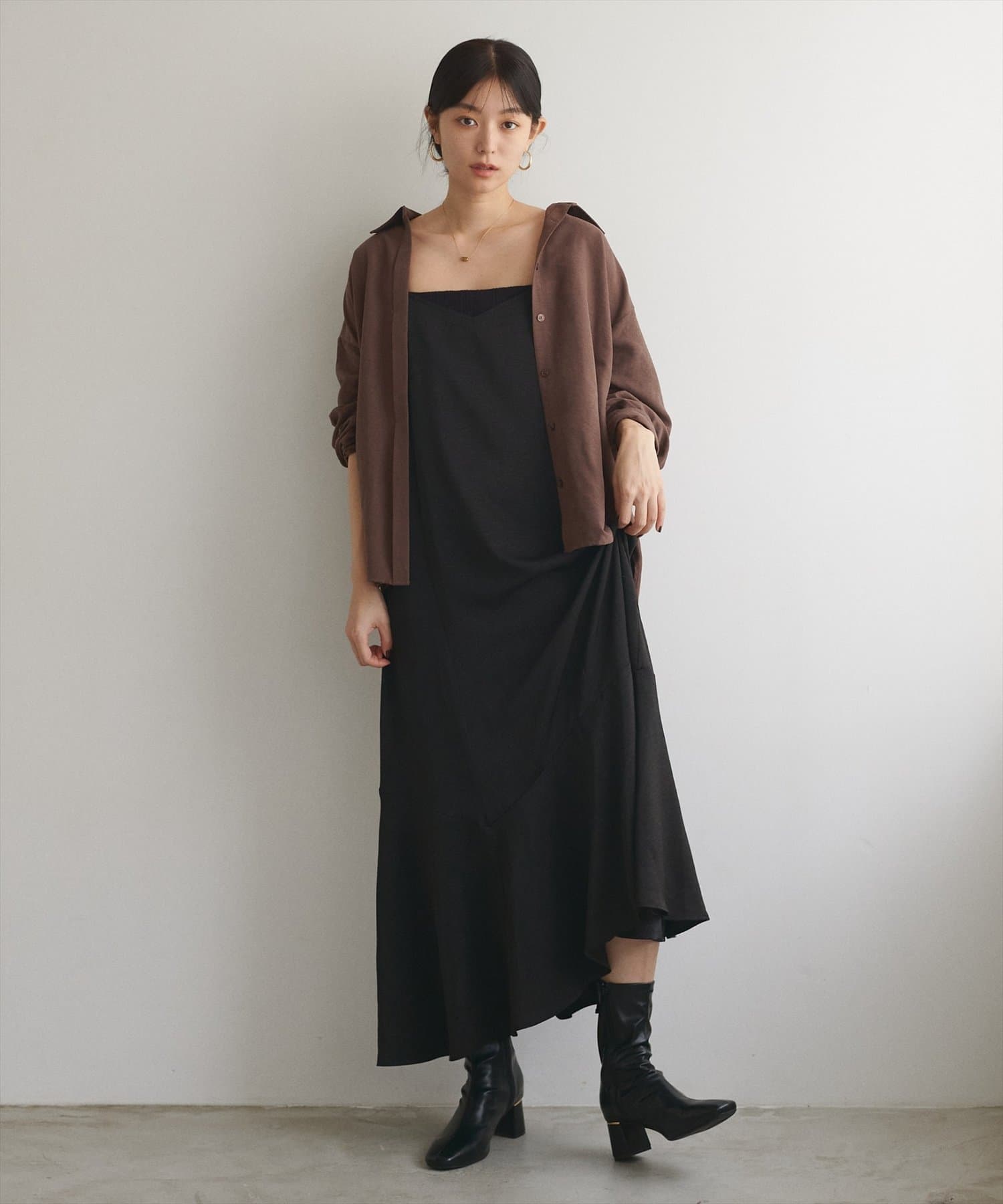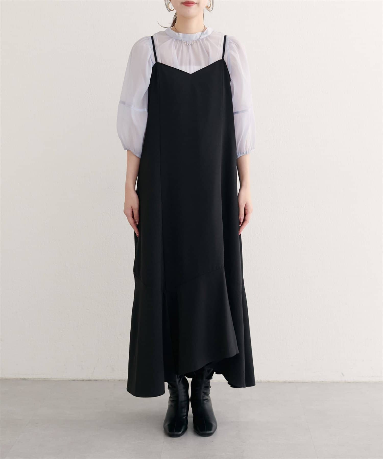 一点投入で、こなれ感。大人の余裕を演出するアシメヘムキャミワンピース。