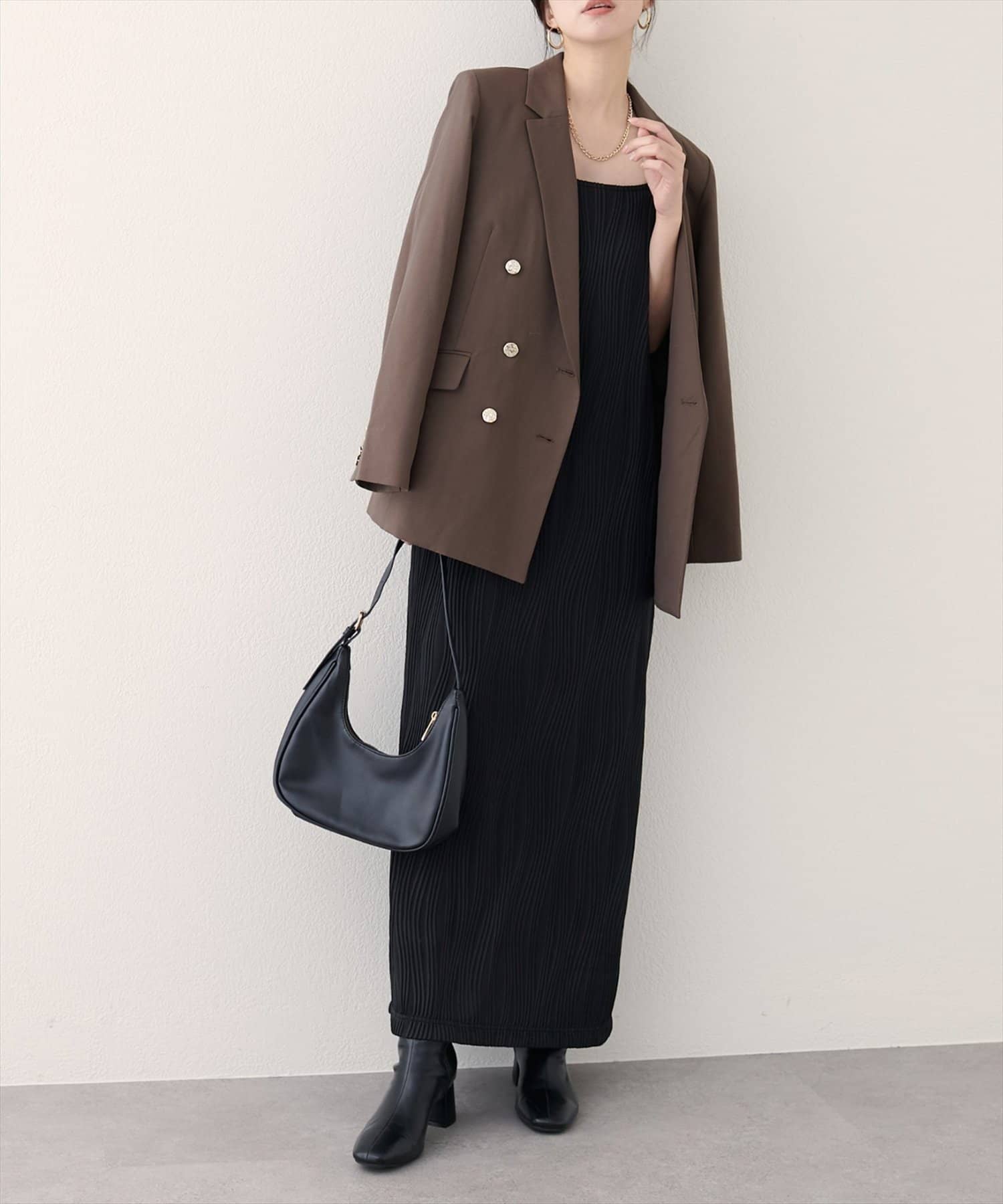 ワンピース一枚で着るのはもちろん、ジャケットやカーディガンを羽織れば、オフィススタイルにも対応できます。