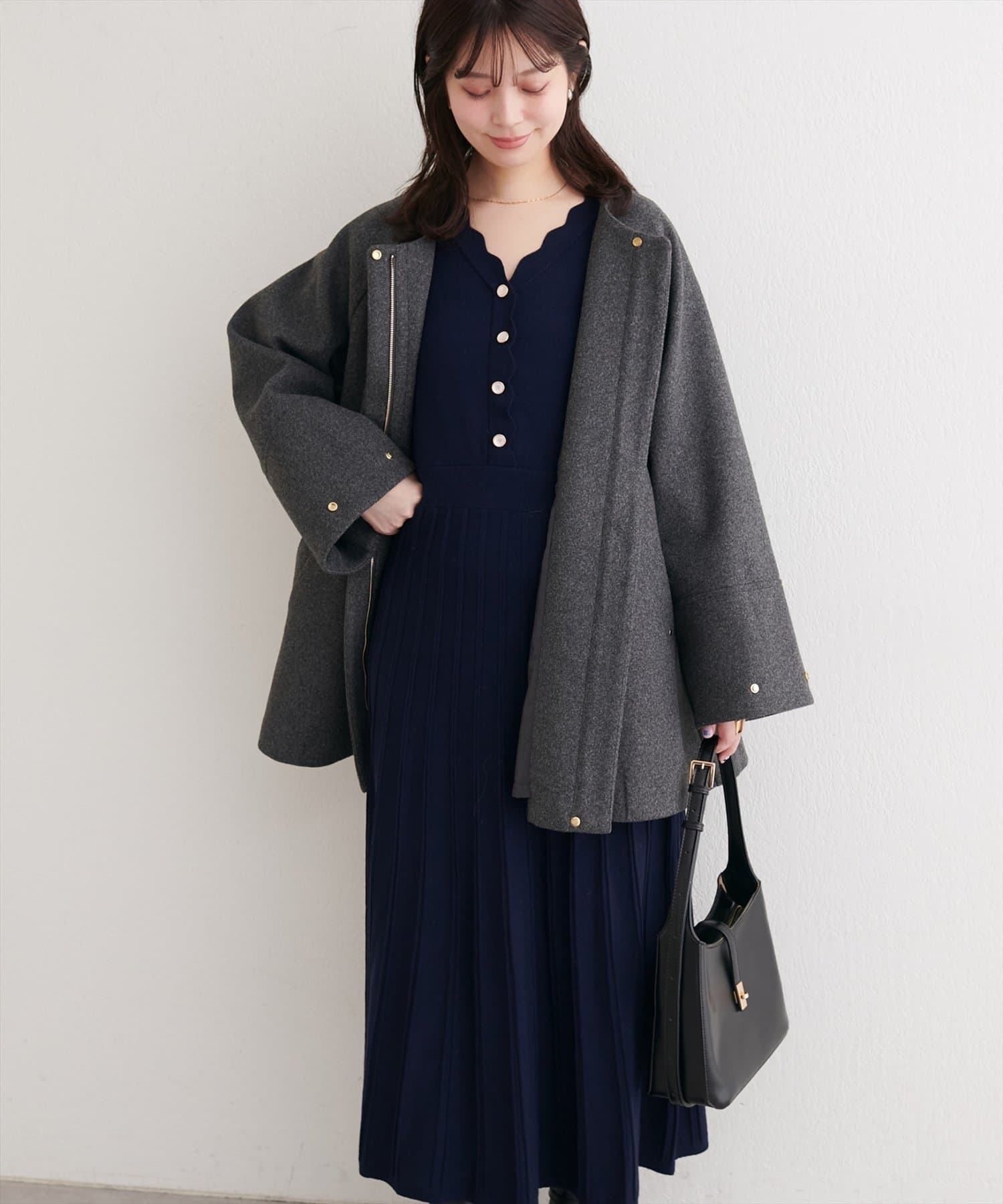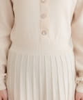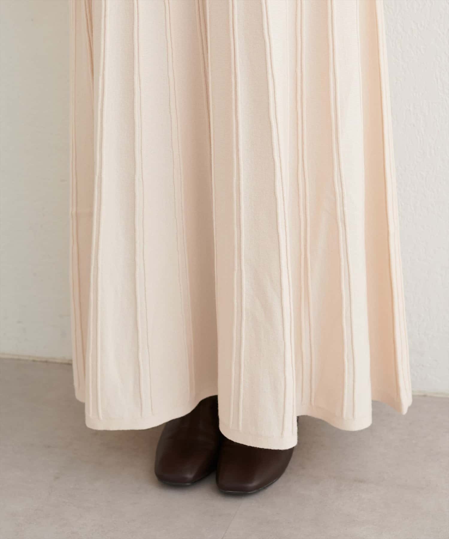 ウエストから広がるプリーツスカートは、歩くたびに優雅な揺れ感を生み出し、エレガントな雰囲気を醸し出します。