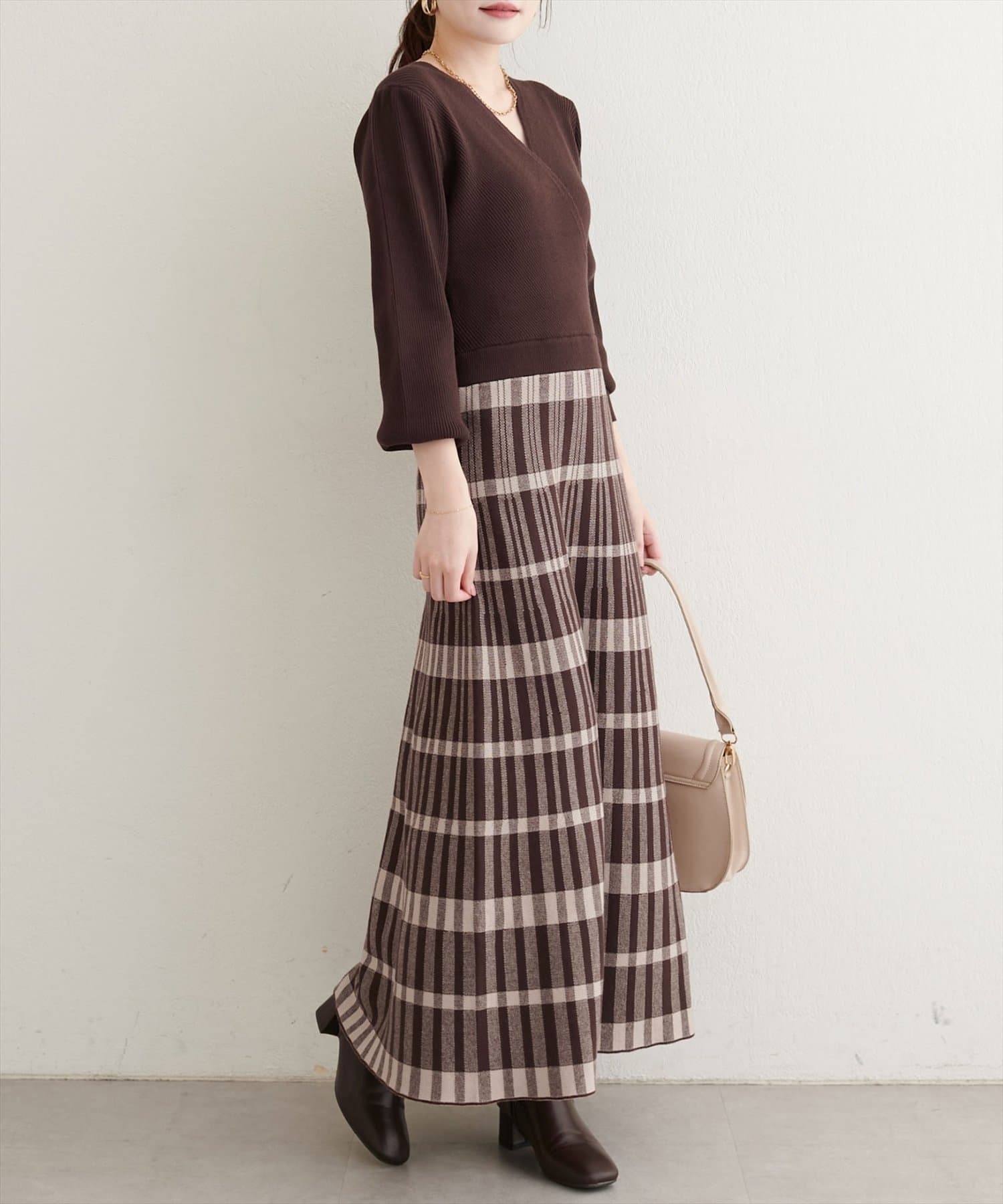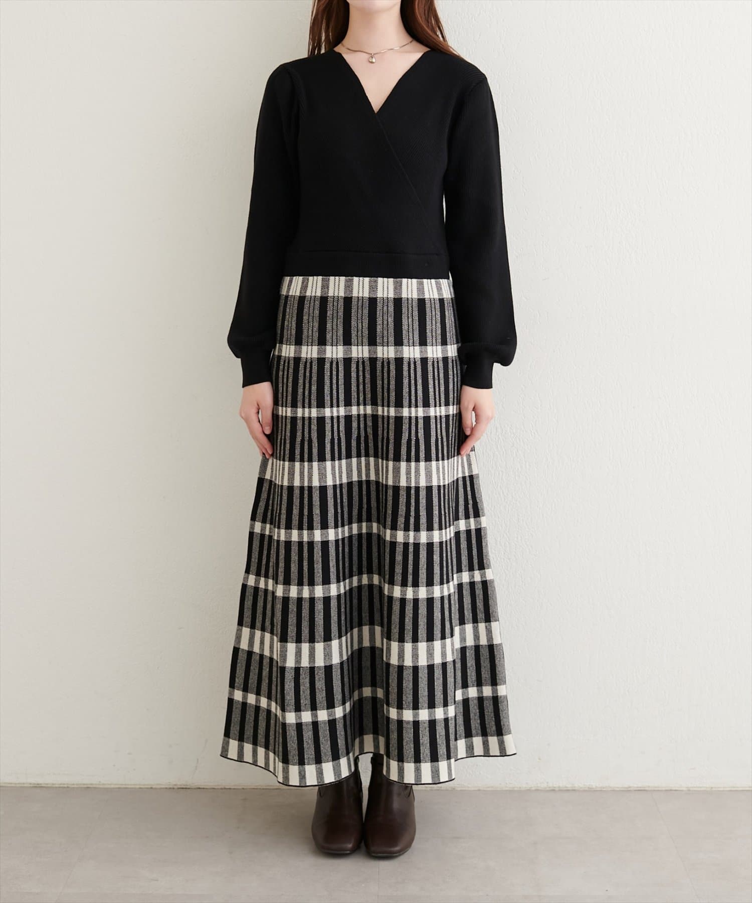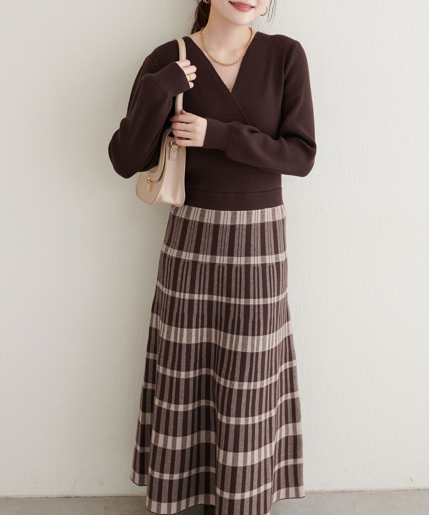 一目で心惹かれる、WEB限定のカシュクールチェックニットワンピース。