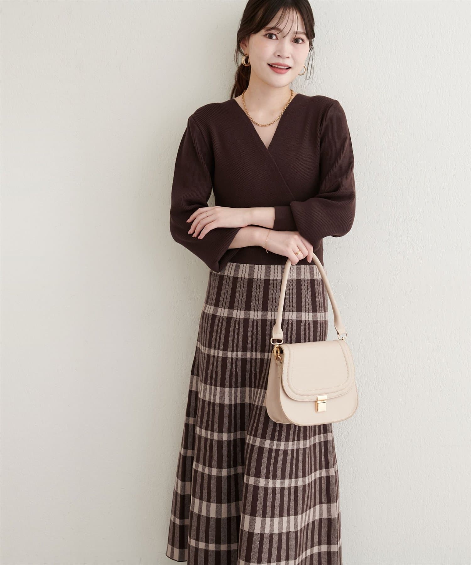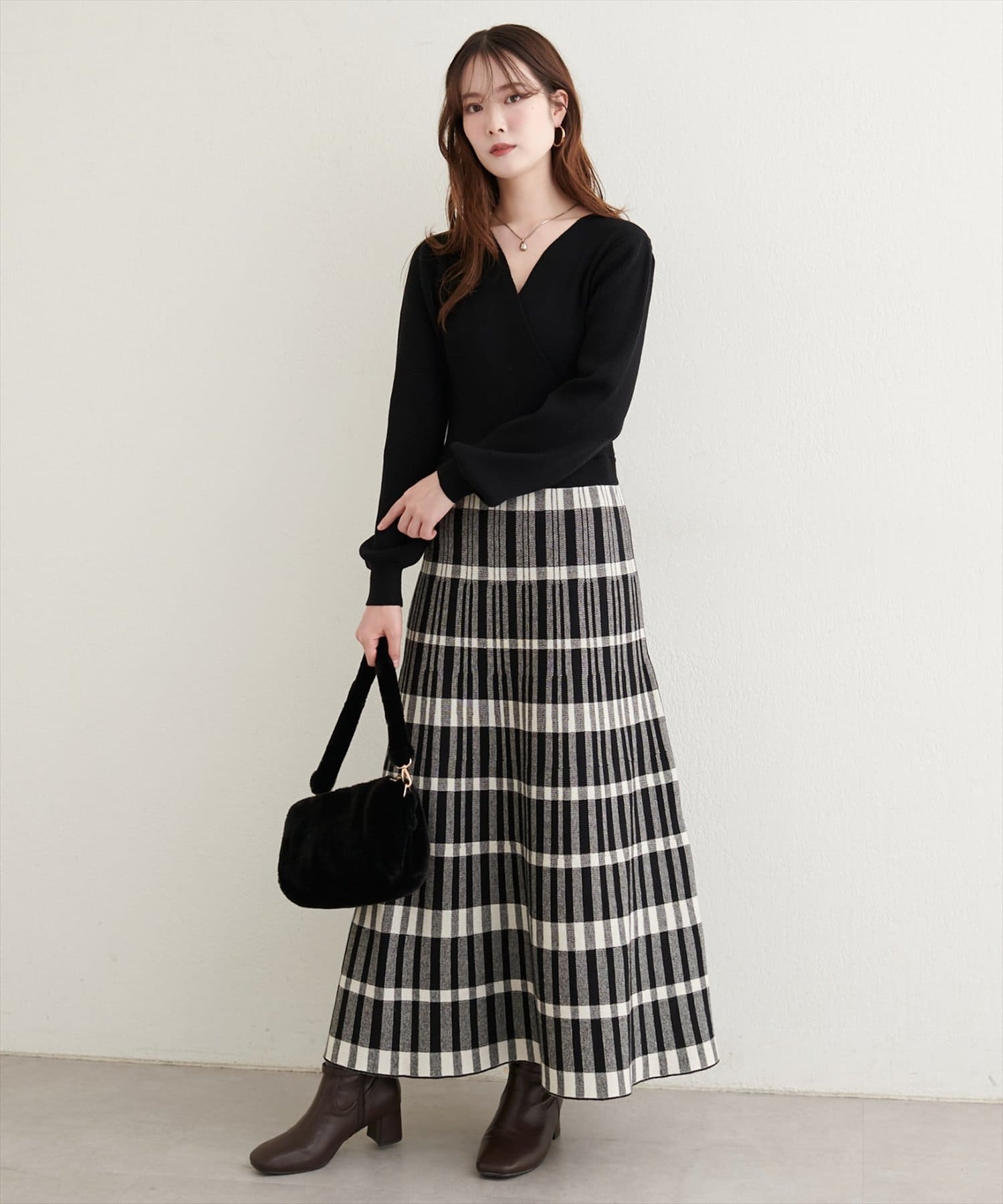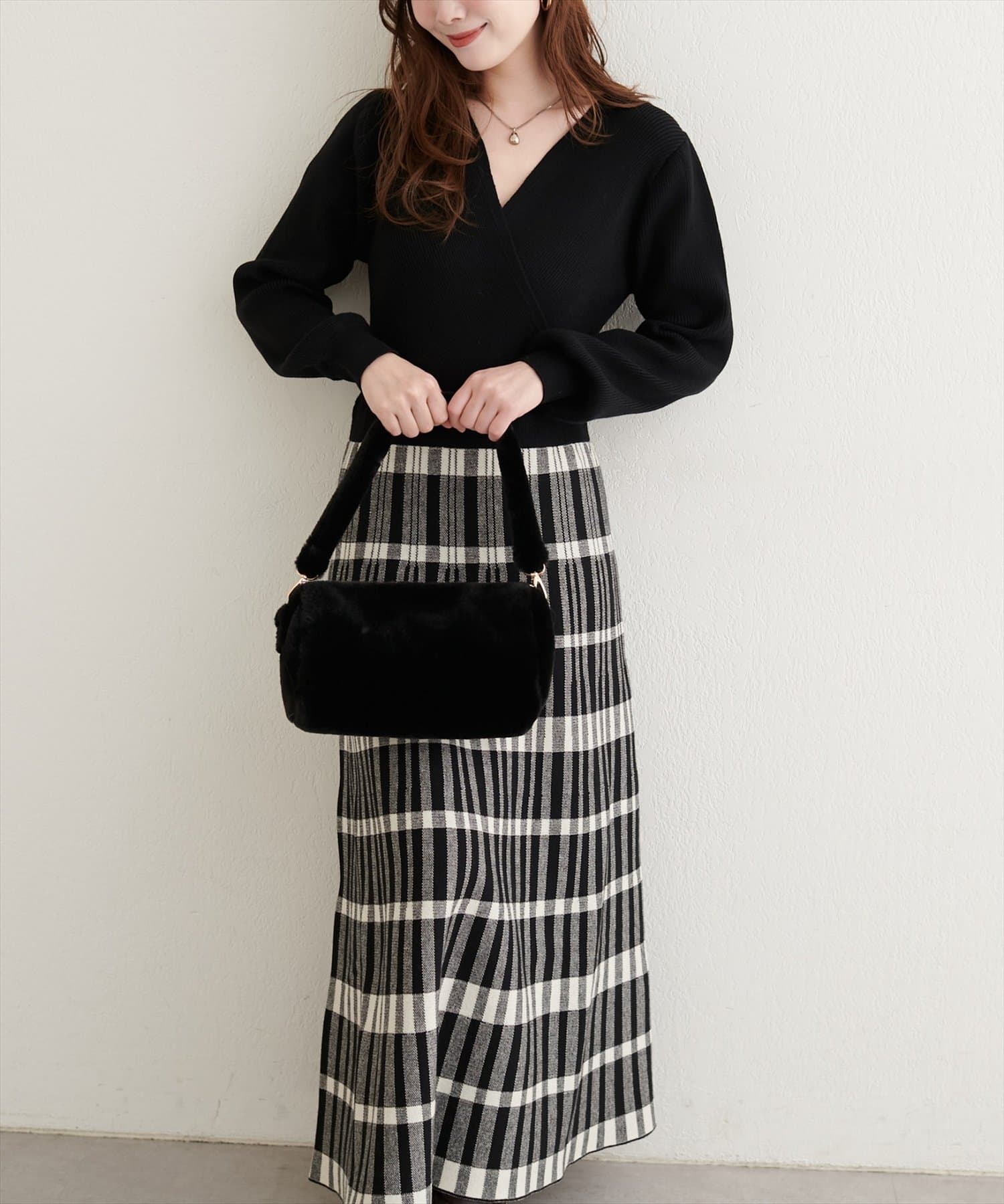 一目で心惹かれる、WEB限定のカシュクールチェックニットワンピース。