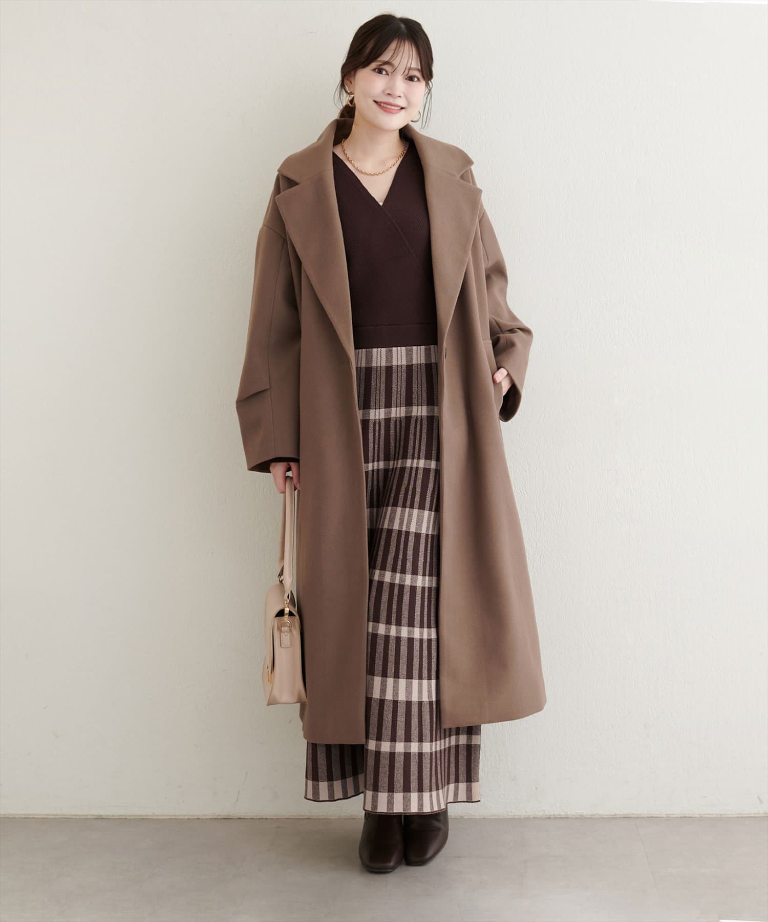 ベルトでウエストマークをすれば、よりメリハリのあるシルエットになり、スタイルアップ効果も期待できます。