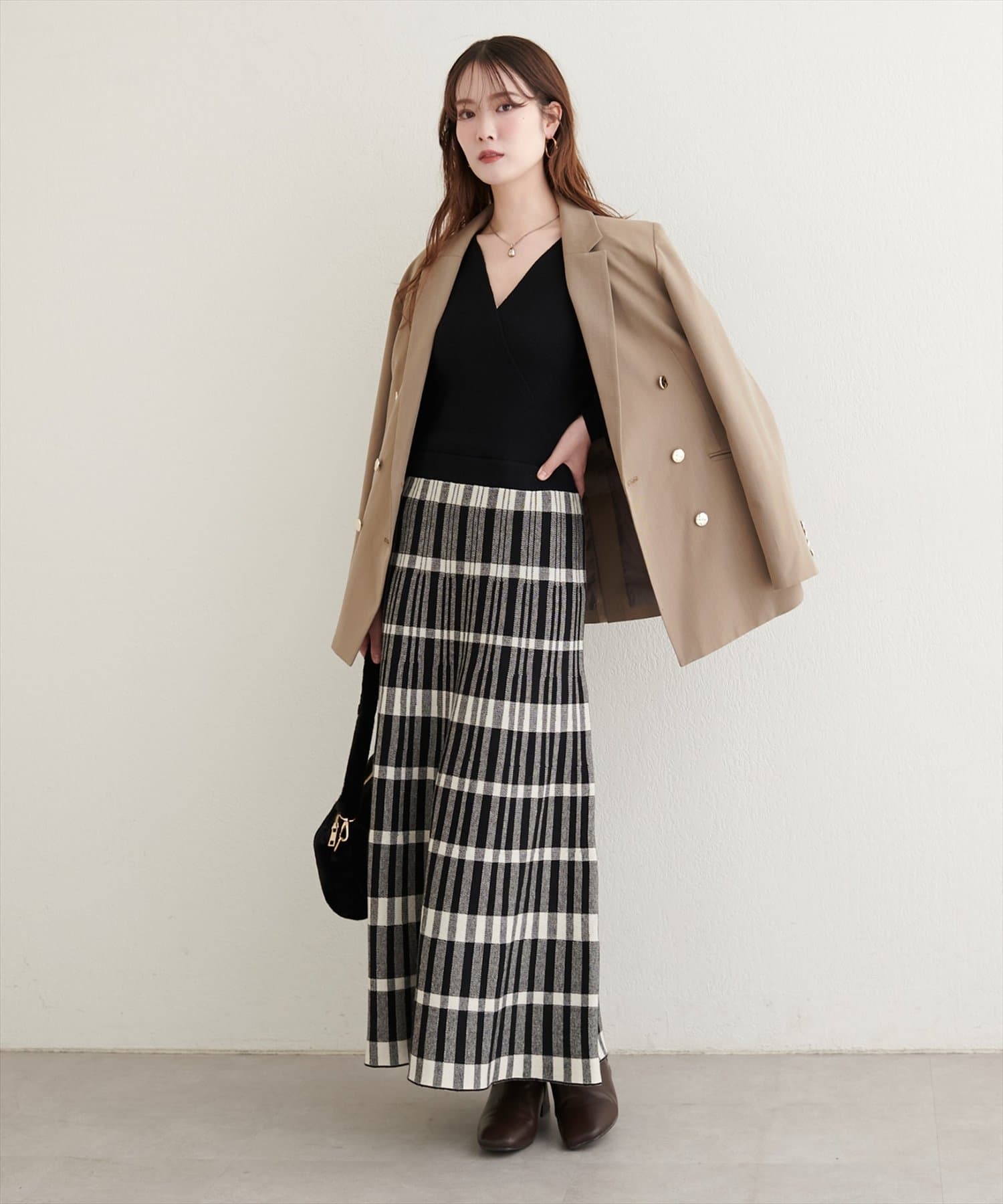 ニット素材ならではの柔らかなドレープが、歩くたびに優雅な雰囲気を与えます。