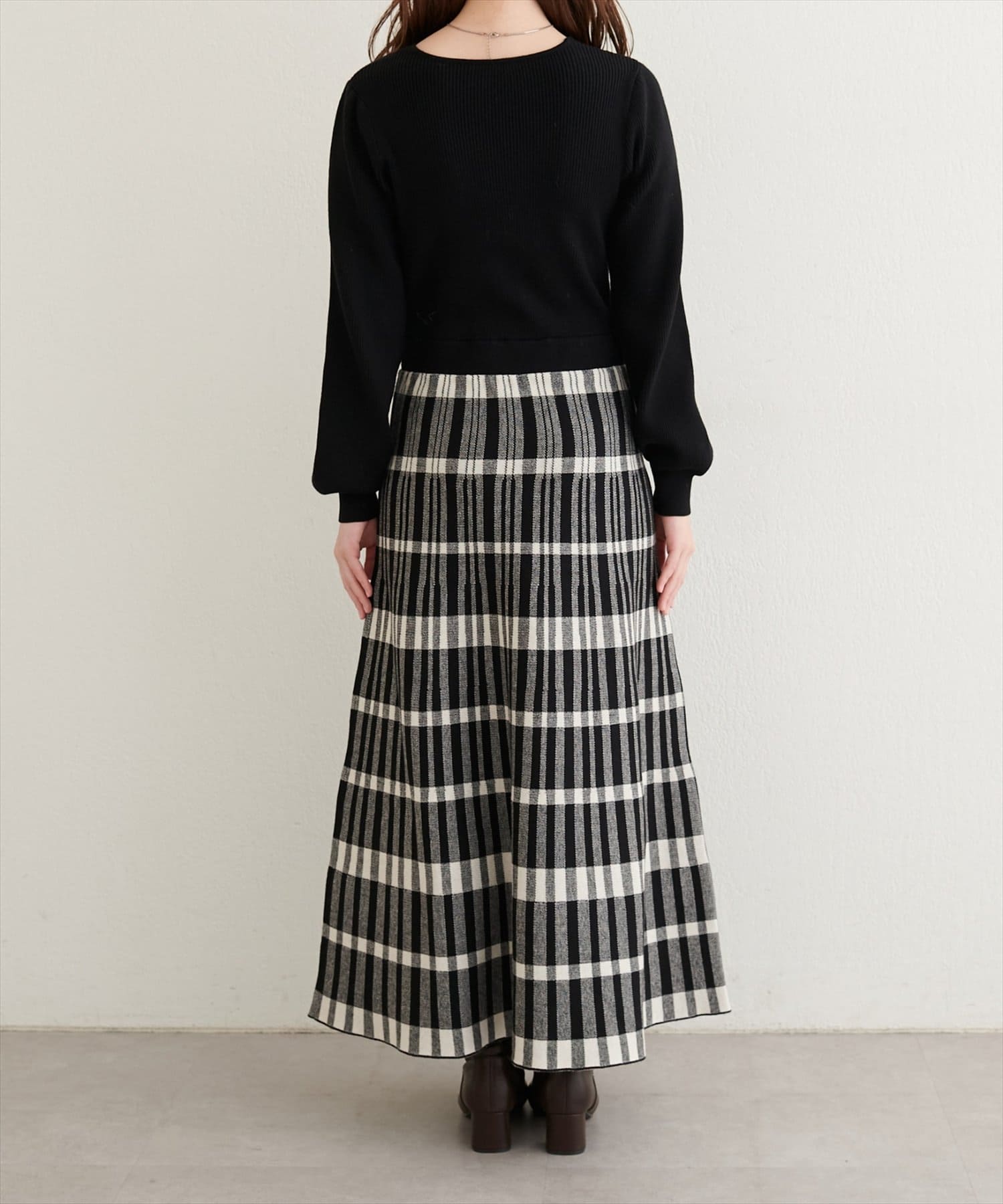 スカート部分は、クラシカルなチェック柄が、落ち着いた雰囲気を醸し出し、上品な印象を与えます。