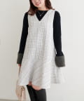 体のラインを拾わないAラインは、裾に切り替えを加えることでメリハリが生まれると共に、フェミニンな雰囲気も演出。