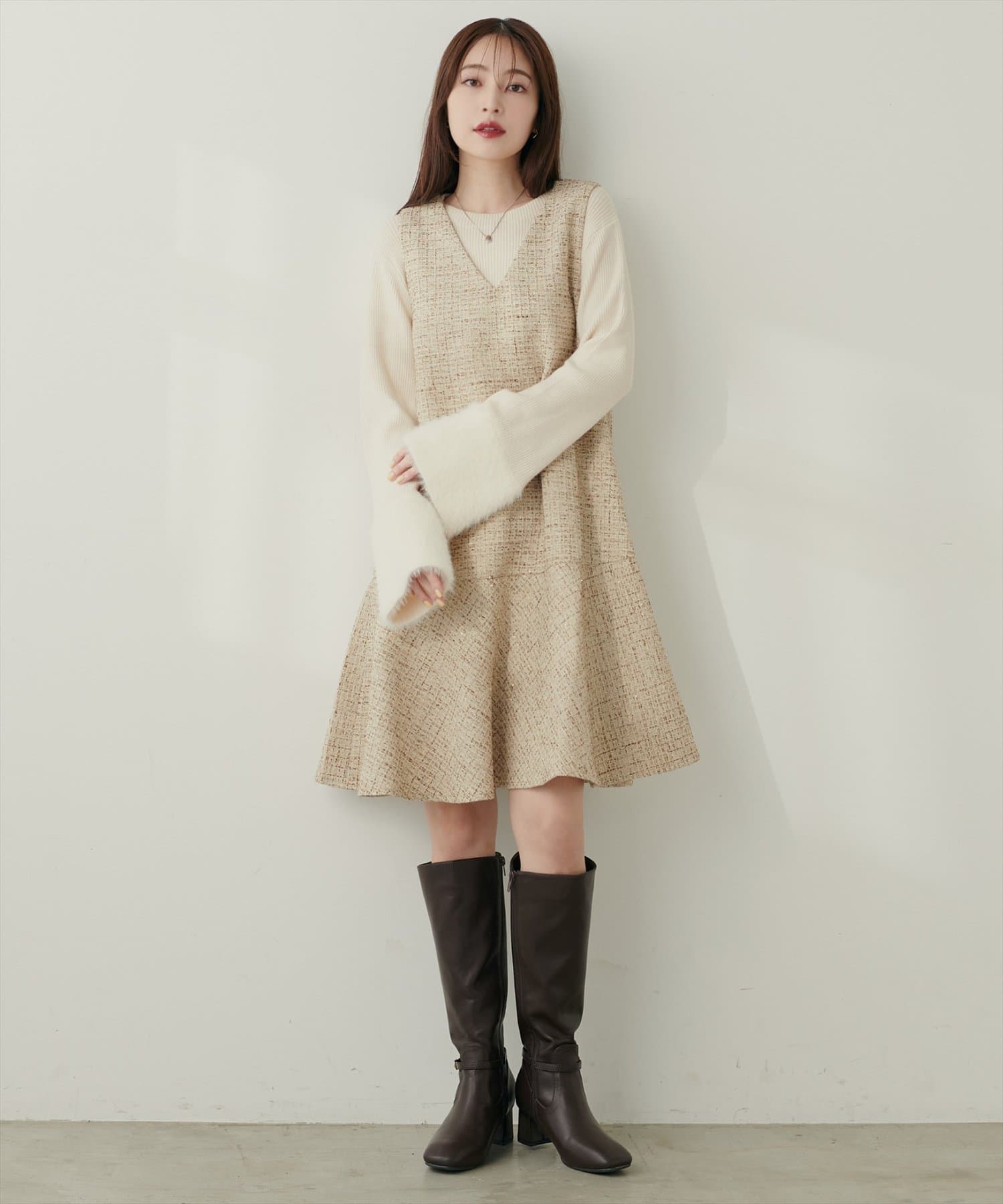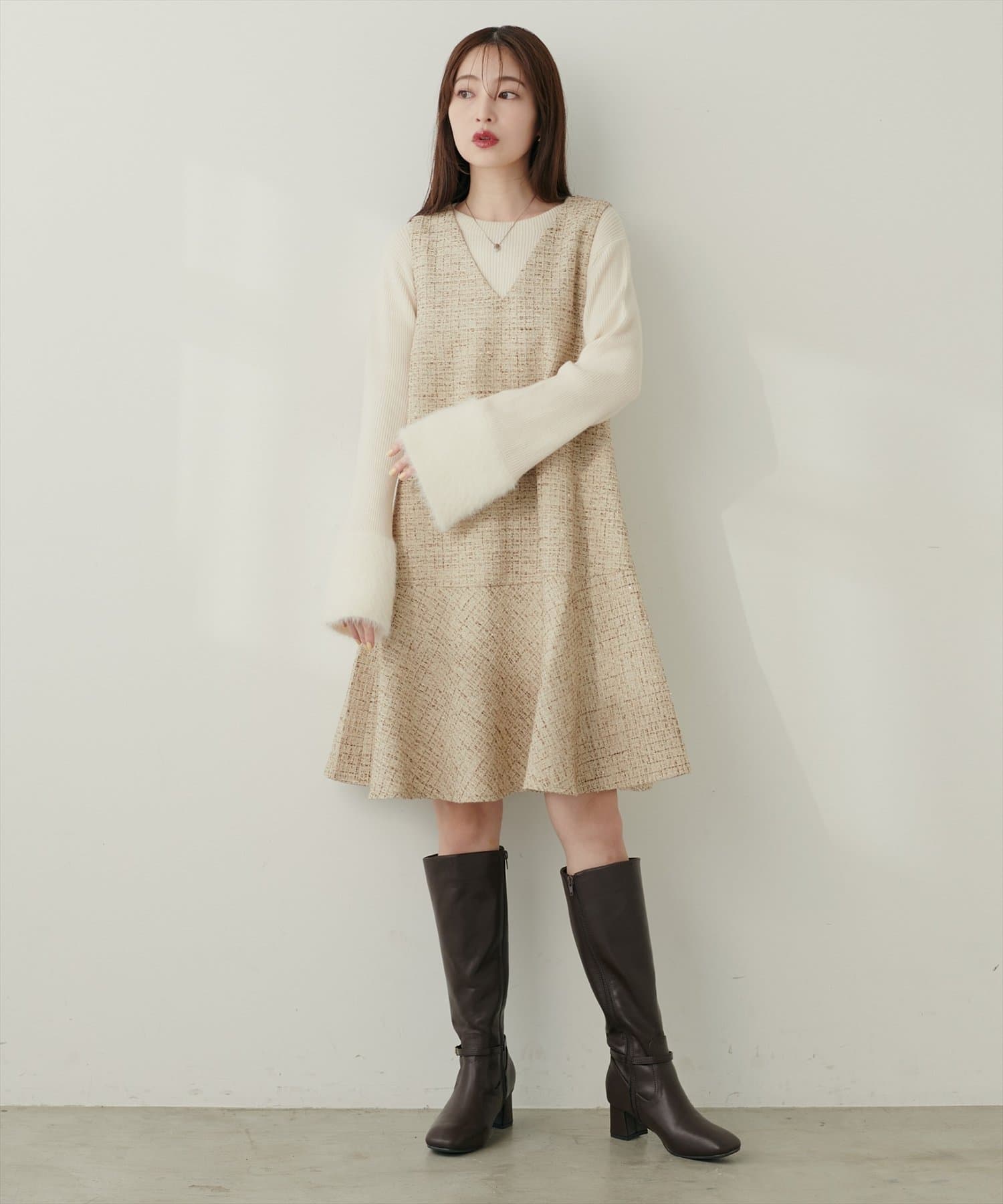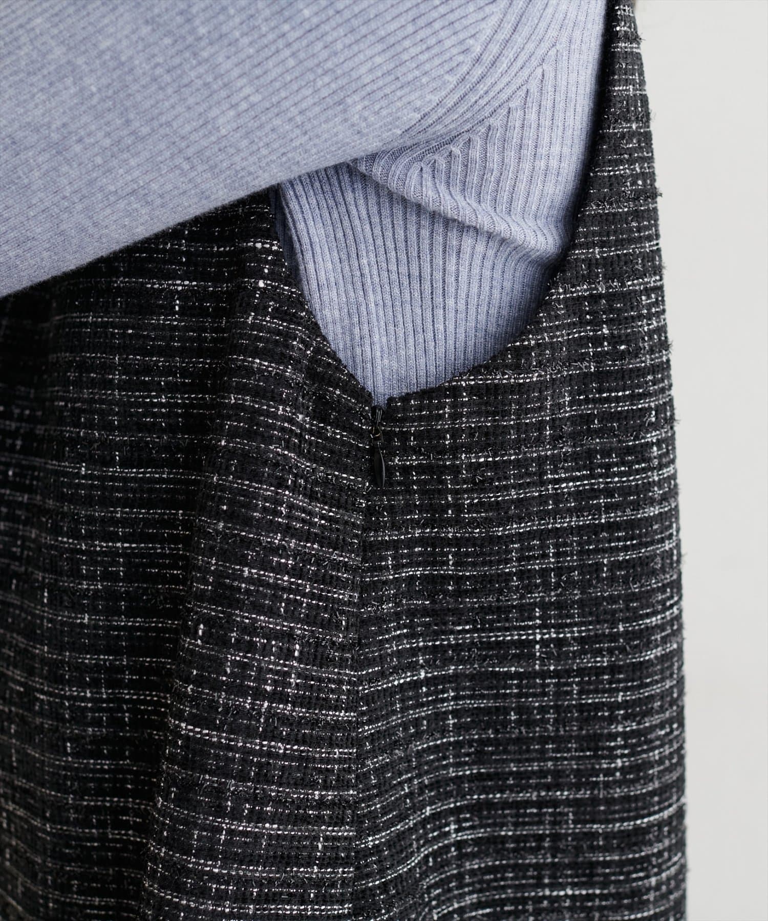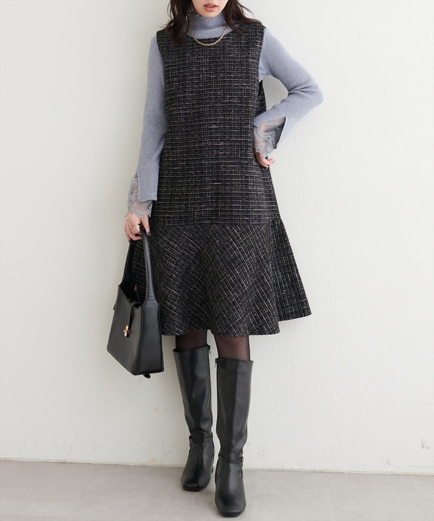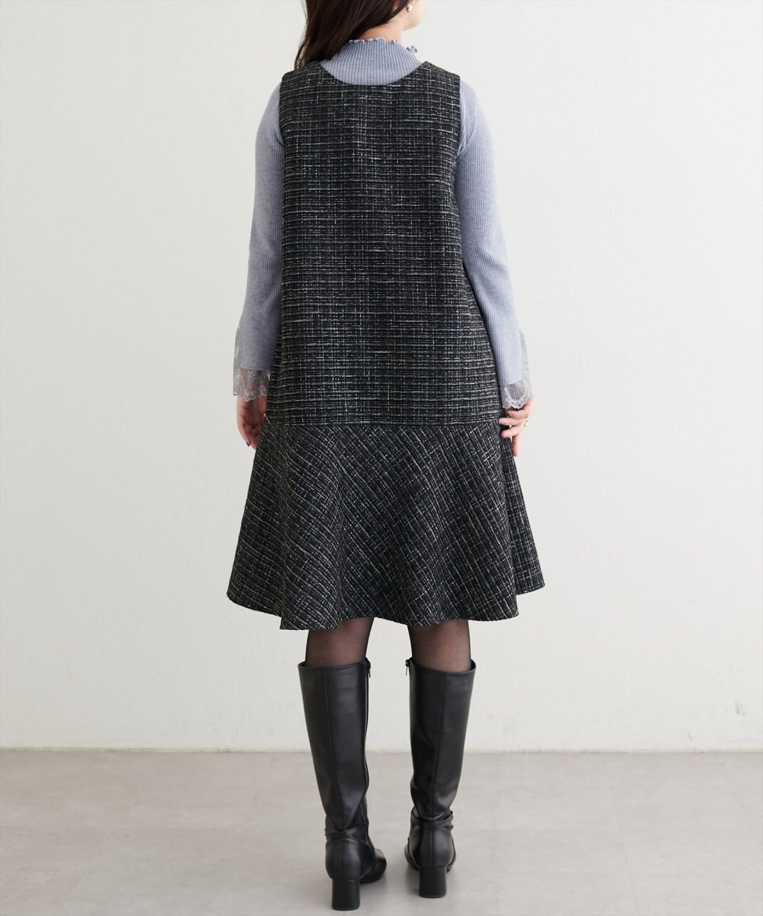 上品に華やかさを与えてくれるツイードを使用した、秋冬のお出かけにピッタリの1枚。
