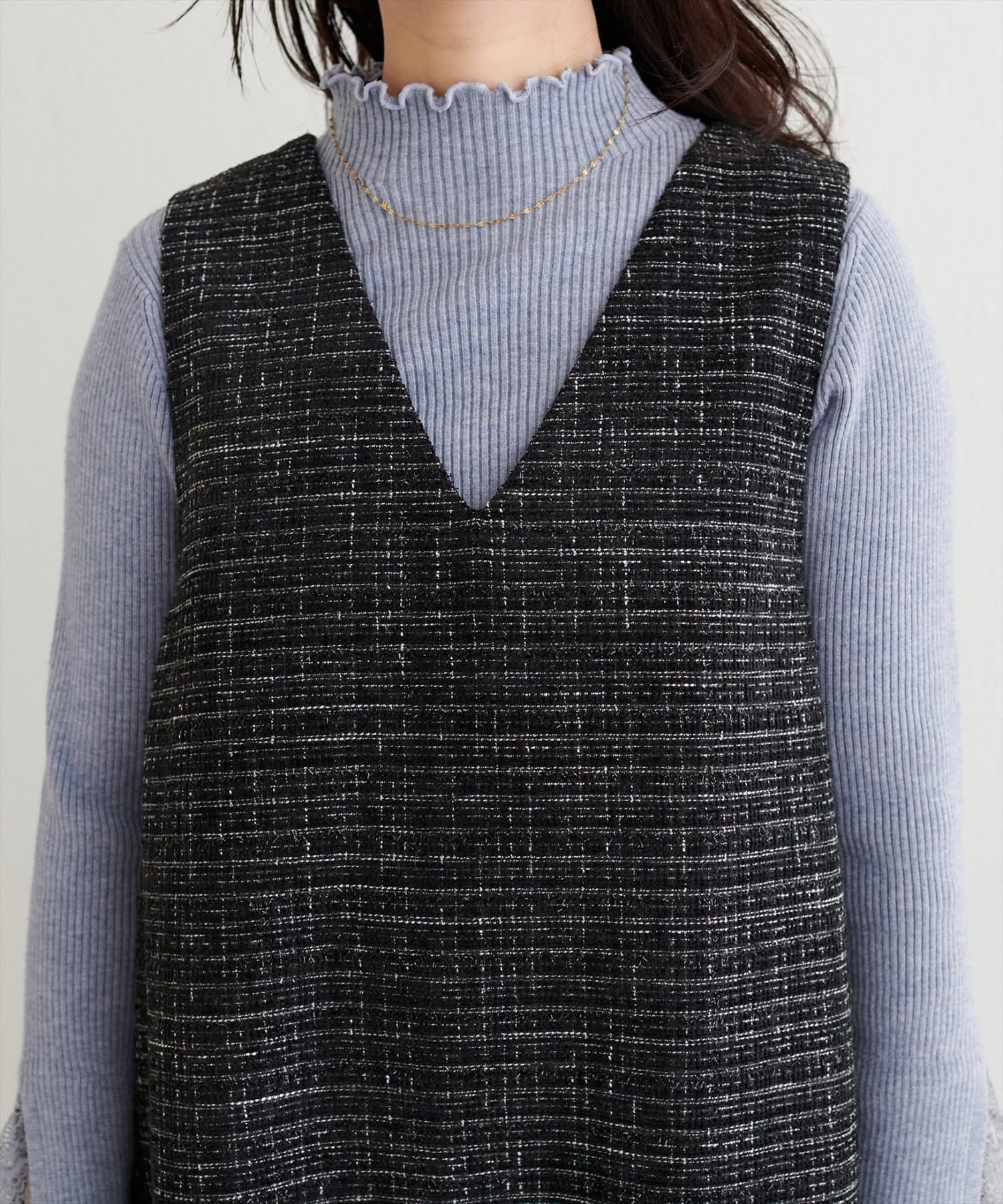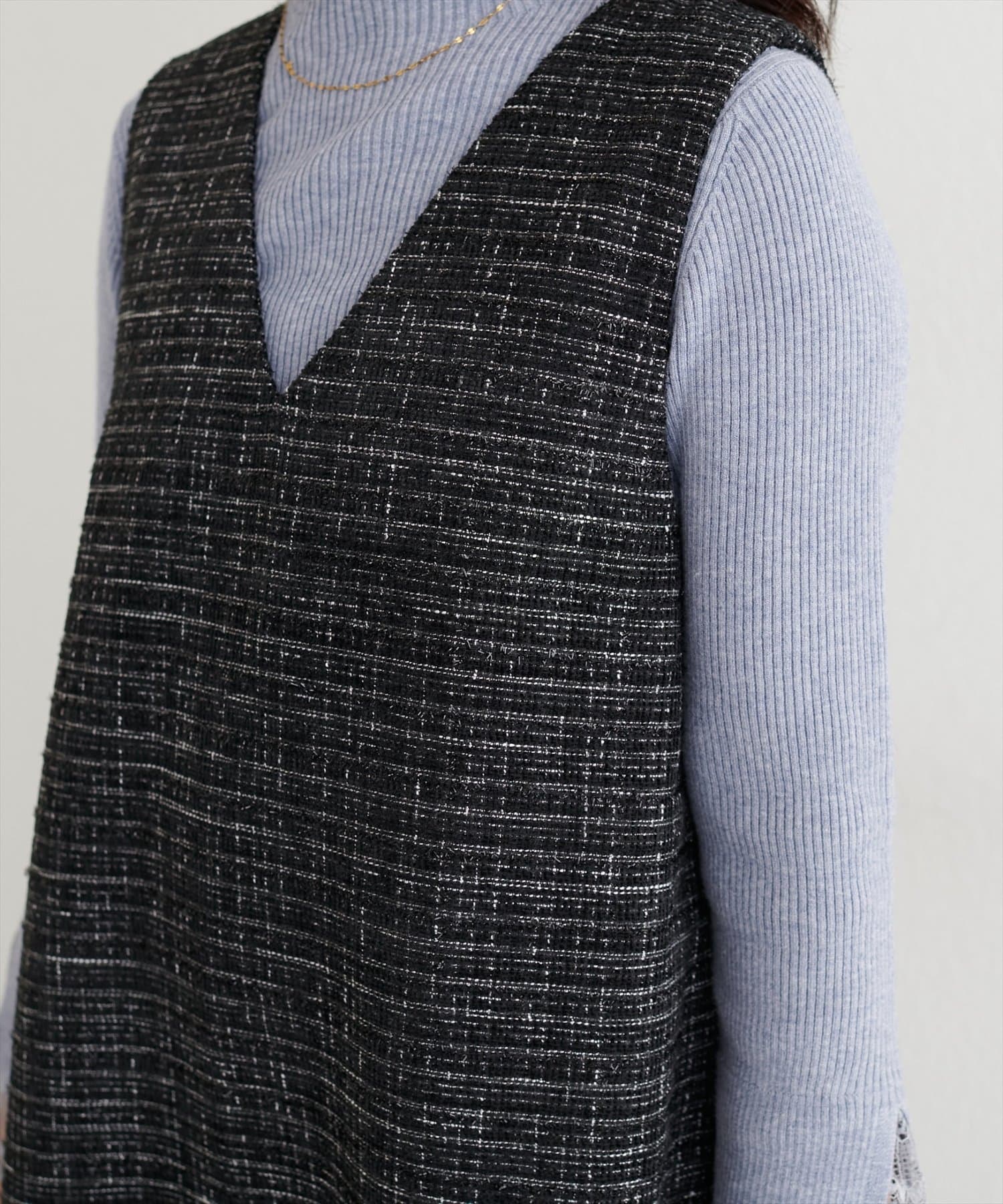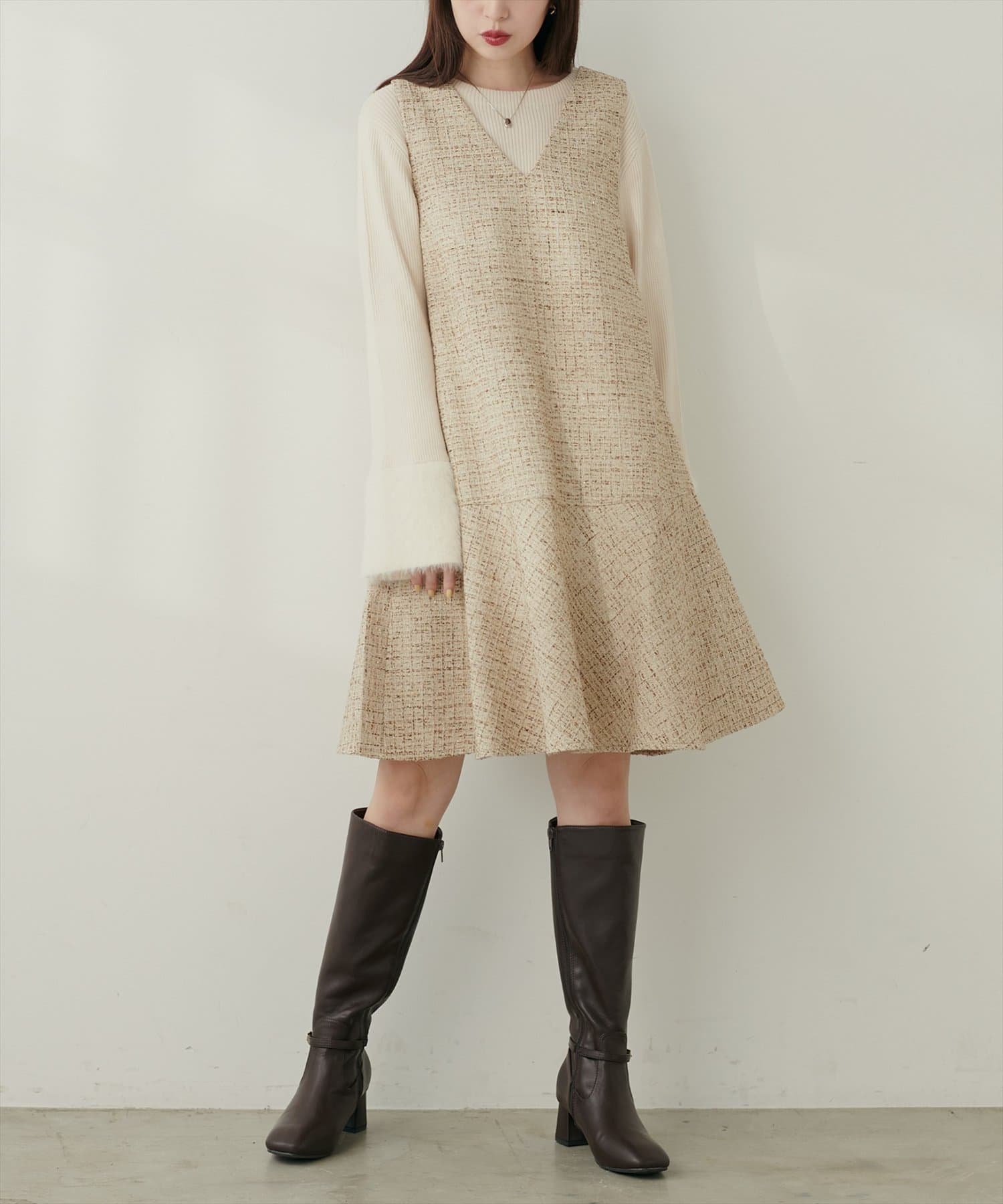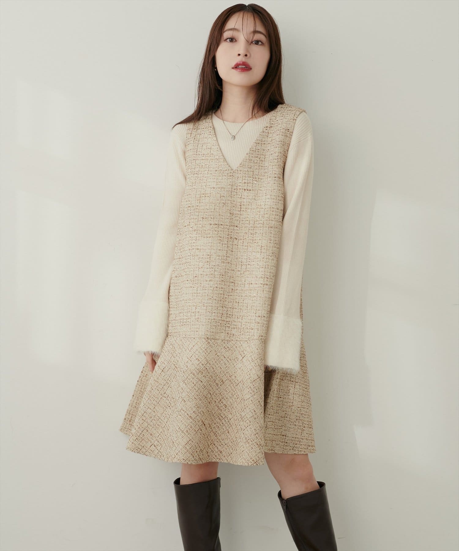 上品に華やかさを与えてくれるツイードを使用した、秋冬のお出かけにピッタリの1枚。