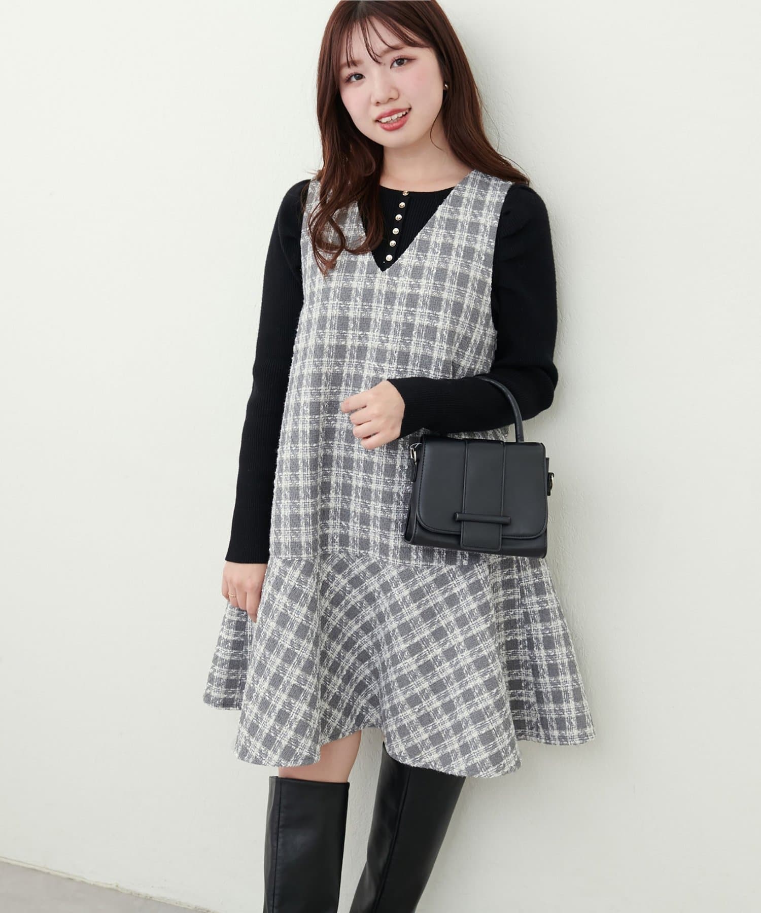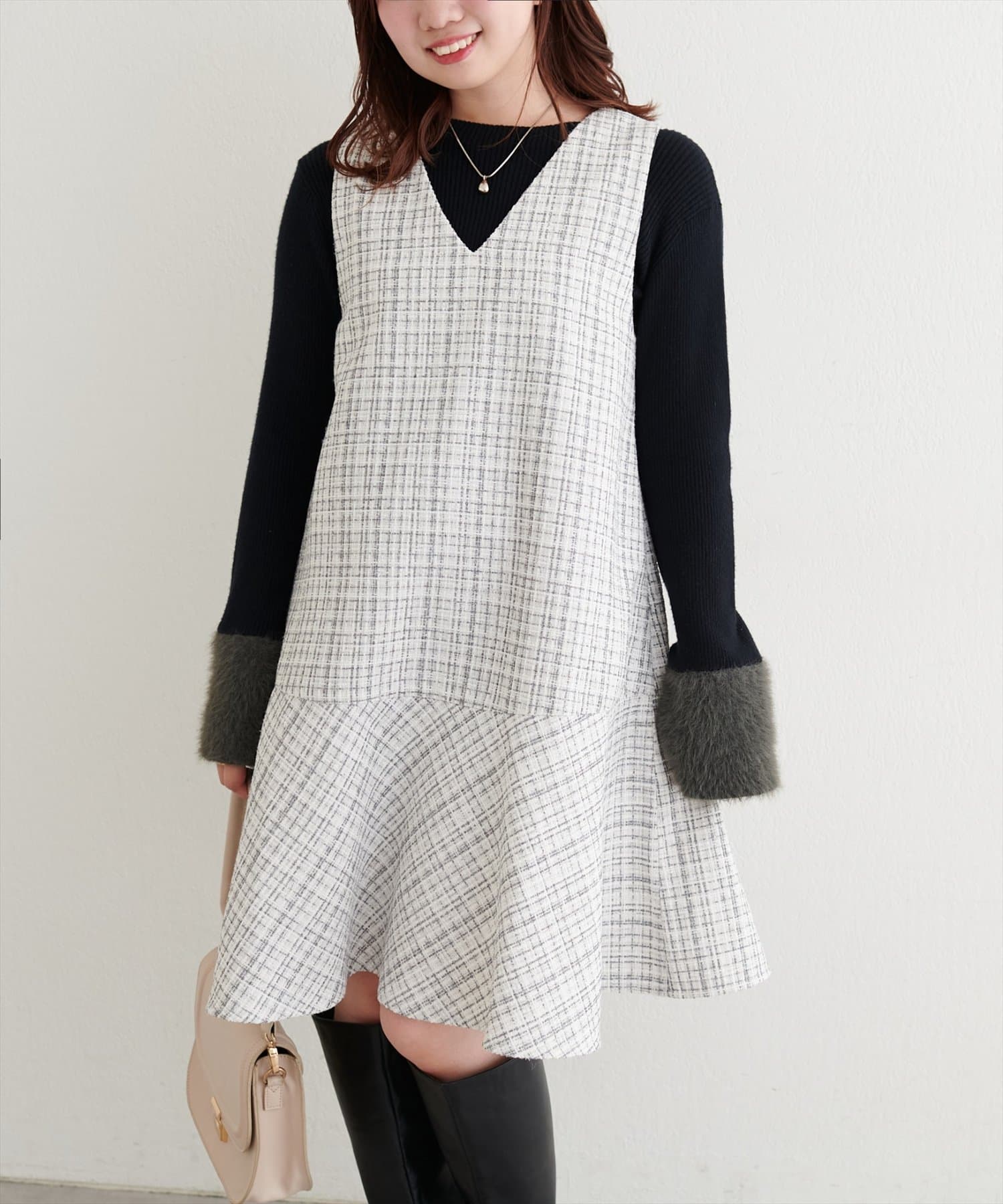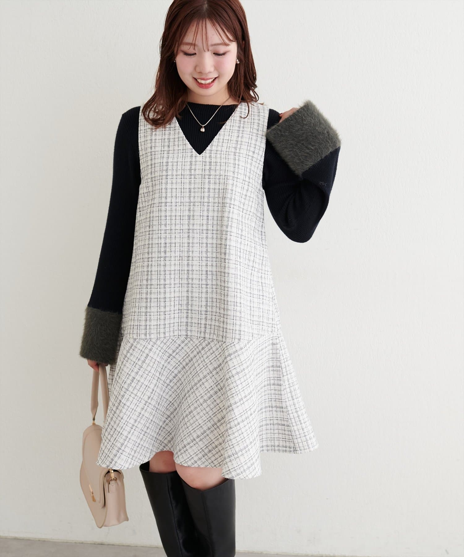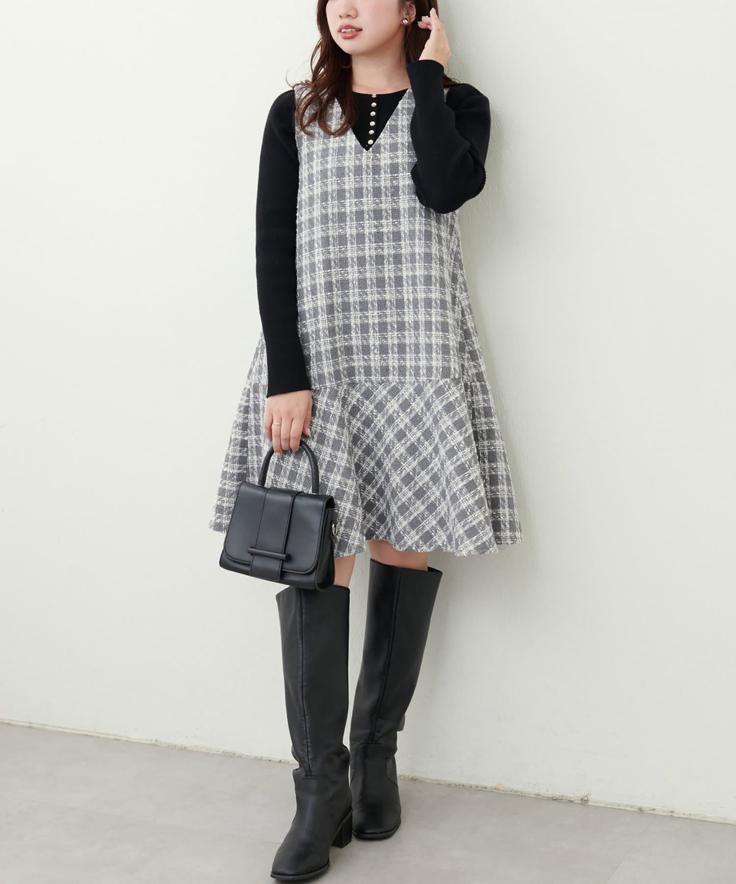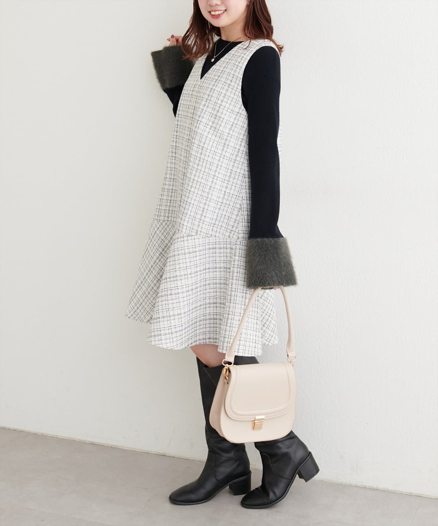 上品に華やかさを与えてくれるツイードを使用した、秋冬のお出かけにピッタリの1枚。