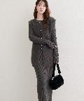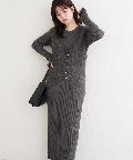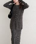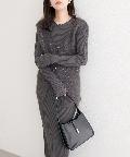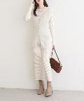 ワンピースは、縦ラインを強調するリブ編みで、スタイルアップ効果も抜群。