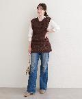 ベストはデニムパンツやワイドパンツと合わせれば、カジュアルダウンなコーデに。