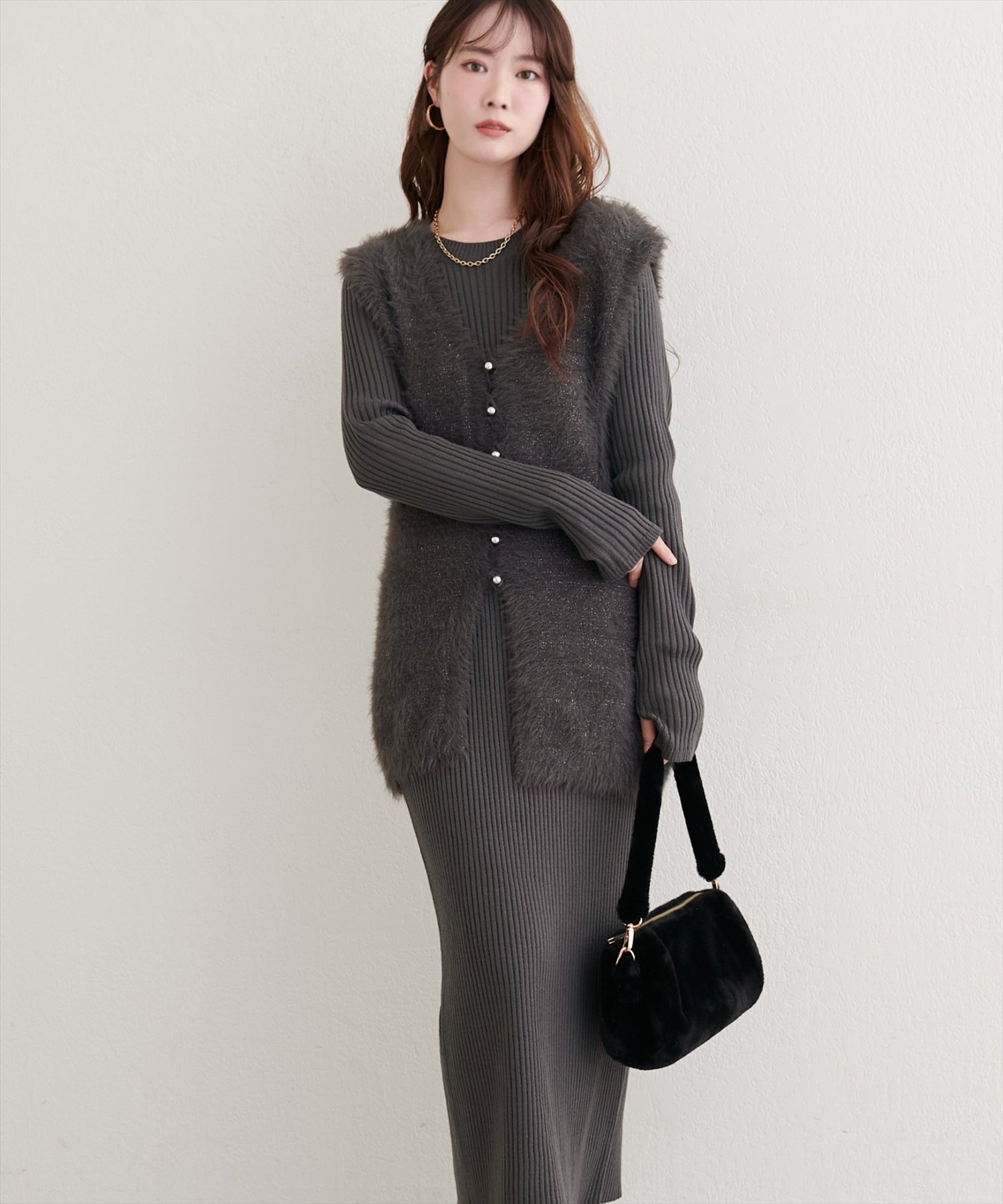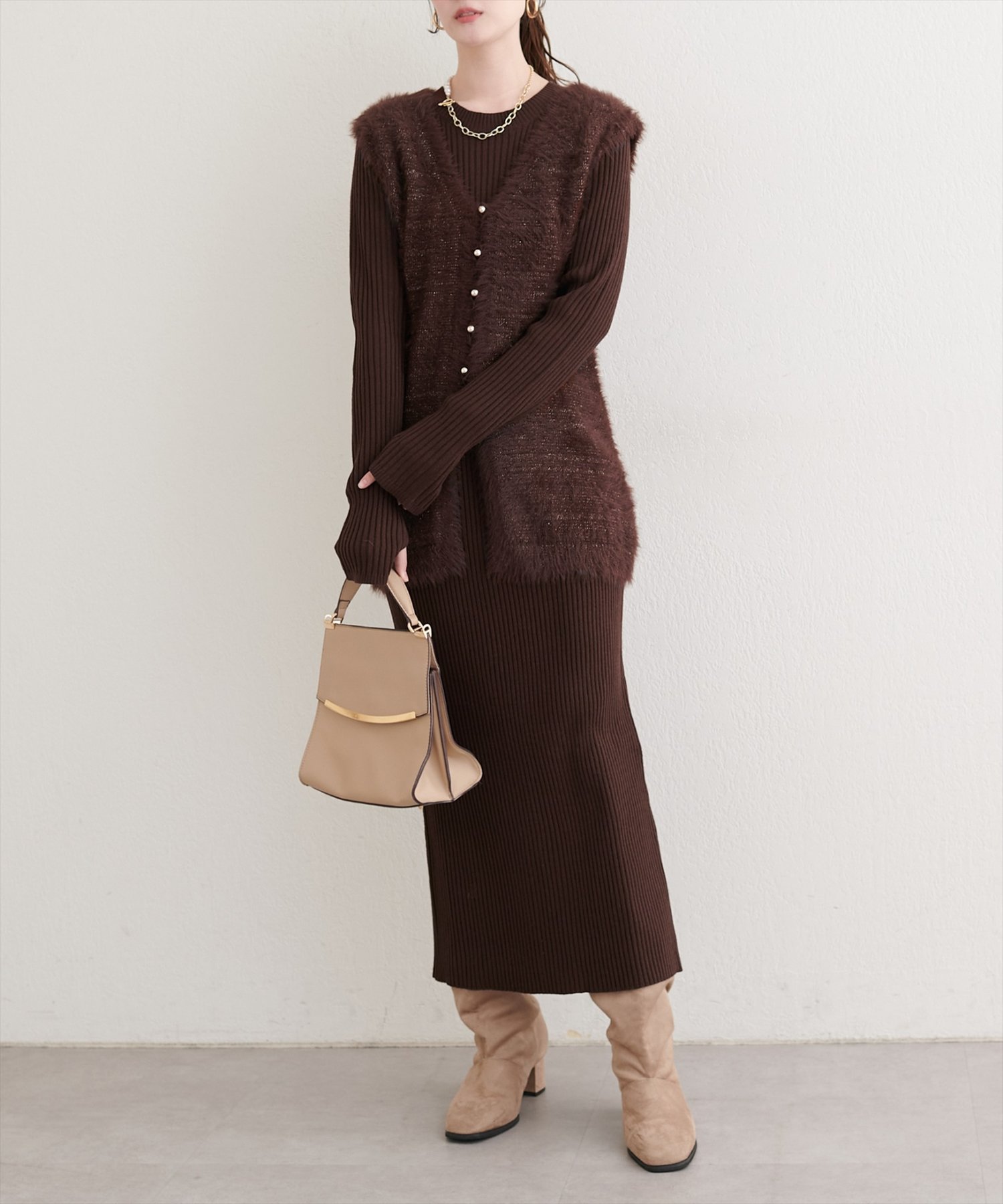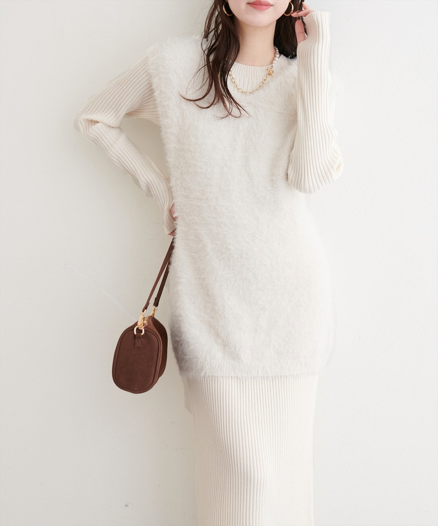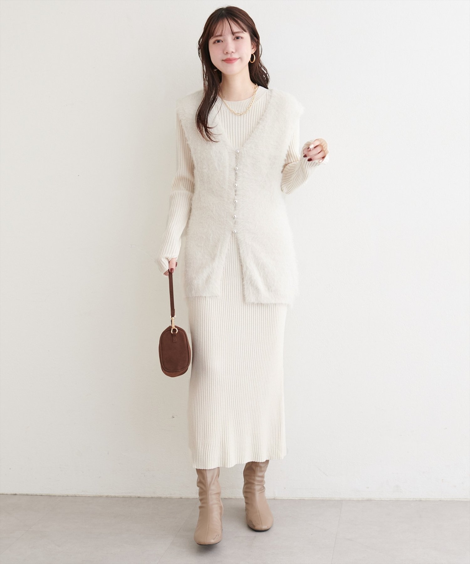 〈osono〉ラメフェザーニットベスト×リブワンピース
