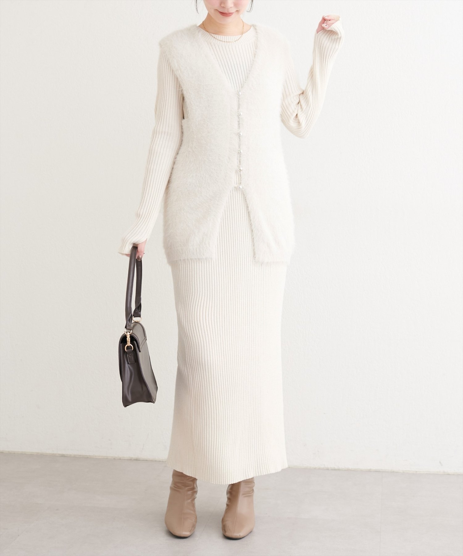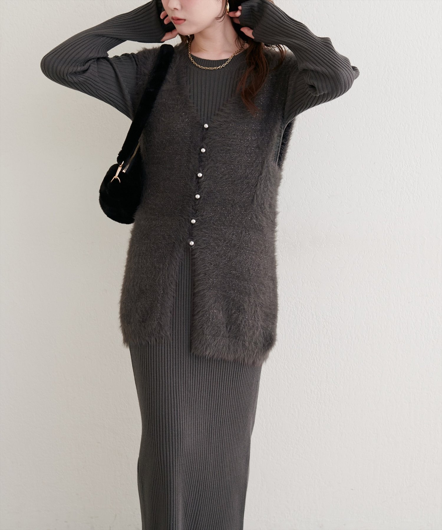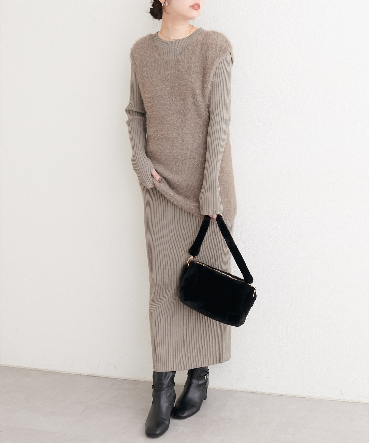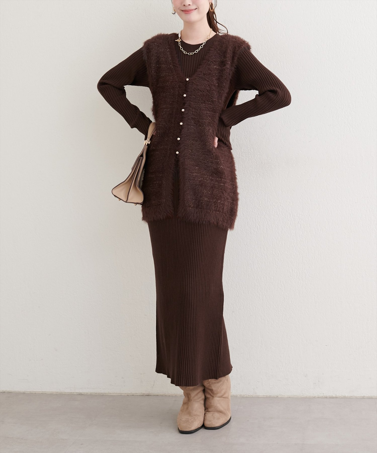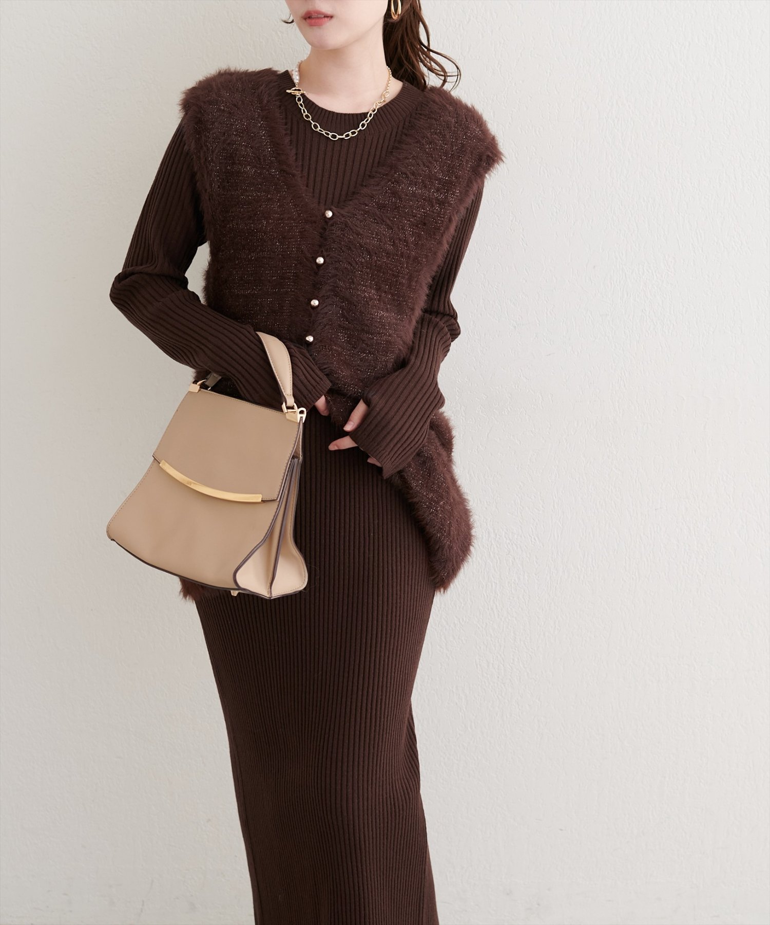 〈osono〉ラメフェザーニットベスト×リブワンピース
