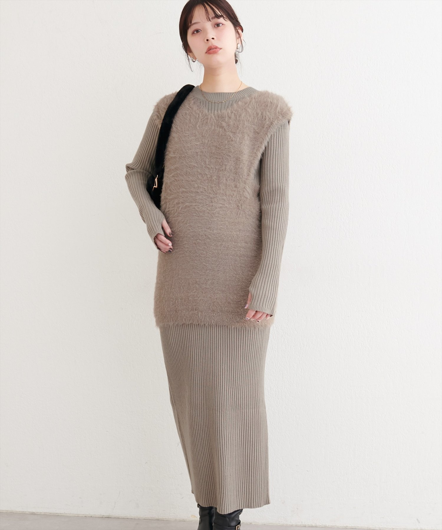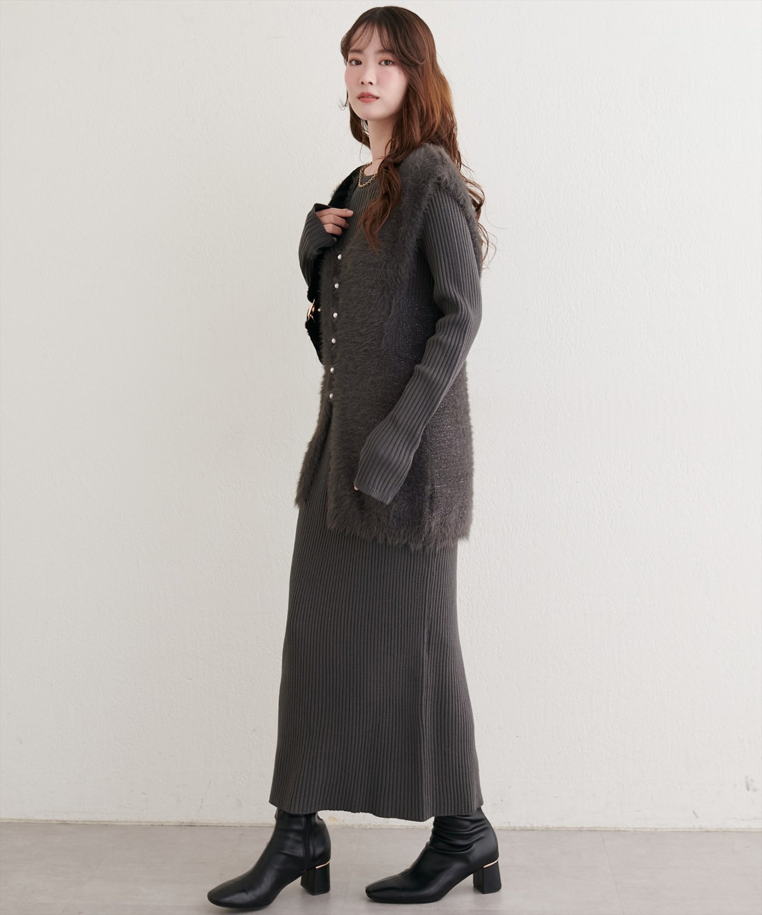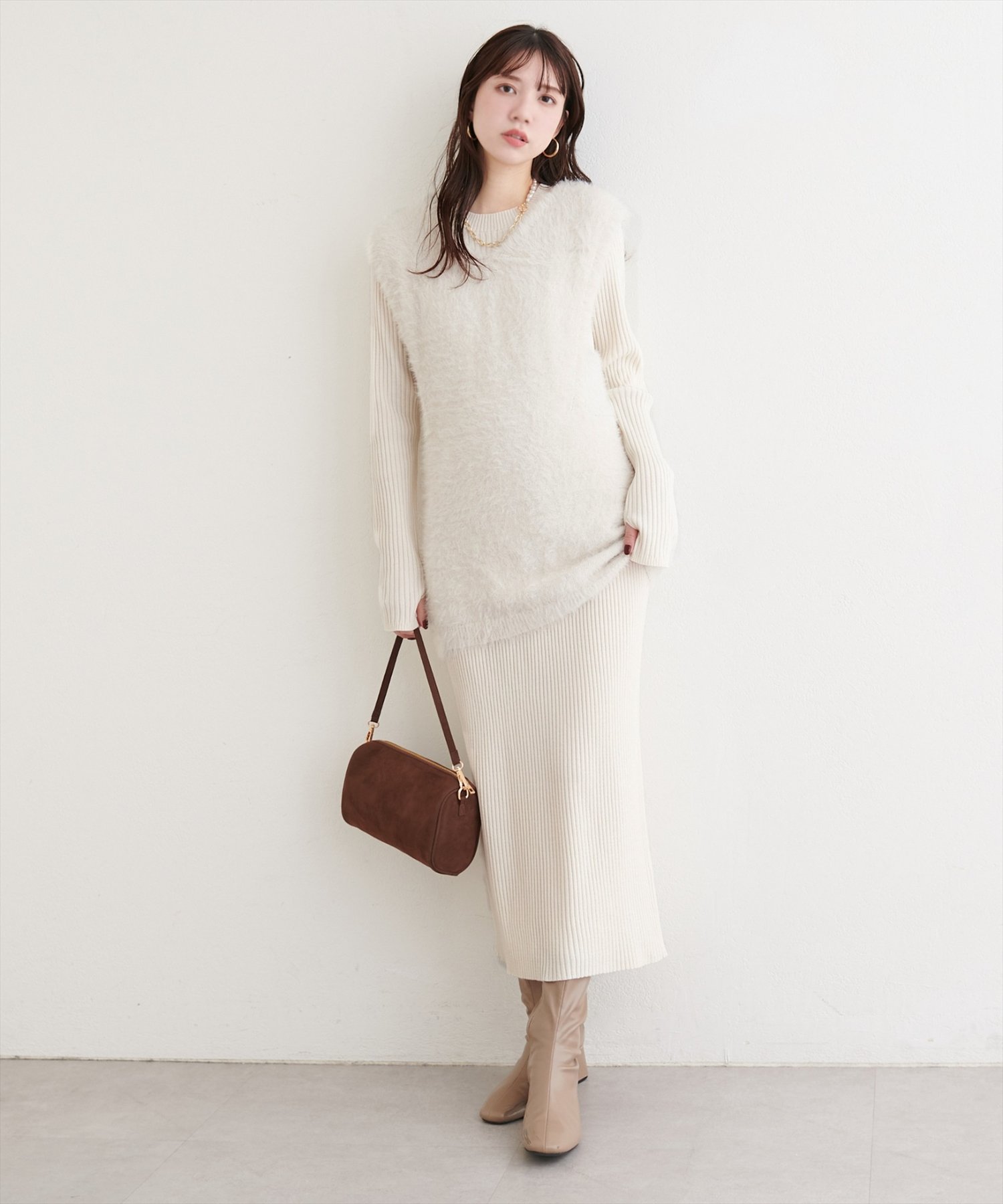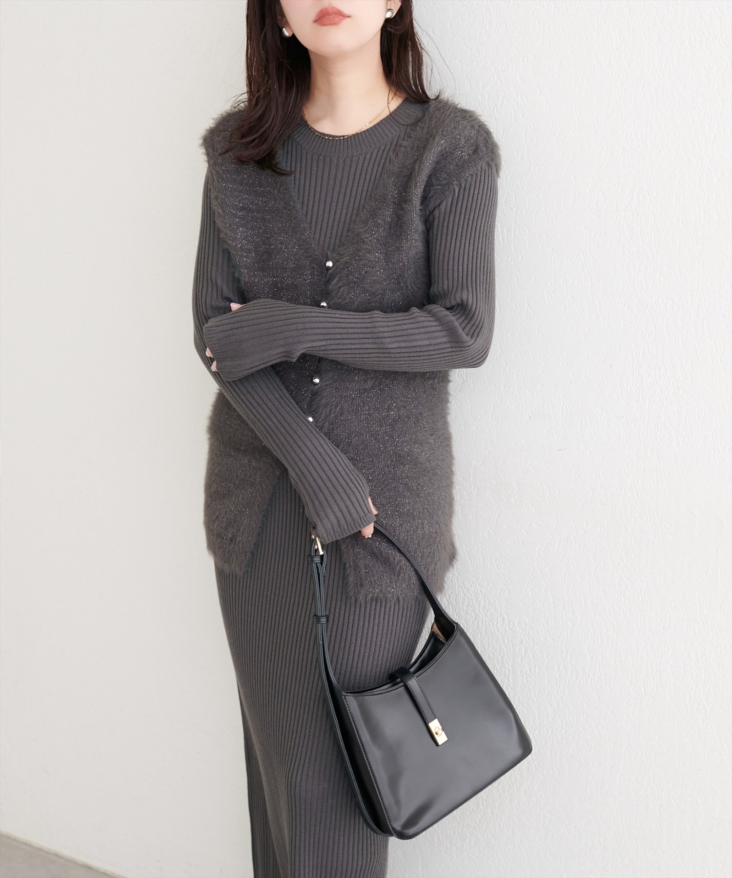 〈osono〉ラメフェザーニットベスト×リブワンピース
