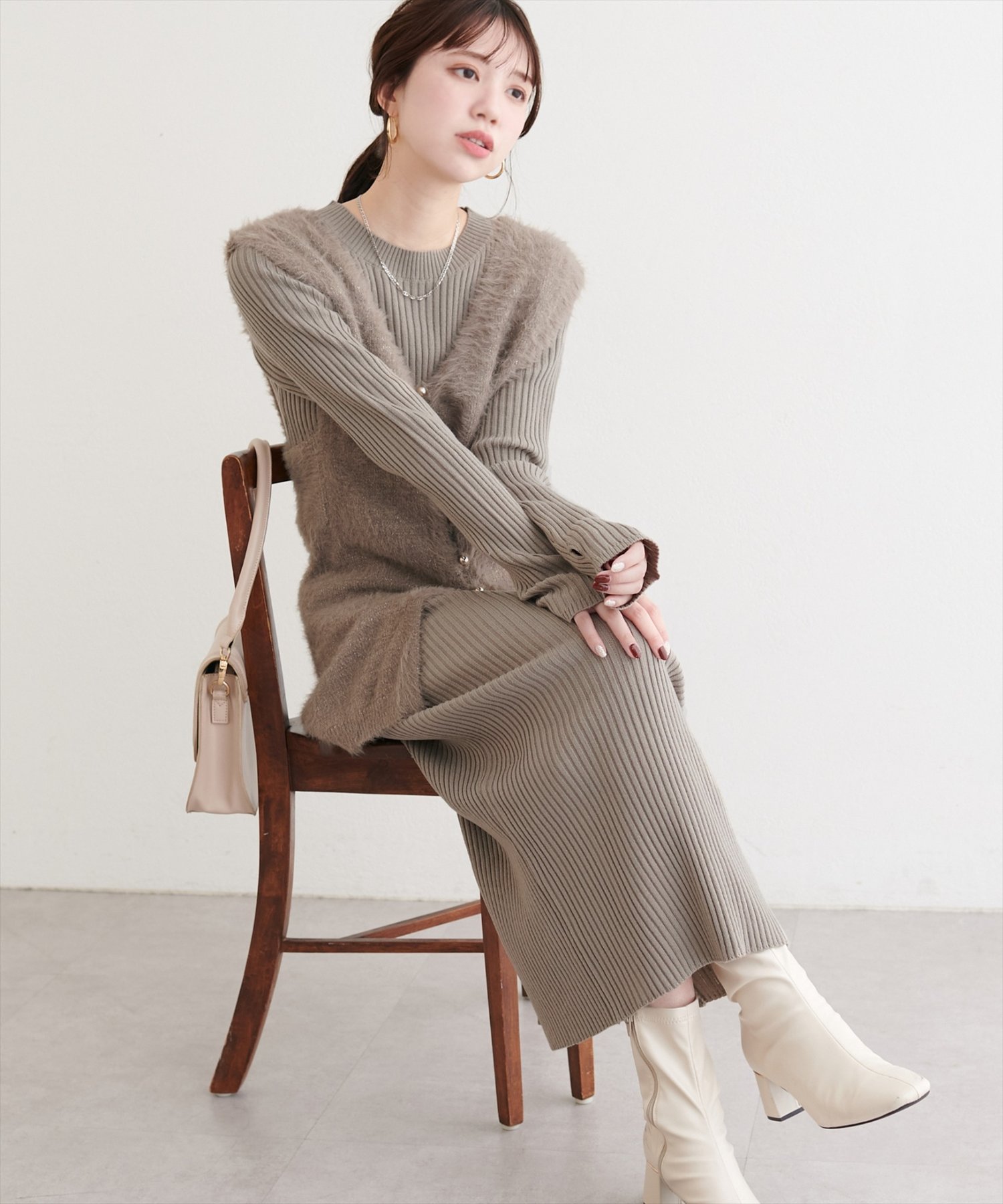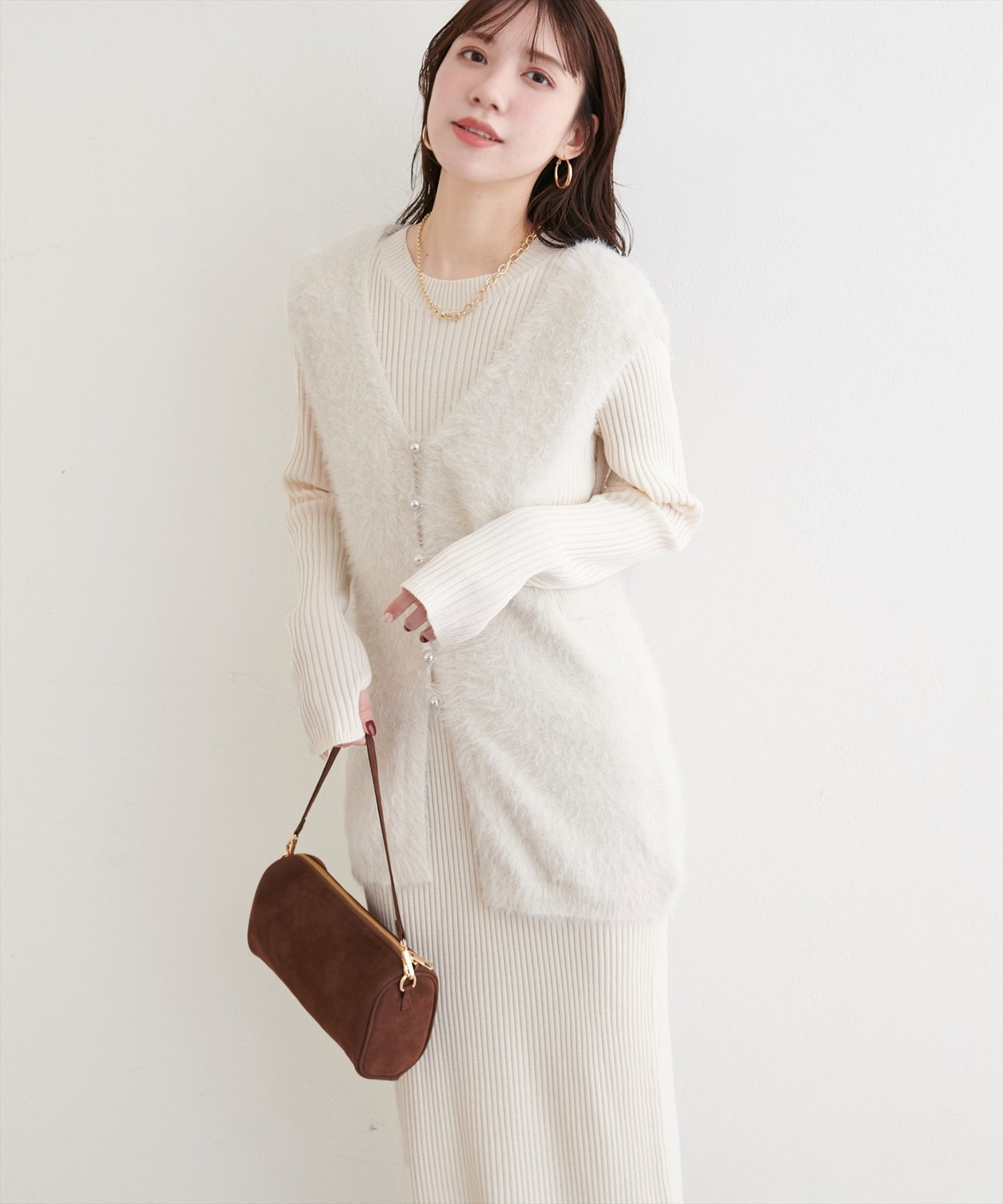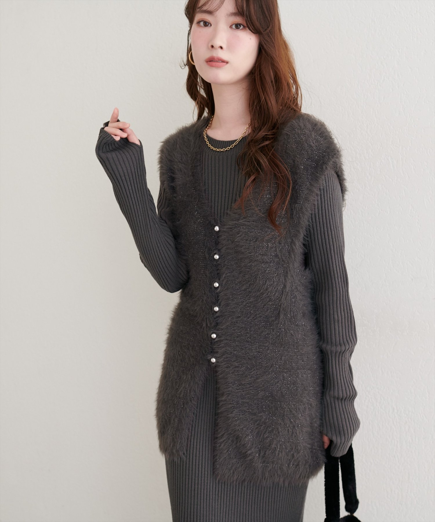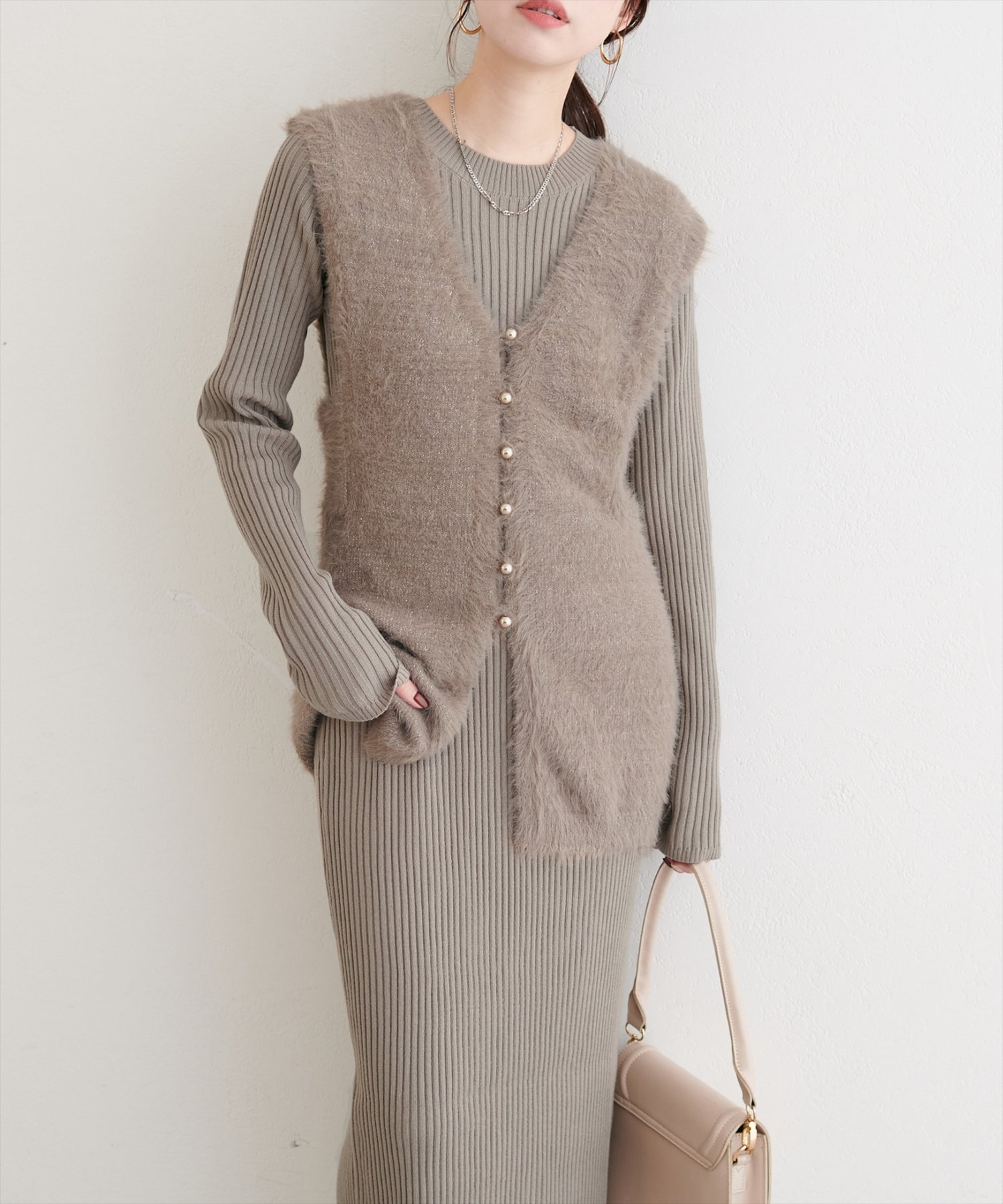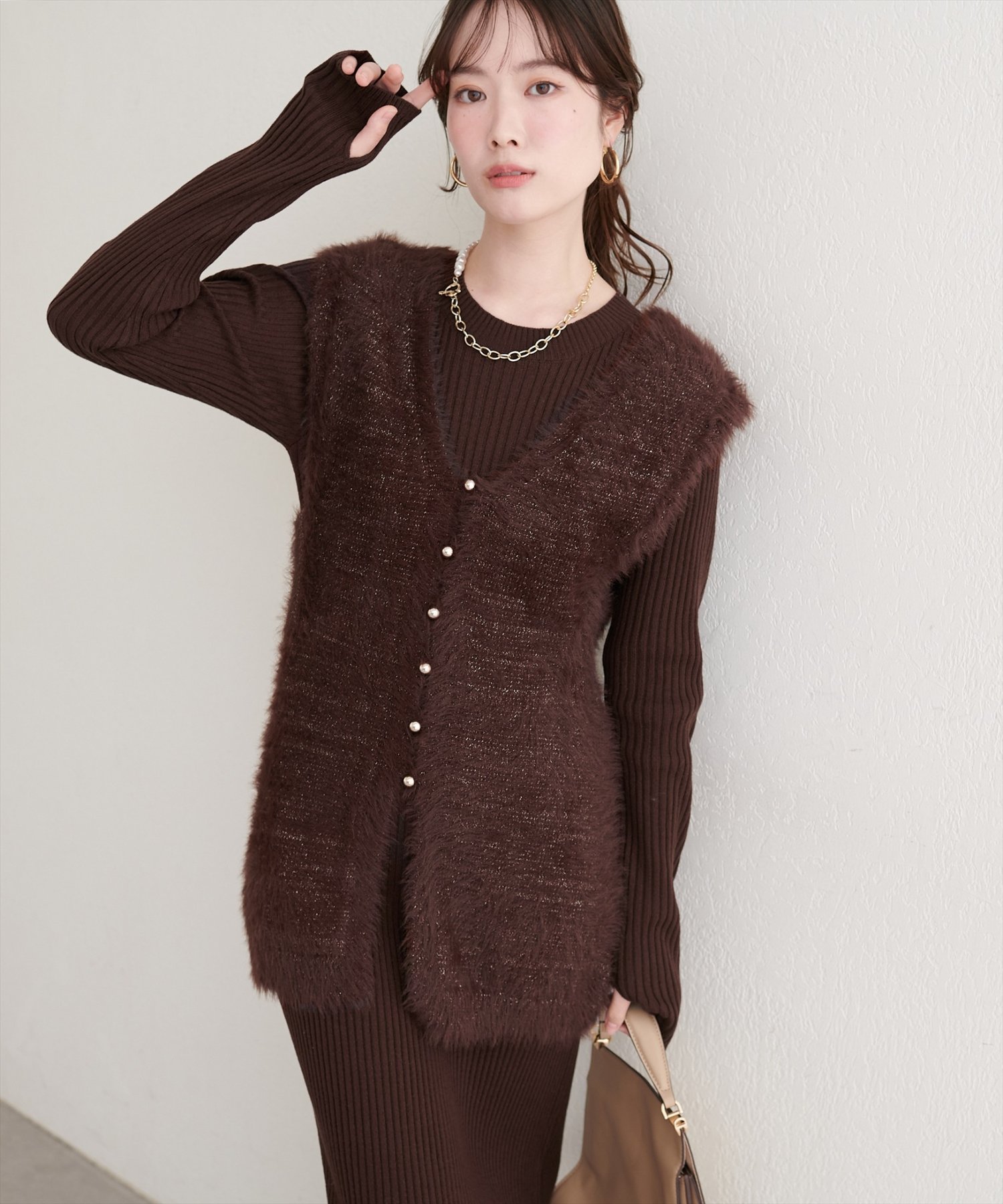 〈osono〉ラメフェザーニットベスト×リブワンピース