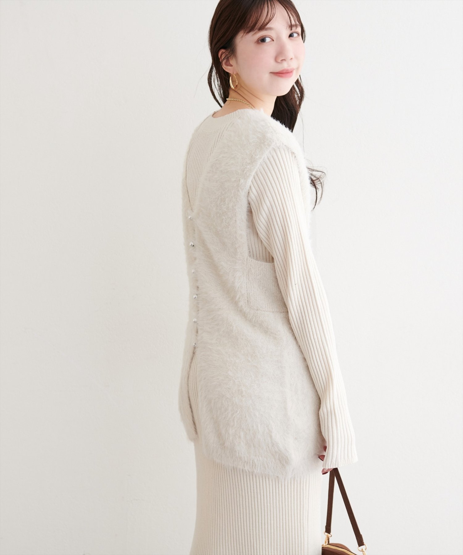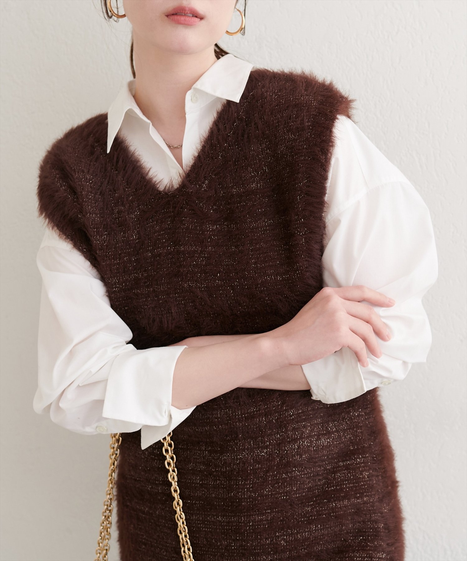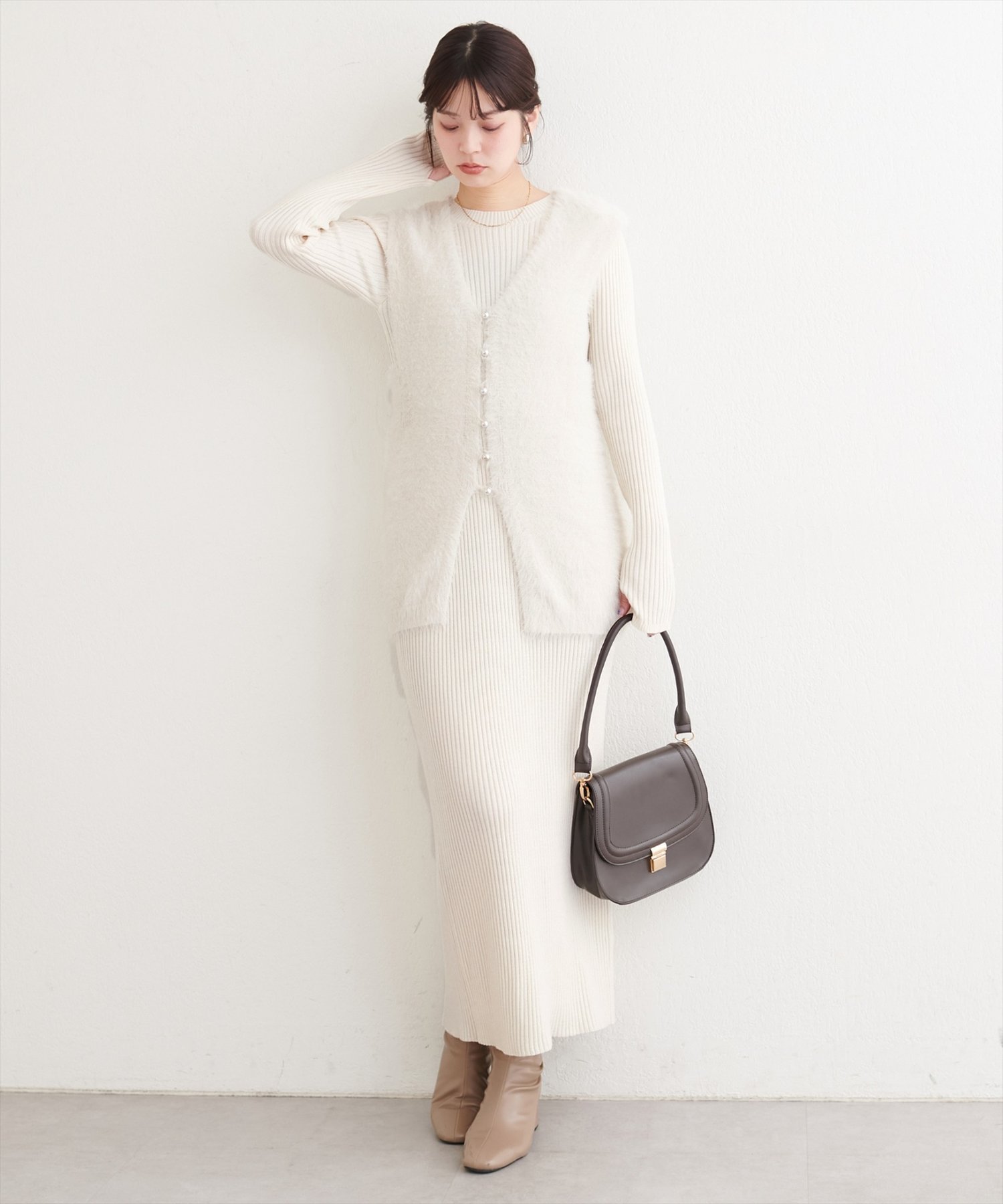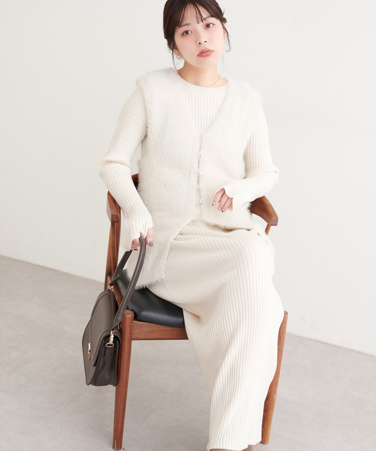 〈osono〉ラメフェザーニットベスト×リブワンピース